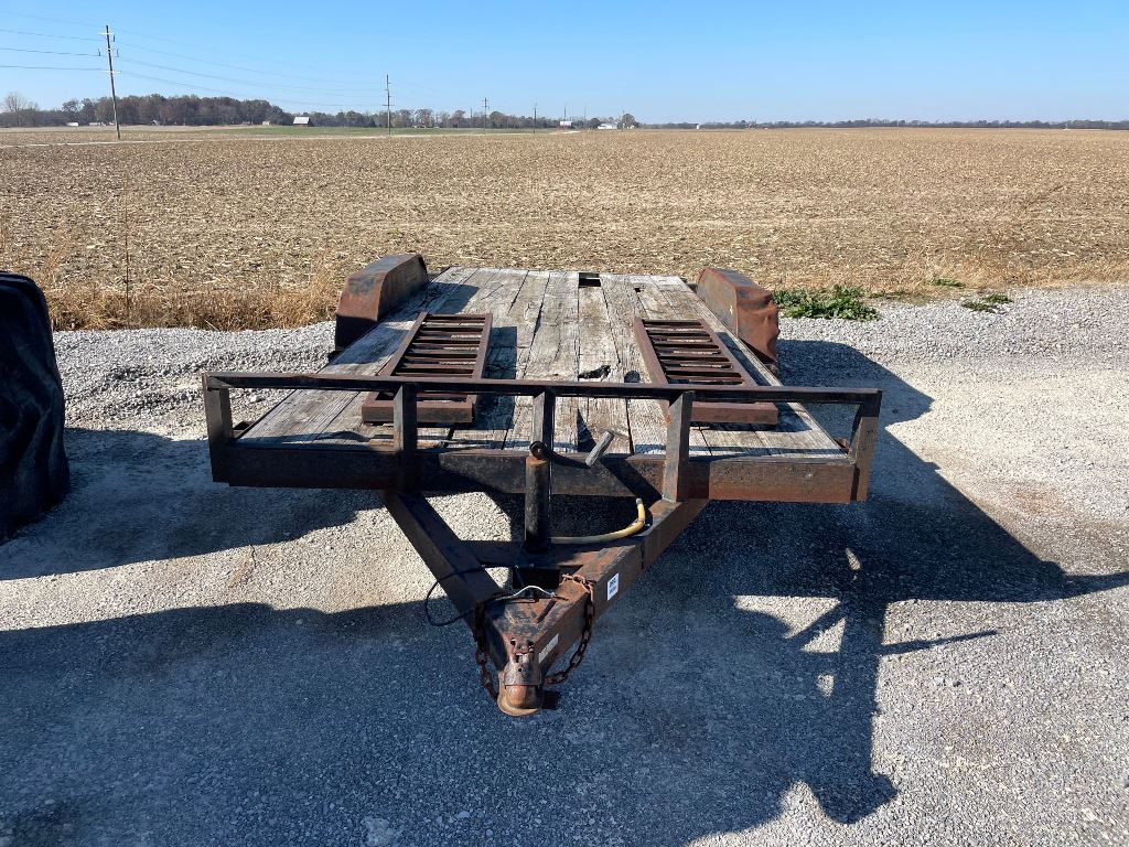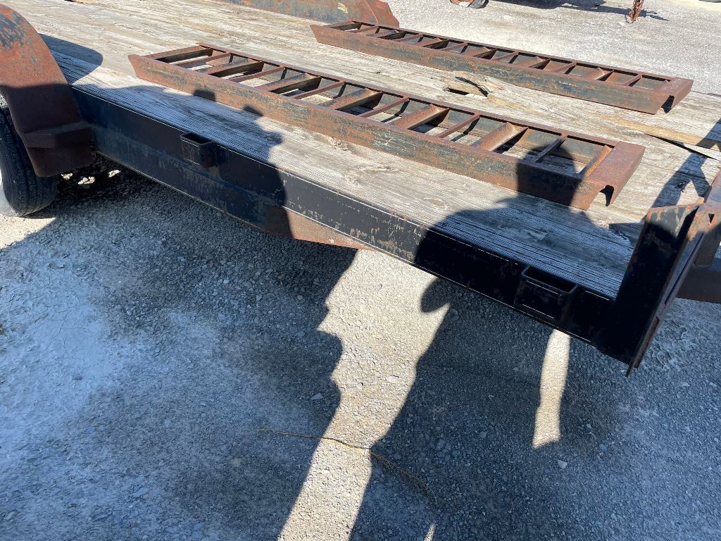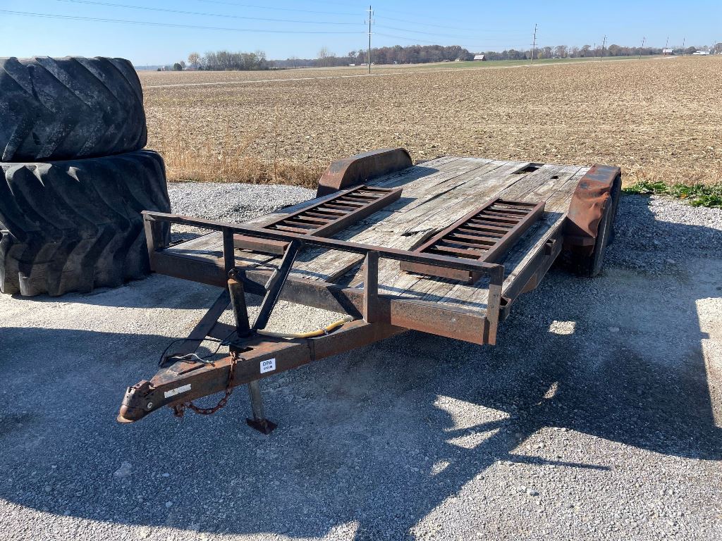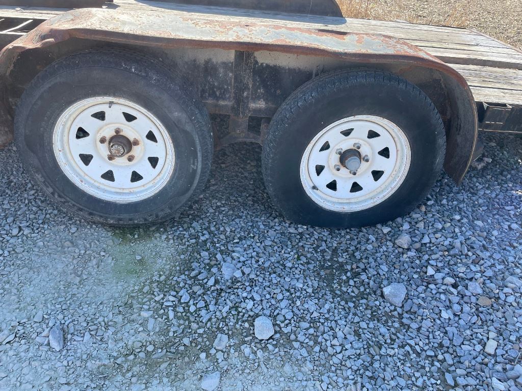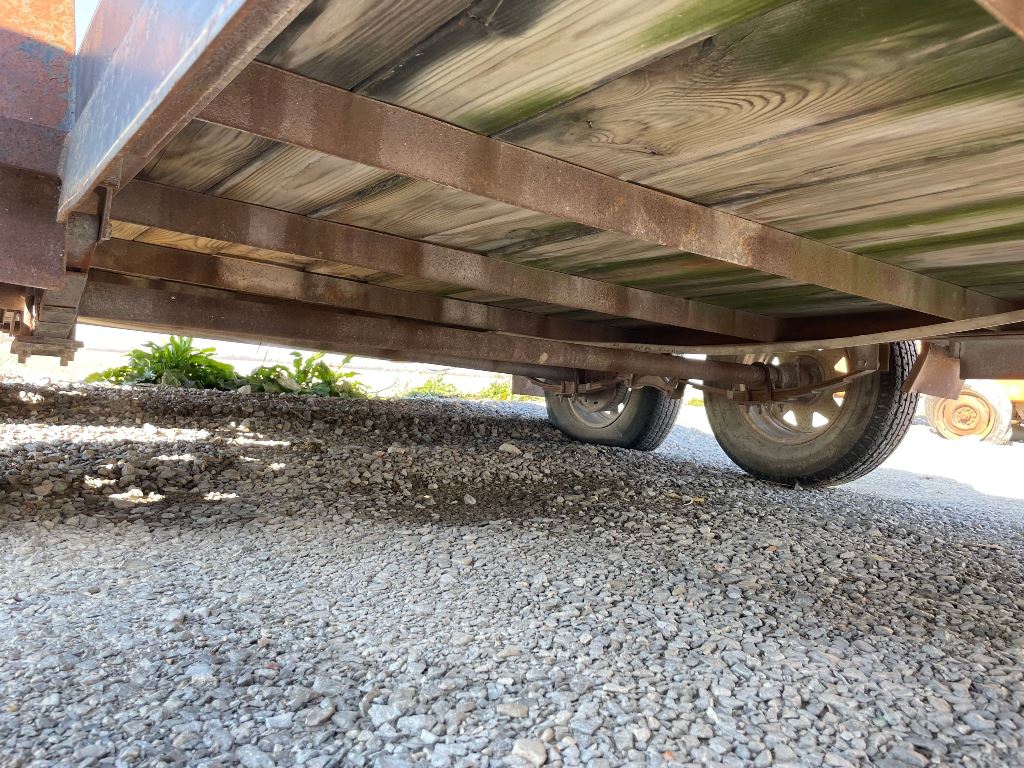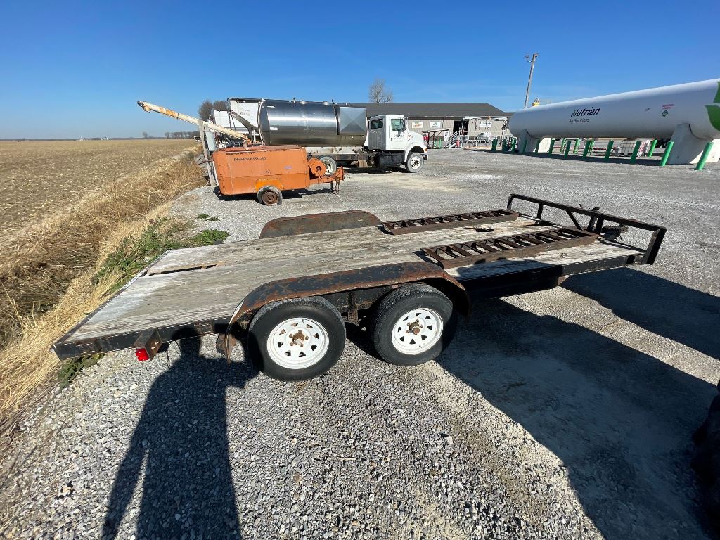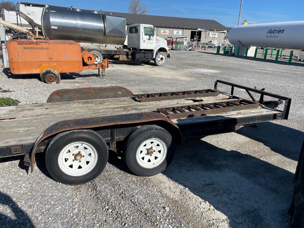 2003 Homemade Flatbed Trailer (GP2210, Unit 111525), 2003 Homemade 16' flatbed trailer, wood deck, ramps, tandem axle, ST205/75R15 tires, fenders.