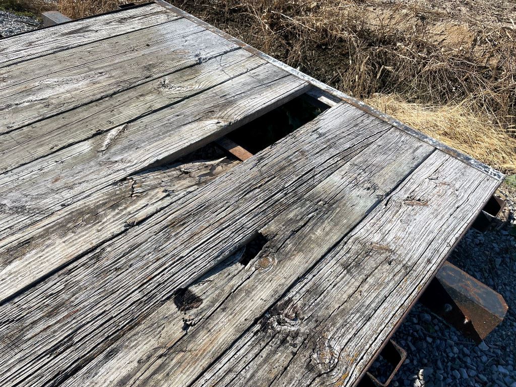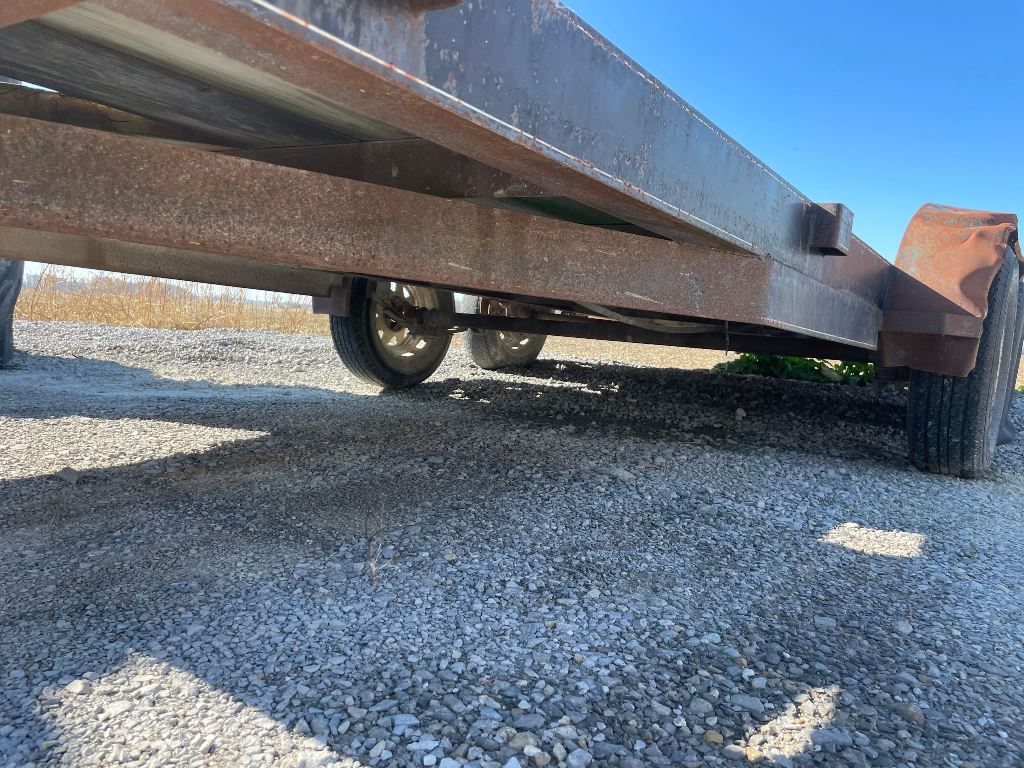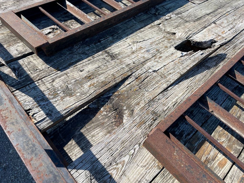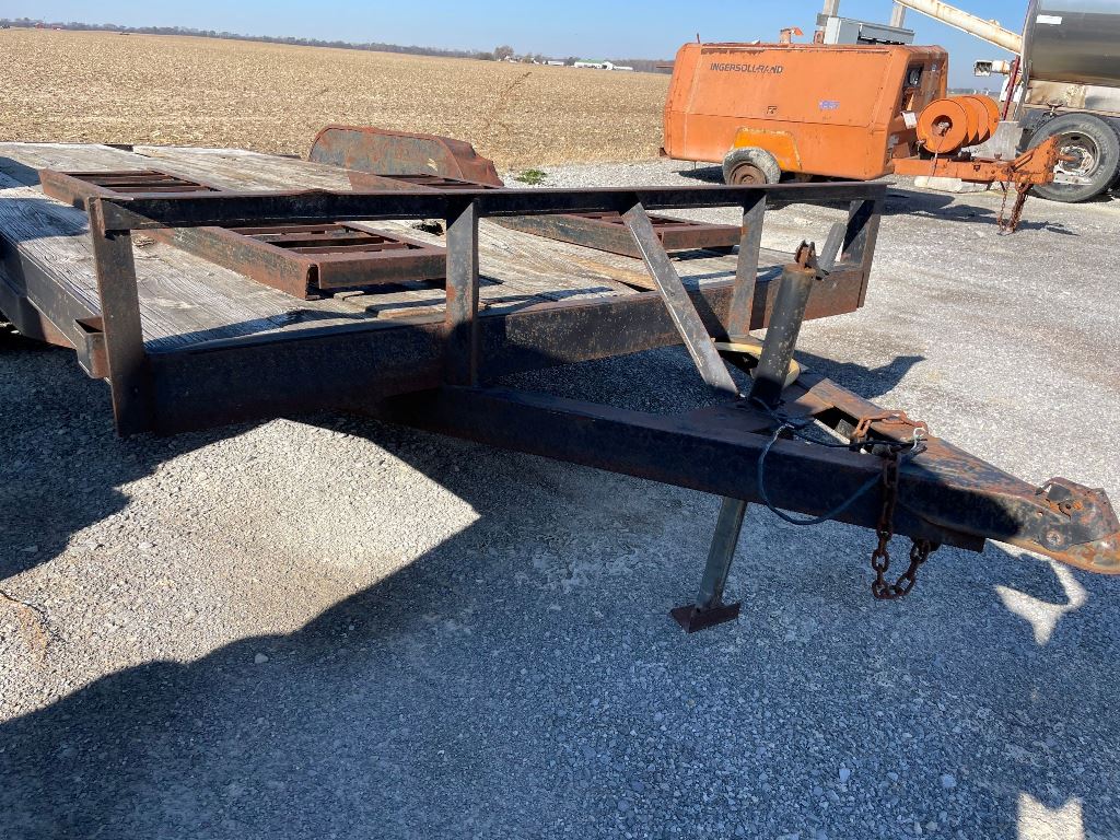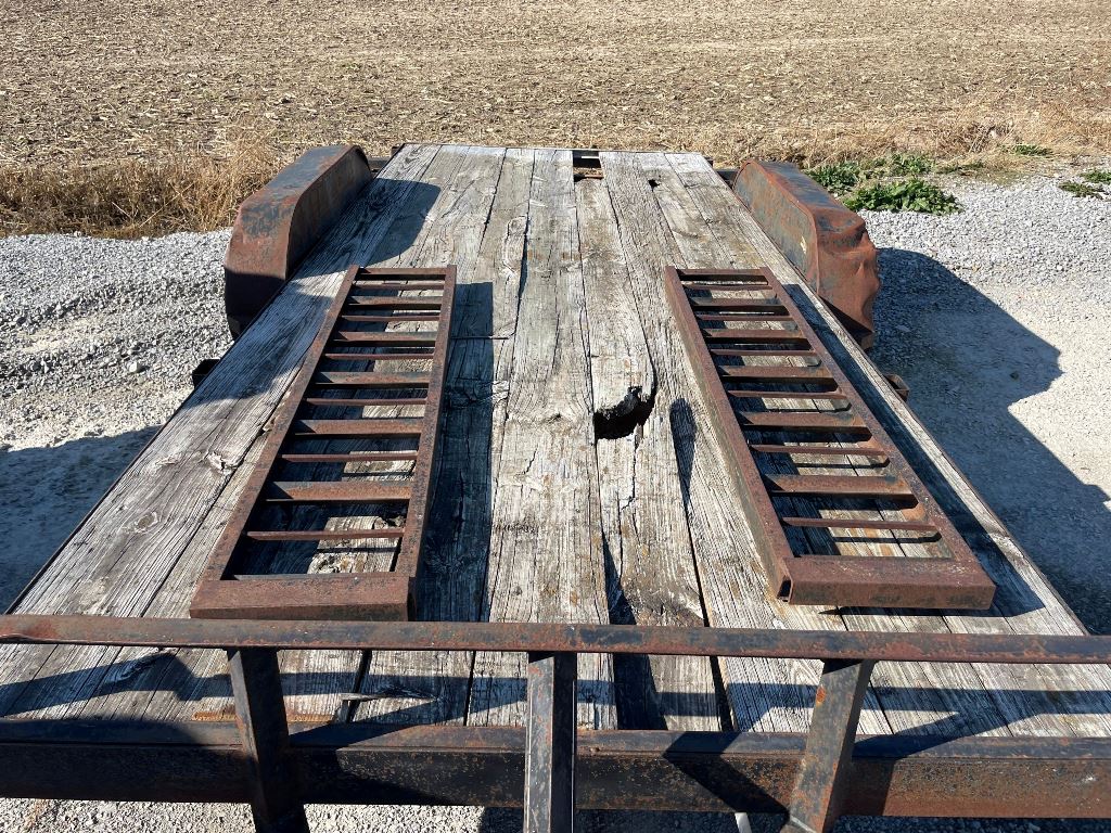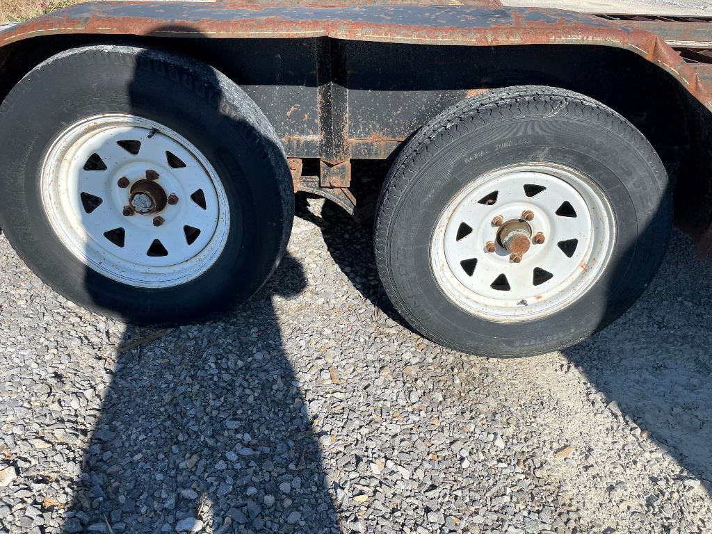 2003 Homemade Flatbed Trailer (GP2210, Unit 111525), 2003 Homemade 16' flatbed trailer, wood deck, ramps, tandem axle, ST205/75R15 tires, fenders.