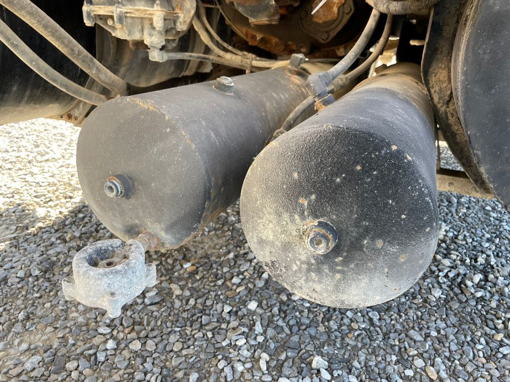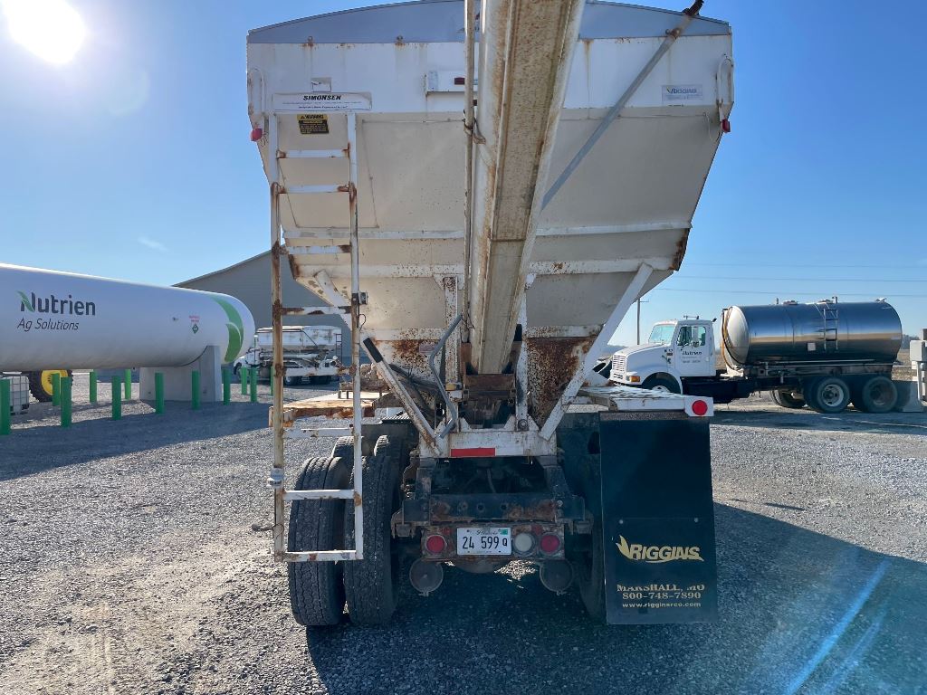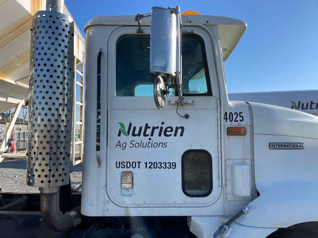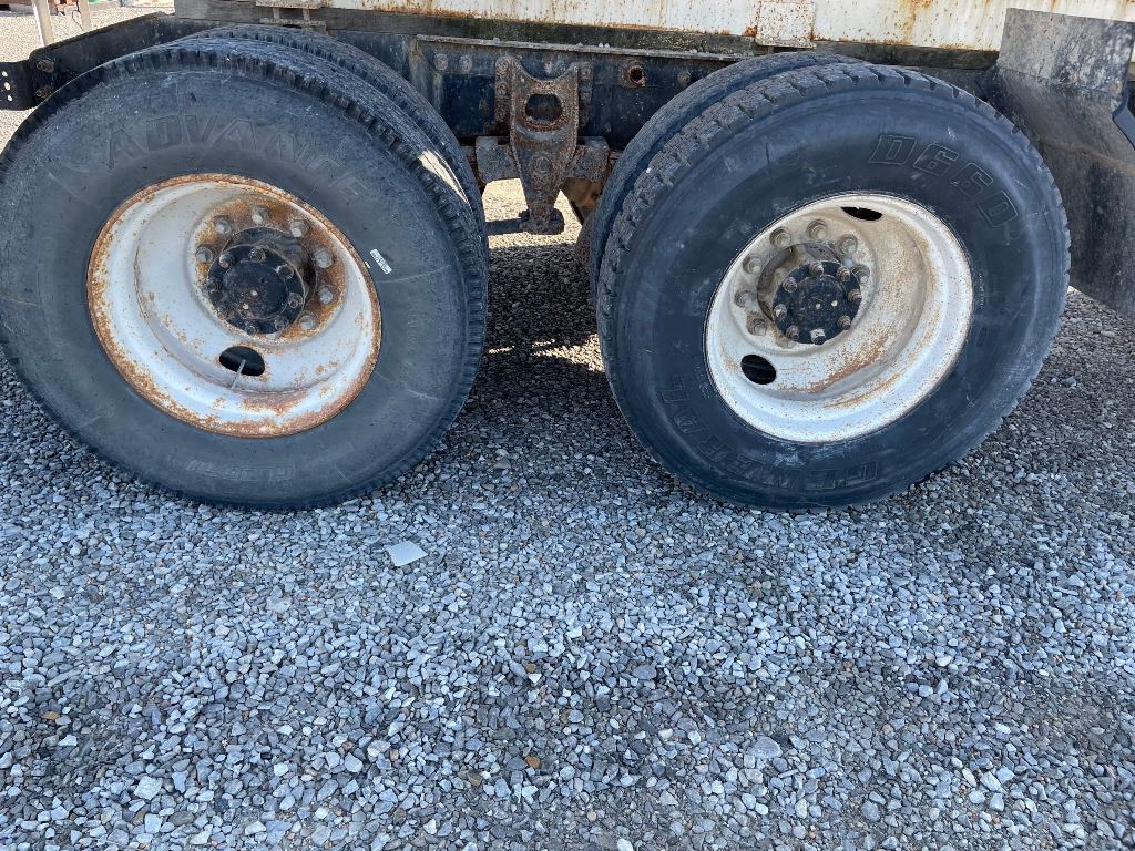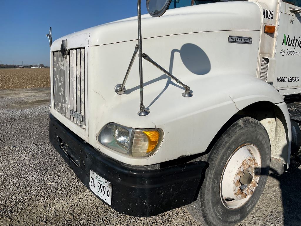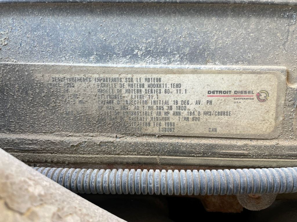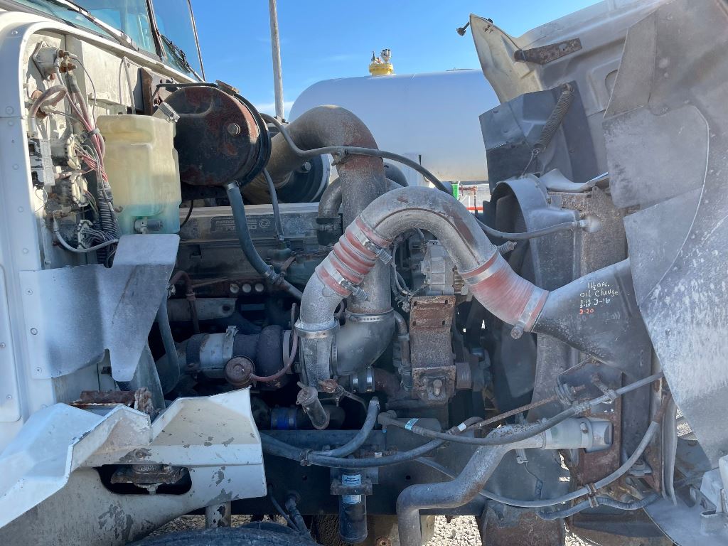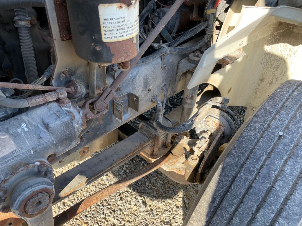 1998 IHC 9100 Dry Tender Truck (GP2201, Unit 111535), Detroit Series 60 diesel engine, Spicer 10 speed transmission, air conditioning, heat, Am/Fm CD radio, cruise control, tandem axle, full screw, spring suspension, Simonsen model 4816 16 ton dry tender box (S/N 2780), rear discharge auger, all hydraulic, 11R22.5 tires, shows 438,779 miles.