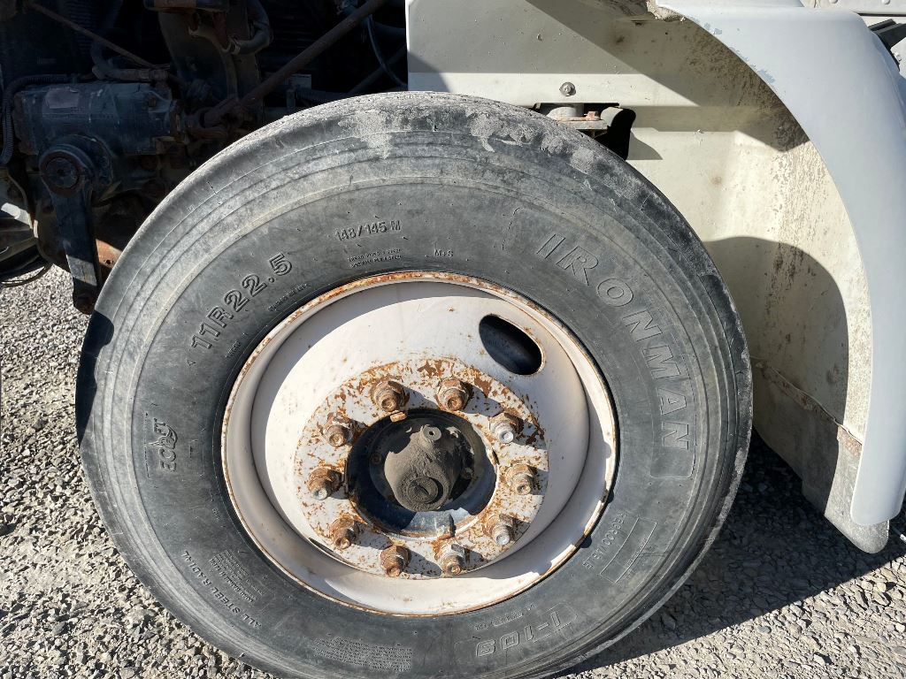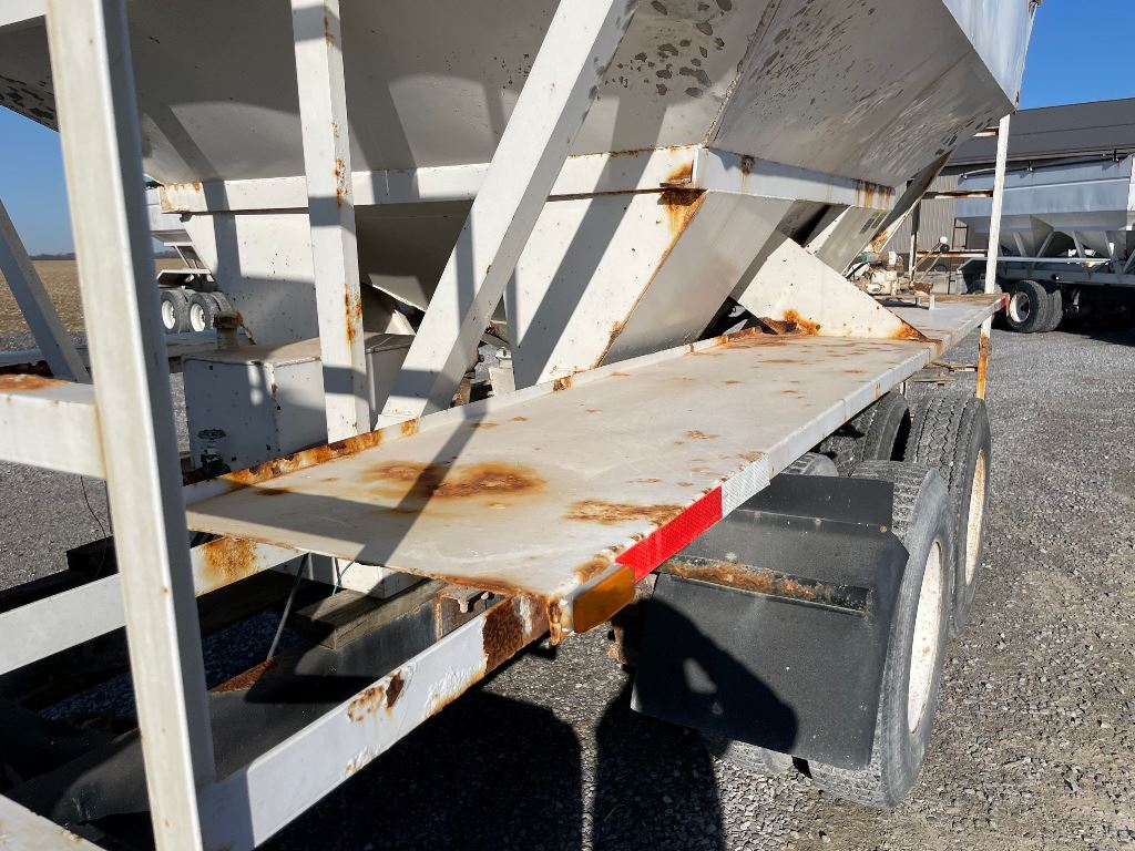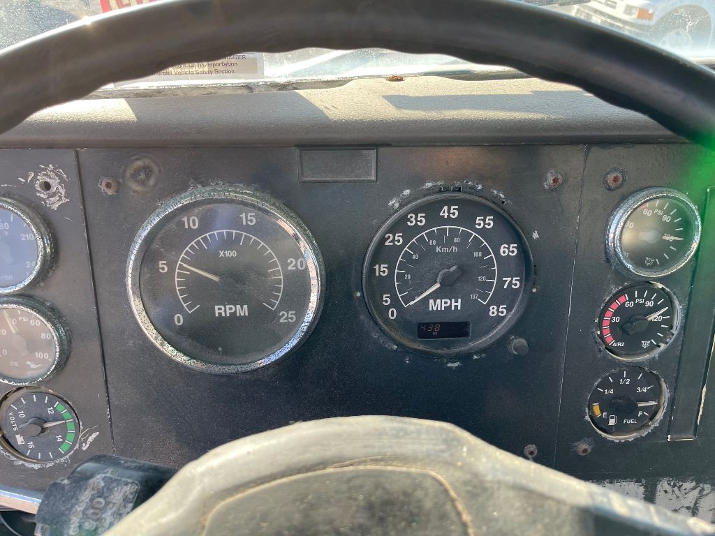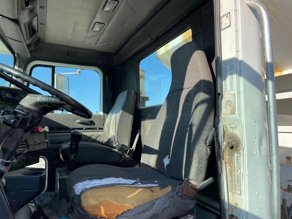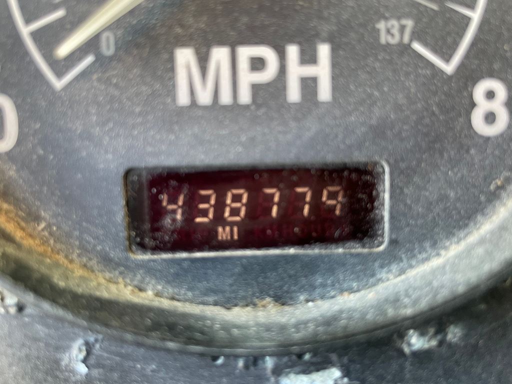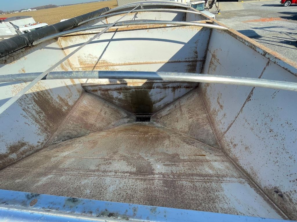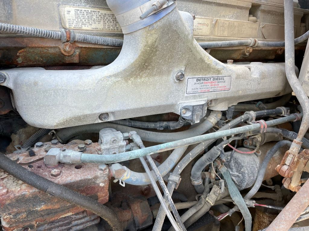 1998 IHC 9100 Dry Tender Truck (GP2201, Unit 111535), Detroit Series 60 diesel engine, Spicer 10 speed transmission, air conditioning, heat, Am/Fm CD radio, cruise control, tandem axle, full screw, spring suspension, Simonsen model 4816 16 ton dry tender box (S/N 2780), rear discharge auger, all hydraulic, 11R22.5 tires, shows 438,779 miles.