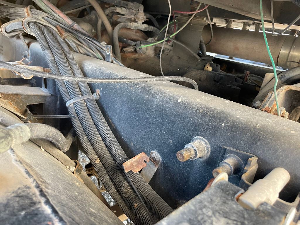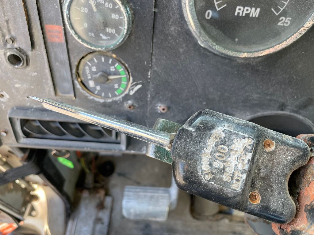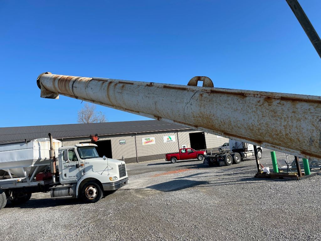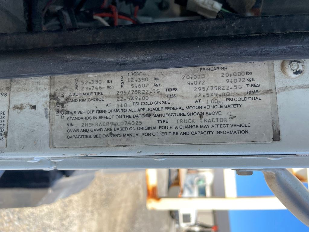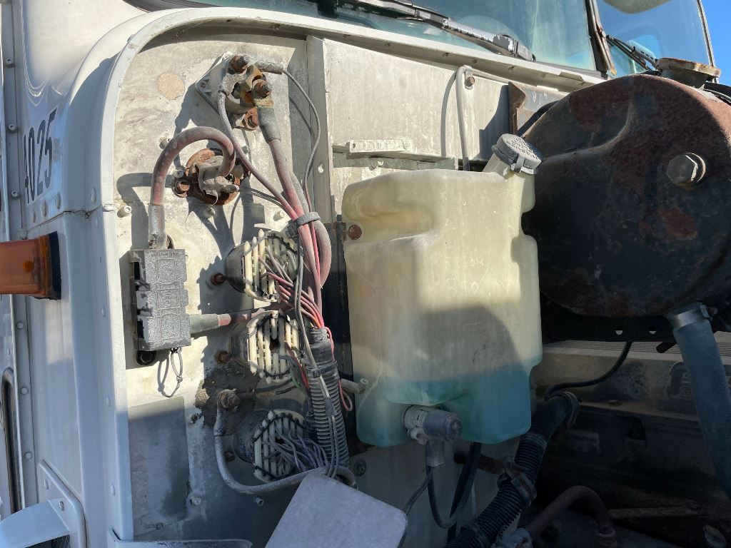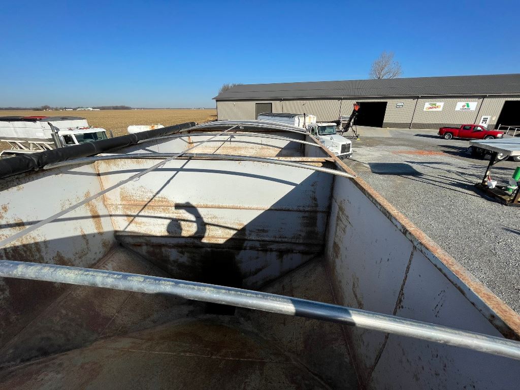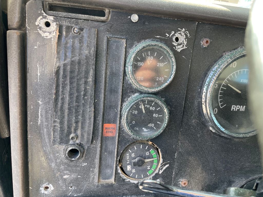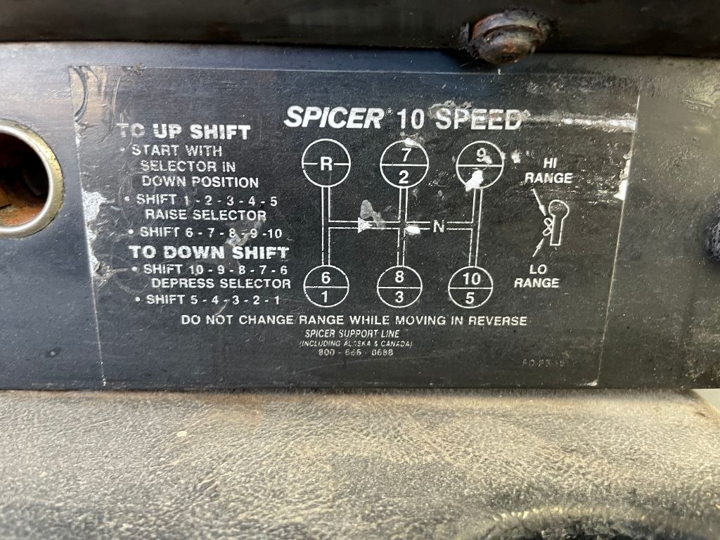 1998 IHC 9100 Dry Tender Truck (GP2201, Unit 111535), Detroit Series 60 diesel engine, Spicer 10 speed transmission, air conditioning, heat, Am/Fm CD radio, cruise control, tandem axle, full screw, spring suspension, Simonsen model 4816 16 ton dry tender box (S/N 2780), rear discharge auger, all hydraulic, 11R22.5 tires, shows 438,779 miles.