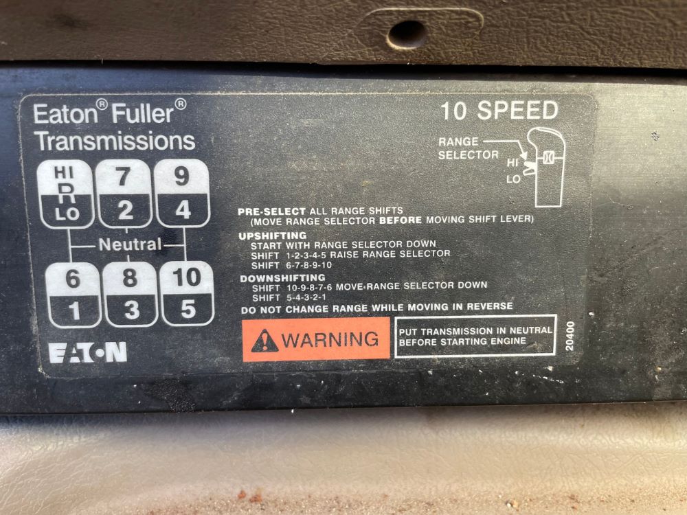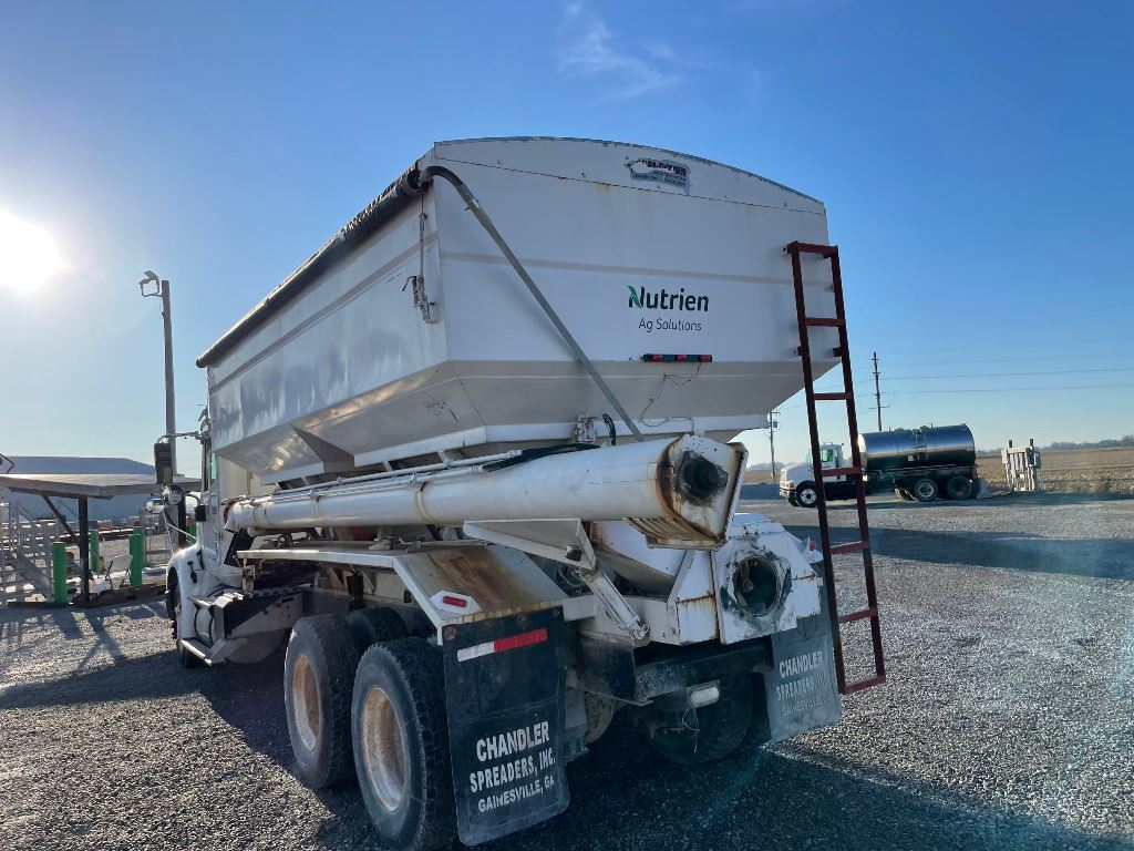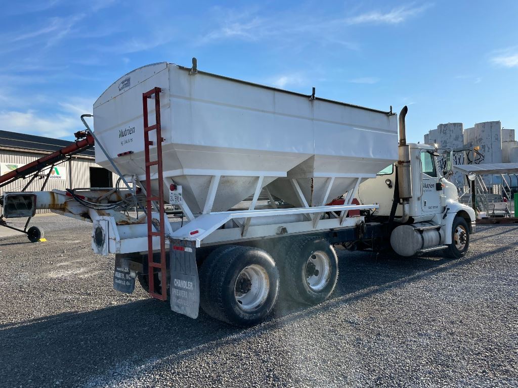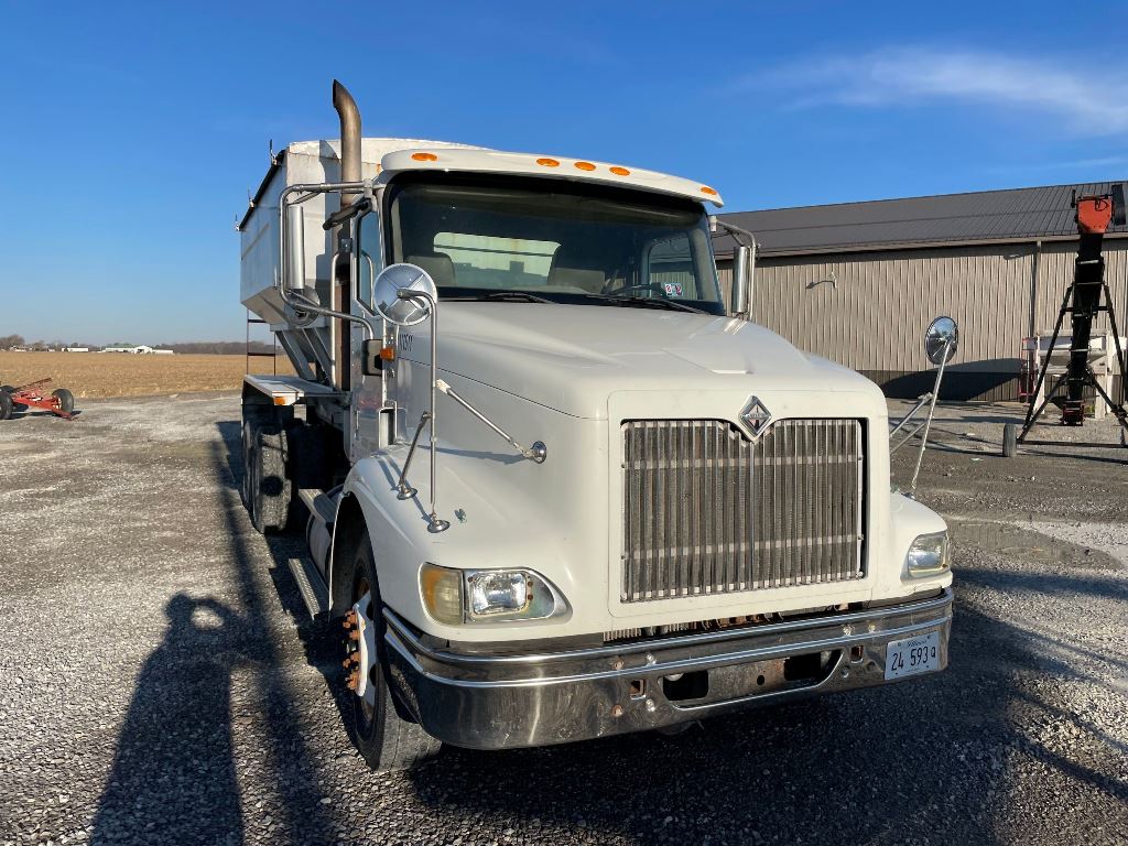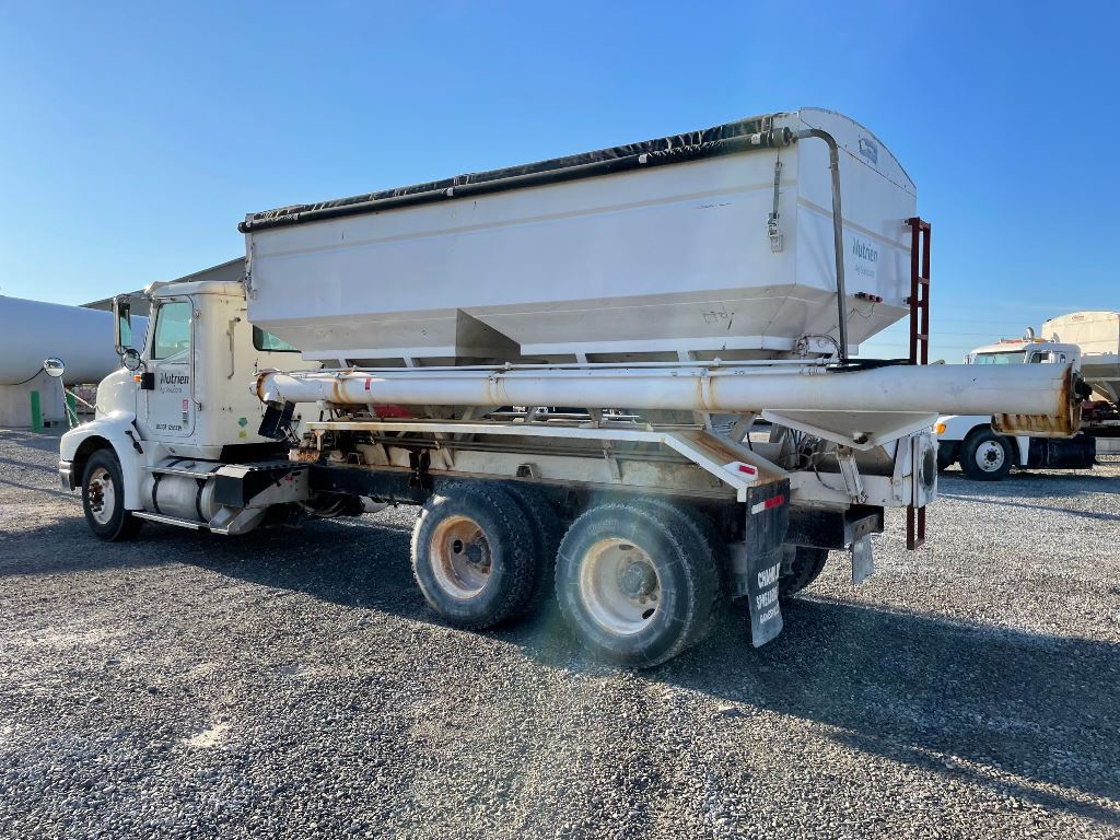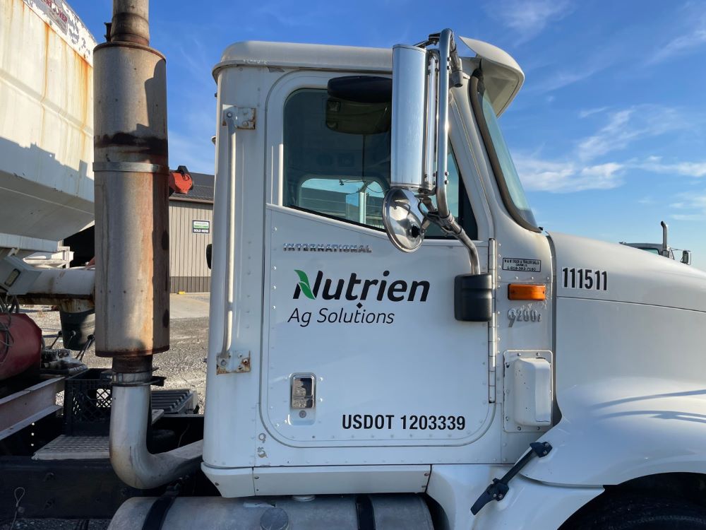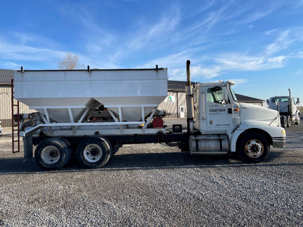 2005 IHC 9200i Dry Tender Truck (GP2199, Unit 111511), Cummins ISX 435ST diesel engine, Eaton Fuller 10 speed transmission, air conditioning, heat, Am/Fm CD radio, cruise control, engine brake, power windows, tandem axle, full screw, air ride suspension, 16 ton dry tender box, side discharge auger, all hydraulic, roll over tarp, 275/80R22.5 tires, shows 837,806 miles.