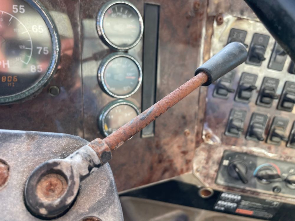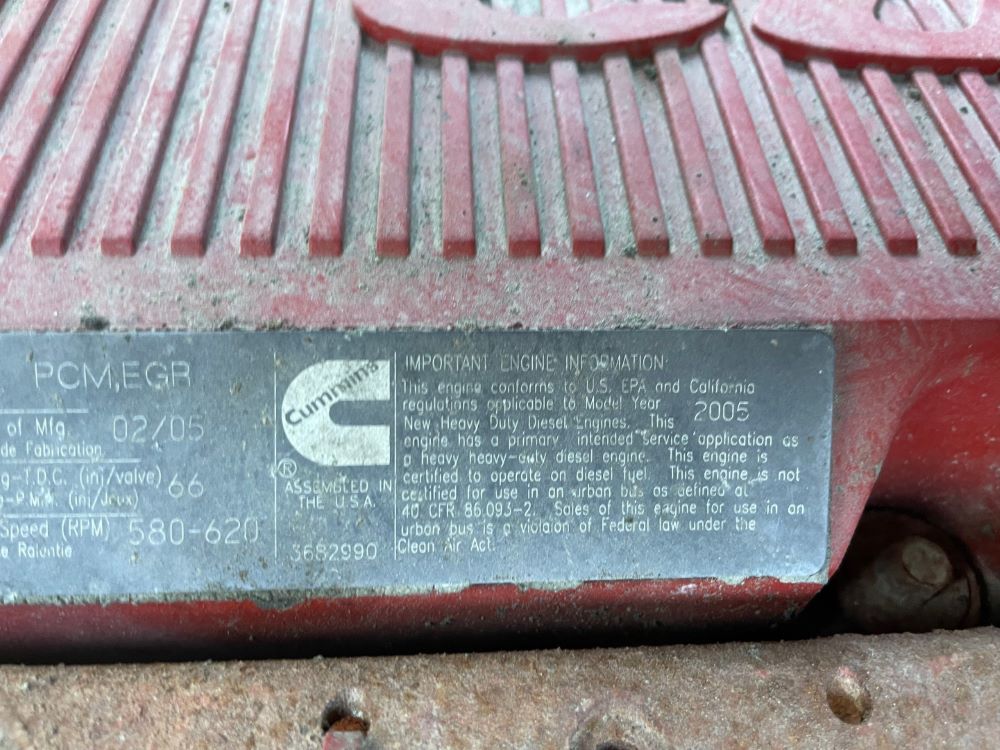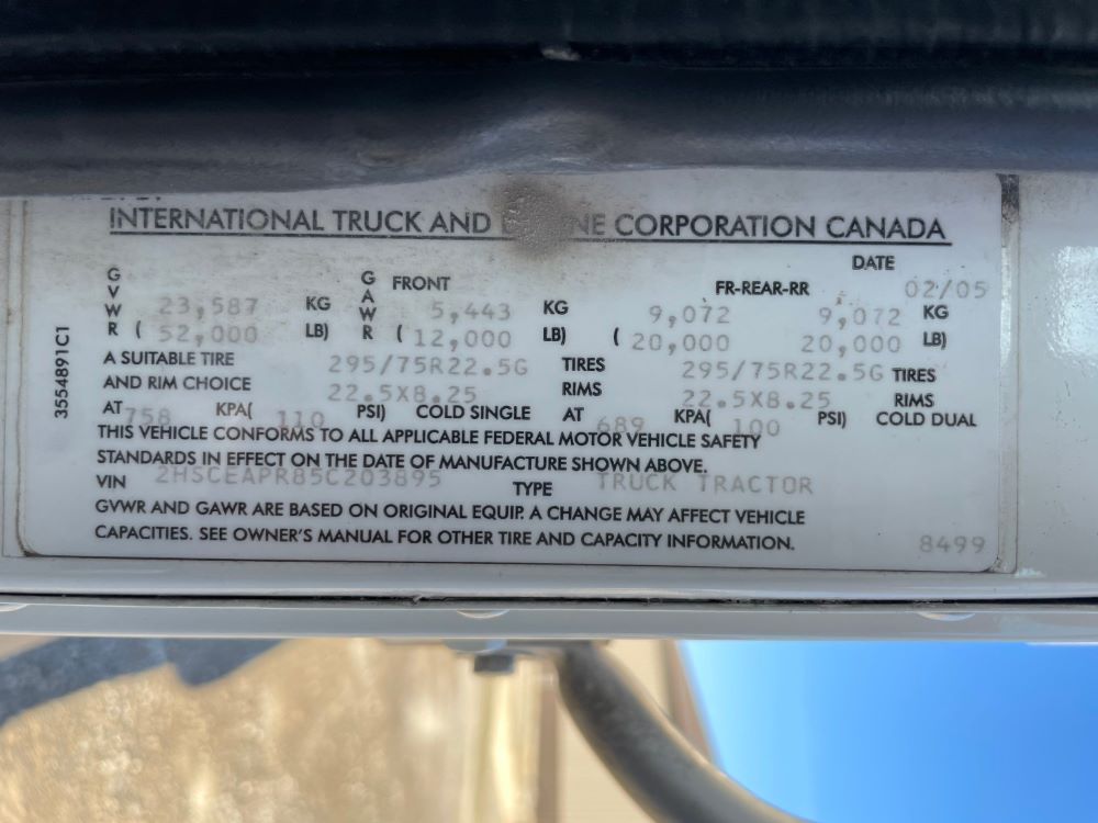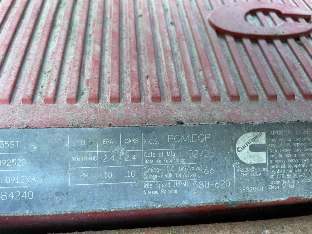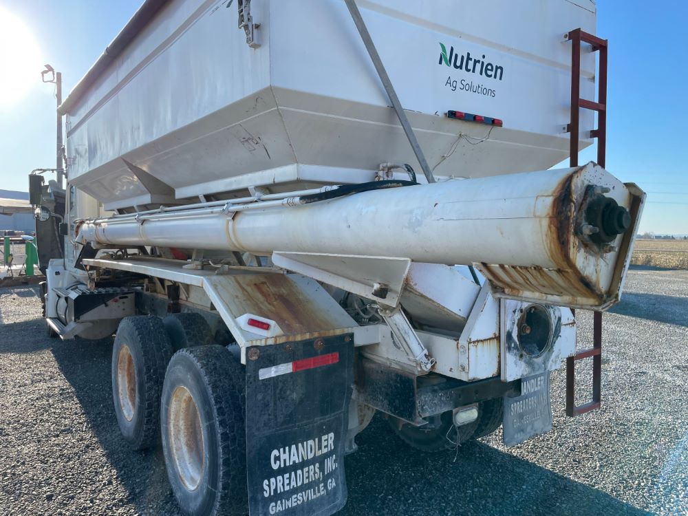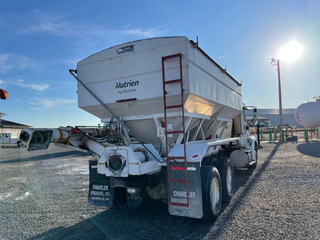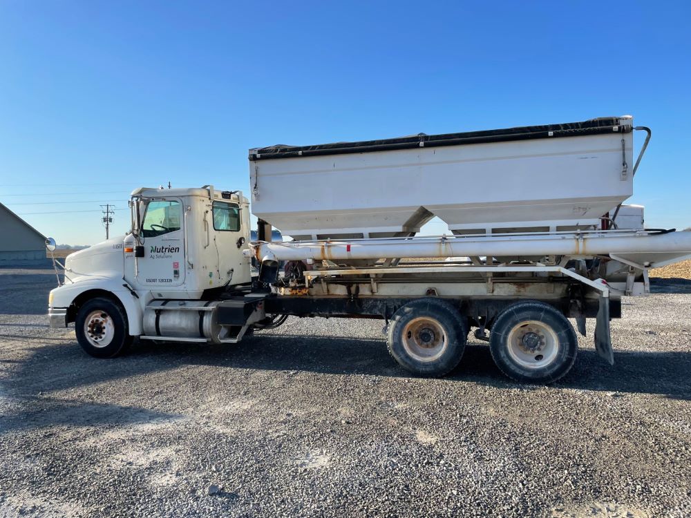 2005 IHC 9200i Dry Tender Truck (GP2199, Unit 111511), Cummins ISX 435ST diesel engine, Eaton Fuller 10 speed transmission, air conditioning, heat, Am/Fm CD radio, cruise control, engine brake, power windows, tandem axle, full screw, air ride suspension, 16 ton dry tender box, side discharge auger, all hydraulic, roll over tarp, 275/80R22.5 tires, shows 837,806 miles.