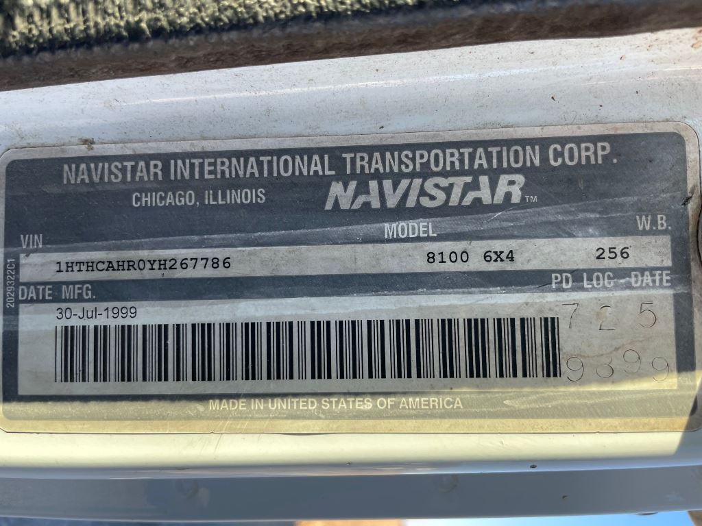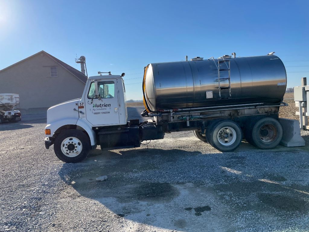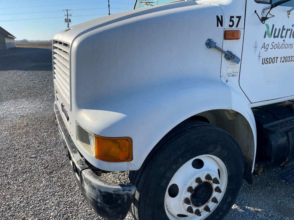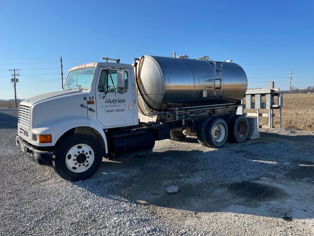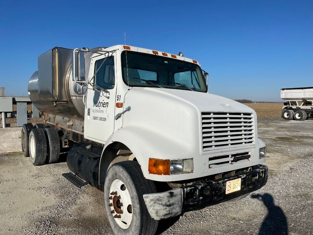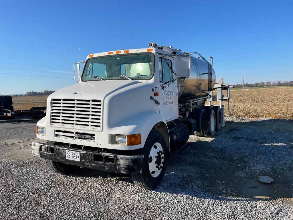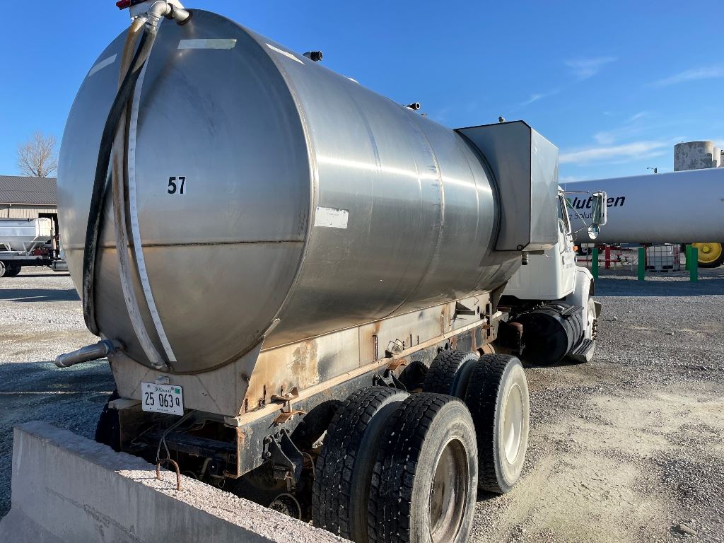 2000 IHC 8100 Liquid Nurse Truck (GP2203, Unit 111575), diesel engine, Rockwell 10 speed transmission, air conditioning, heat, Am/Fm cassette radio, cruise control, power windows, tandem axle, full screw, spring suspension, Precision 3200 gallon 2 compartment stainless steel liquid nurse tank, side stainless steel fresh water tank, 295/75R22.5 tires, shows 337,747 miles.