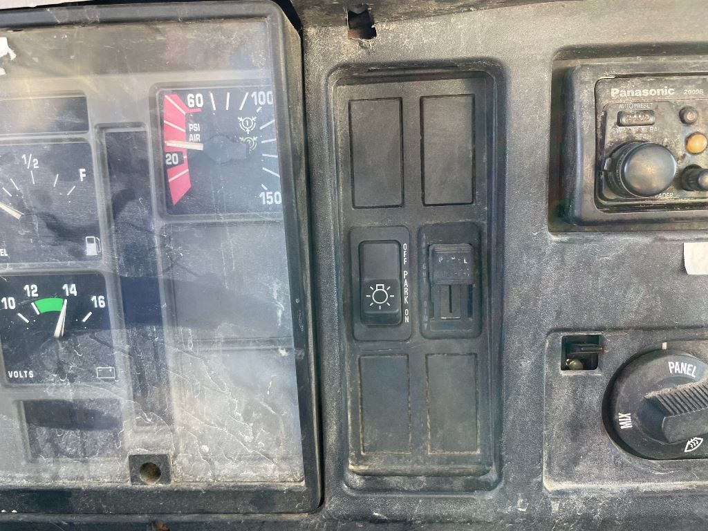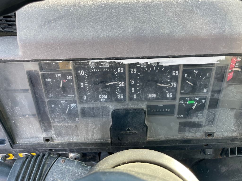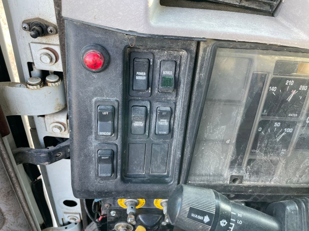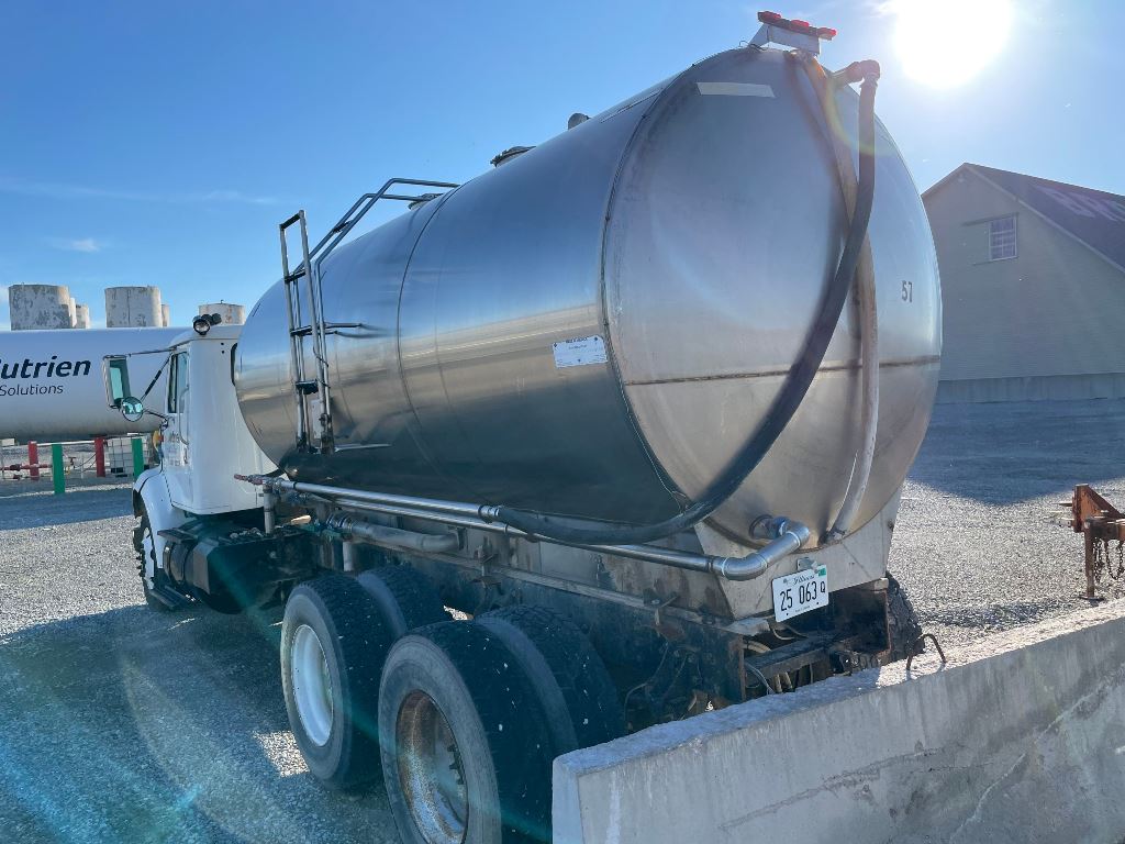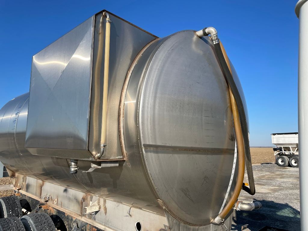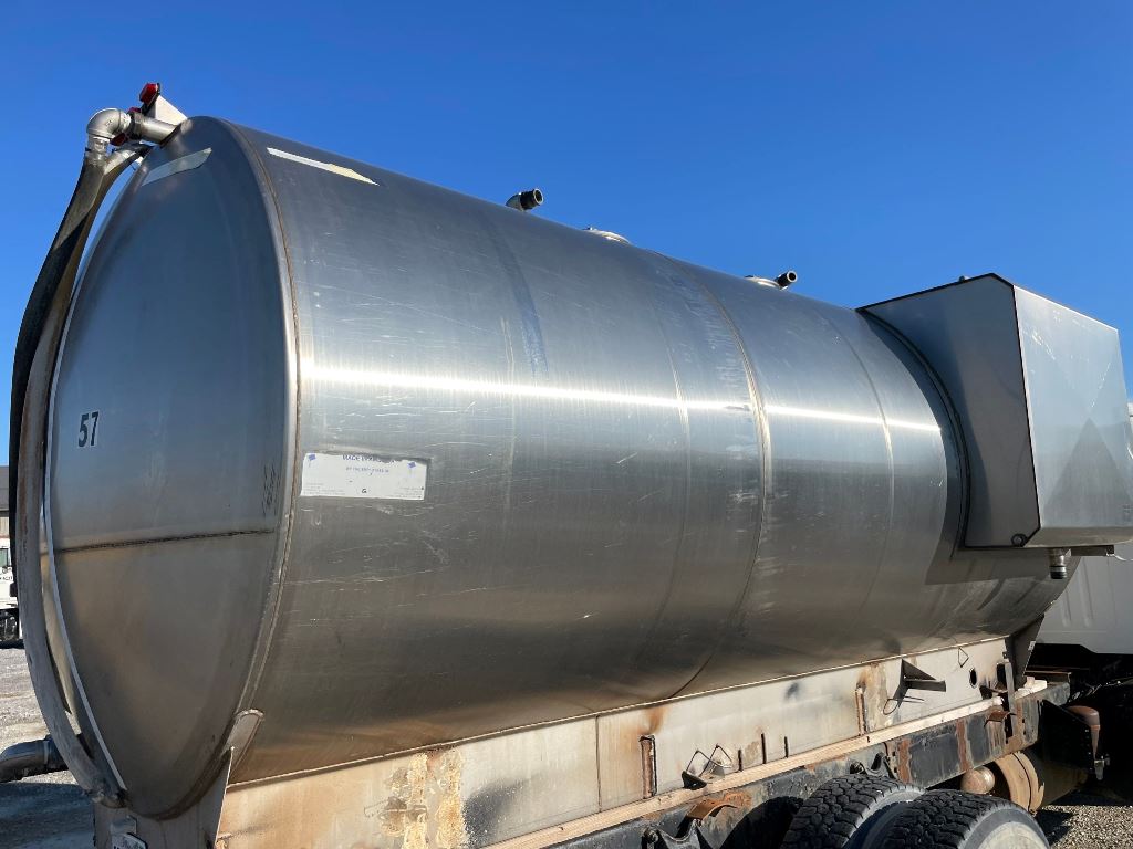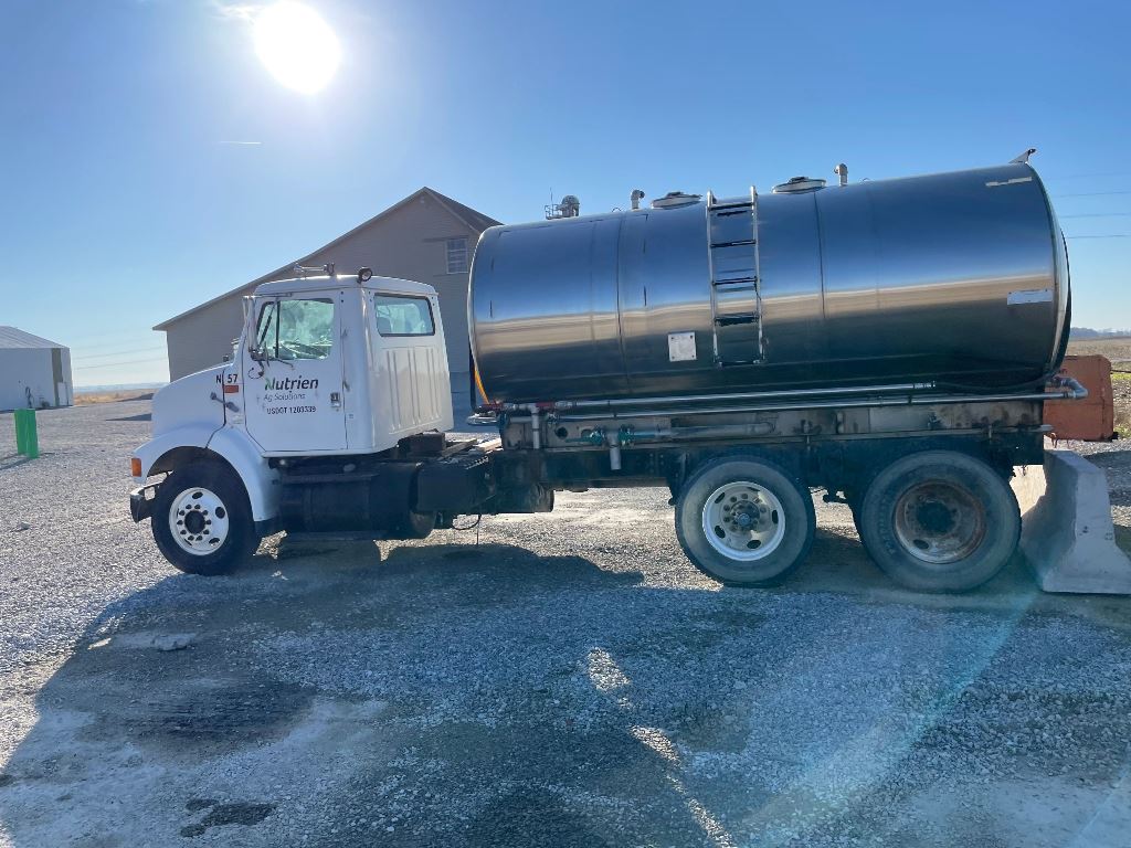 2000 IHC 8100 Liquid Nurse Truck (GP2203, Unit 111575), diesel engine, Rockwell 10 speed transmission, air conditioning, heat, Am/Fm cassette radio, cruise control, power windows, tandem axle, full screw, spring suspension, Precision 3200 gallon 2 compartment stainless steel liquid nurse tank, side stainless steel fresh water tank, 295/75R22.5 tires, shows 337,747 miles.