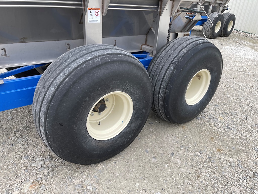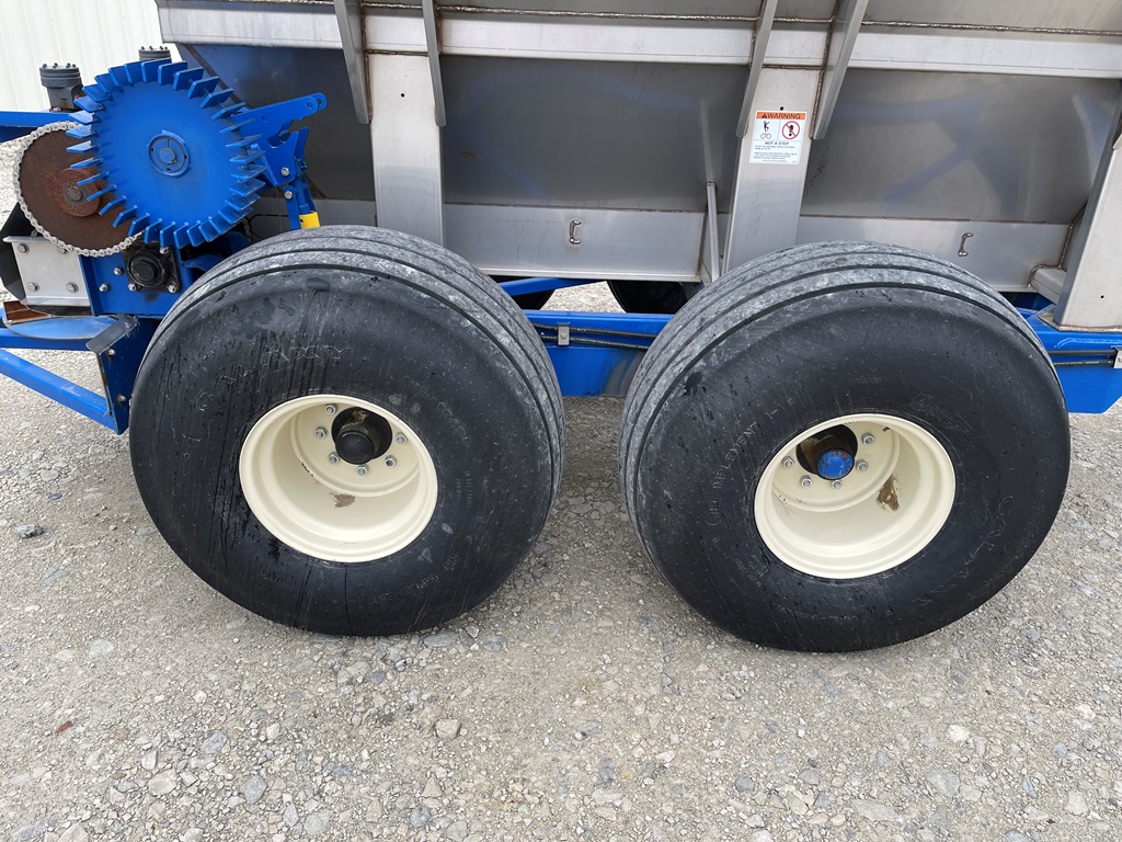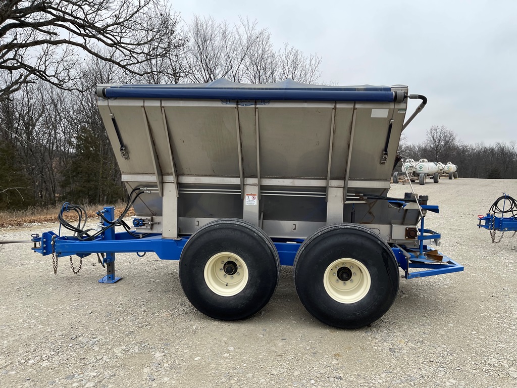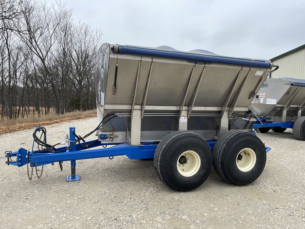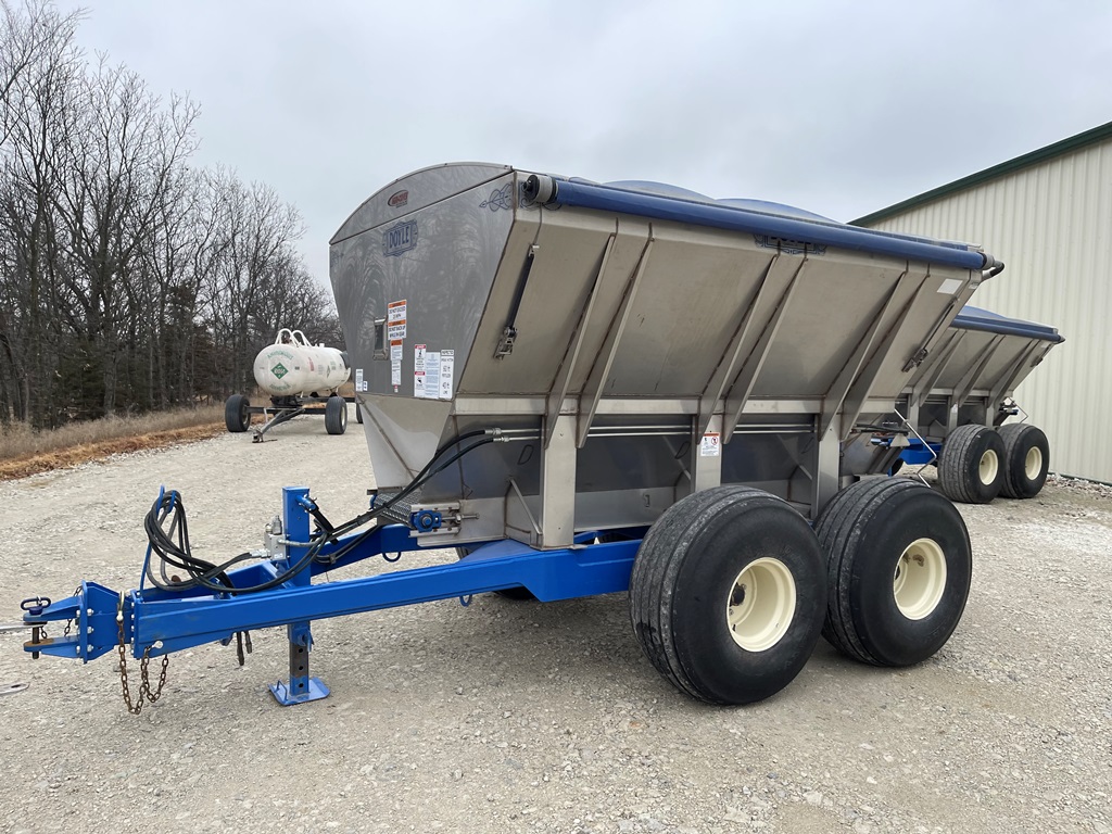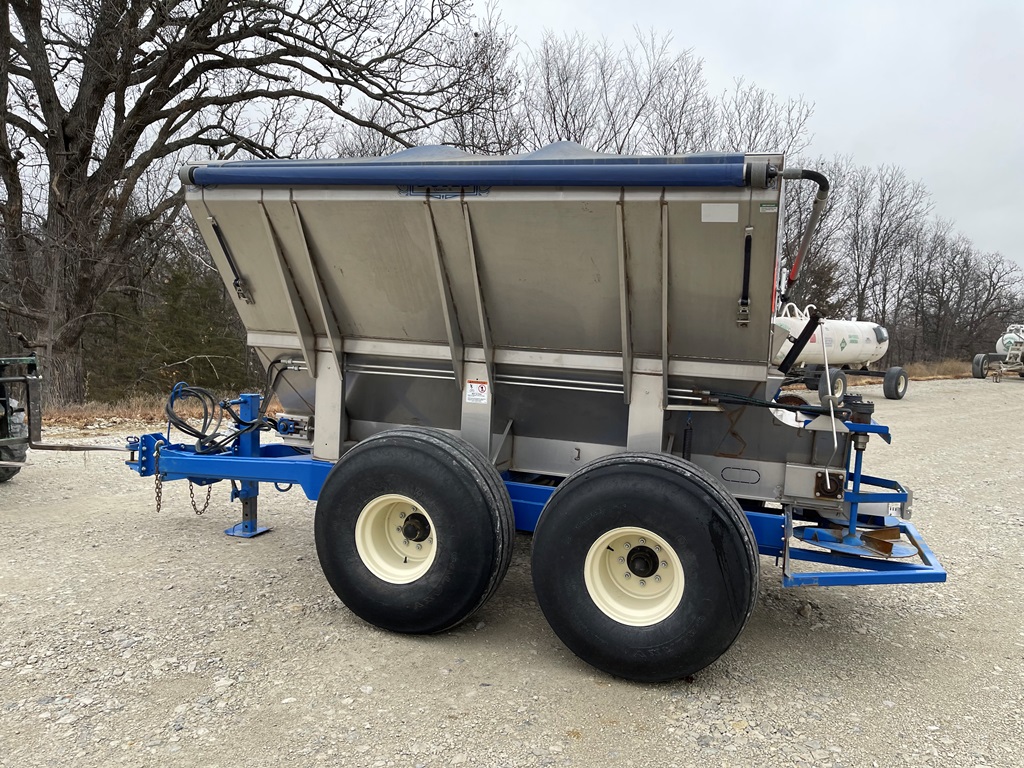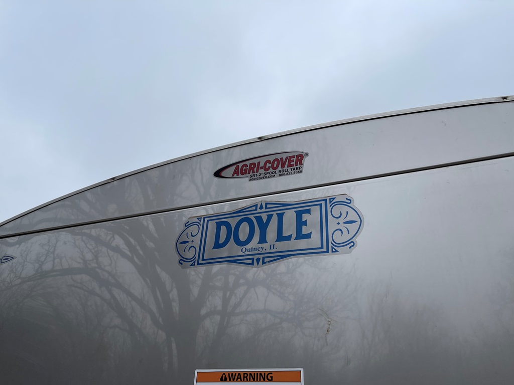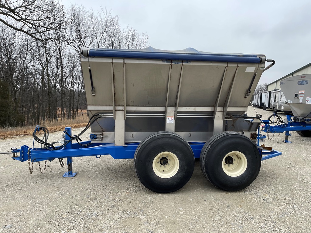 Doyle 8 Ton Combo Dry Spreader (NP3389), Doyle 8 ton combo stainless steel pull type dry spreader, dual spinners, hydraulic, Agri-Cover manual roll tarp, 60' fertilizer spread pattern, 40' lime spreader pattern, tandem axle, 19L-16.1SL flotation tires, jack stand.
