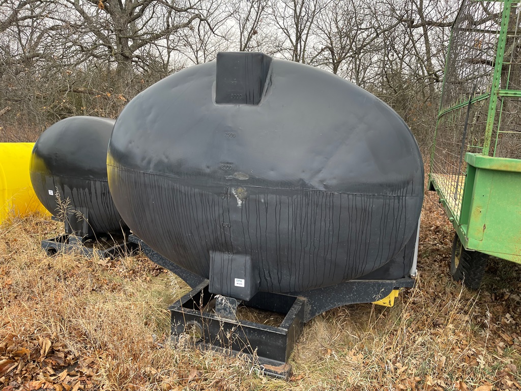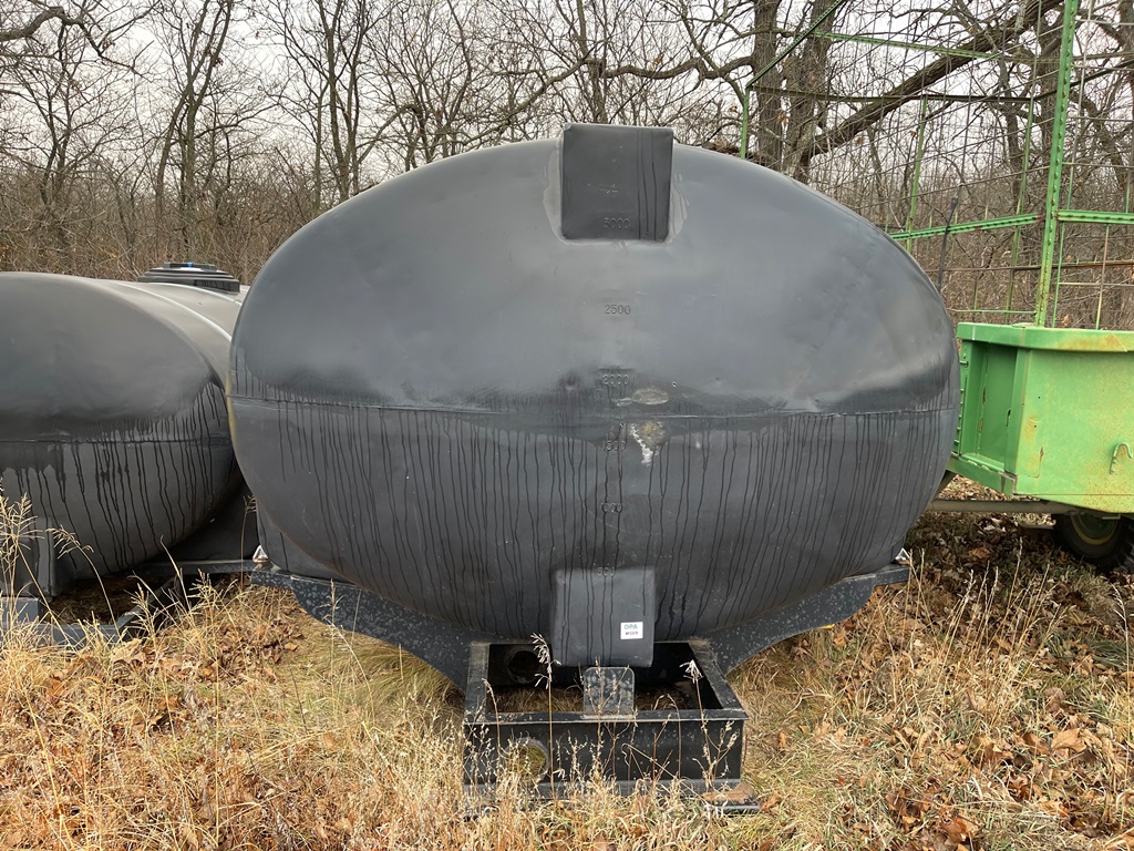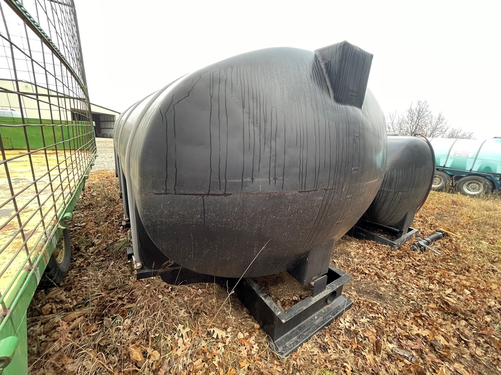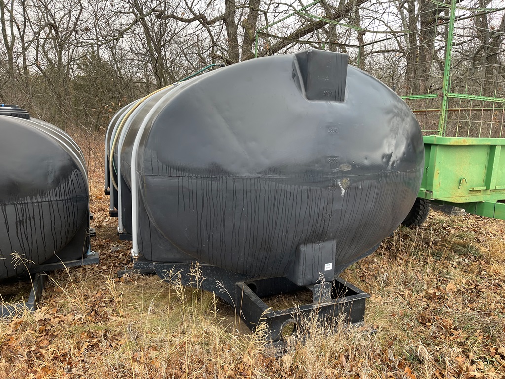 Poly Liquid Tank (NP3379), Poly 3,200 gallon liquid tank, mounted on skid.