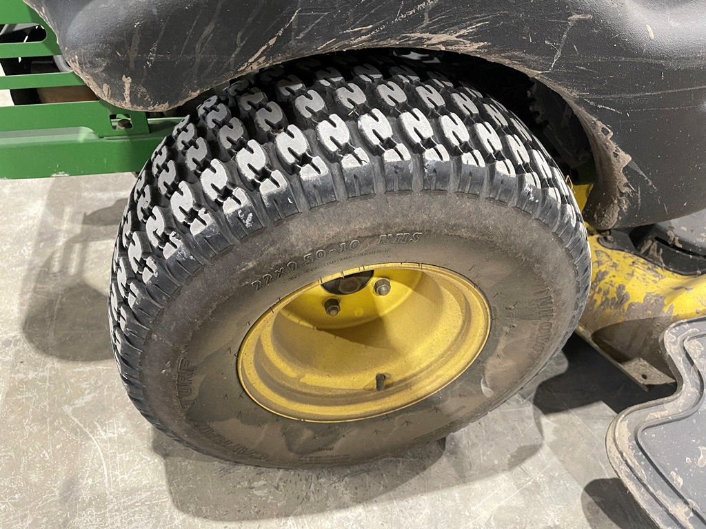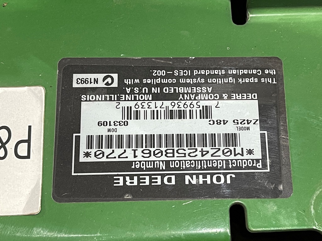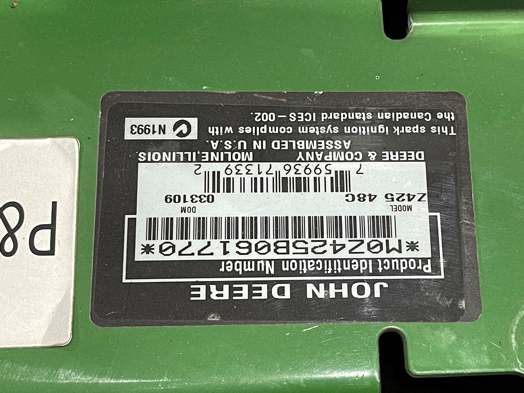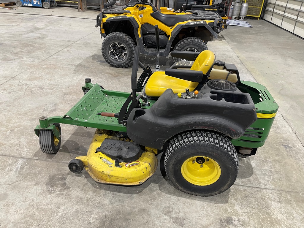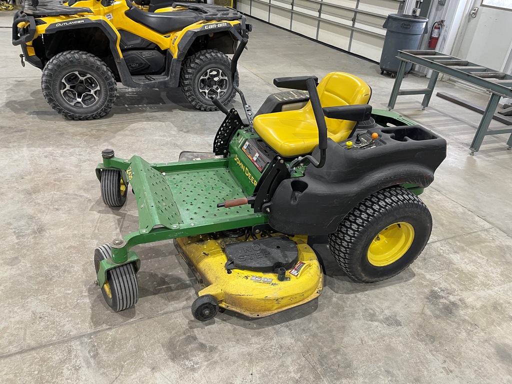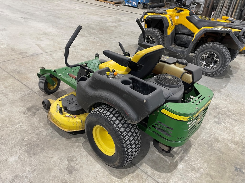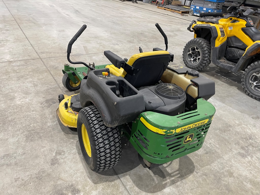 John Deere Z425 EZtrak Zero Turn Mower (NP3378), gas motor, EDGE 48" cutting system, single fuel tank, 22x9.50-10 rear tires, shows 424 hours.