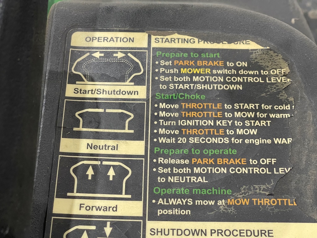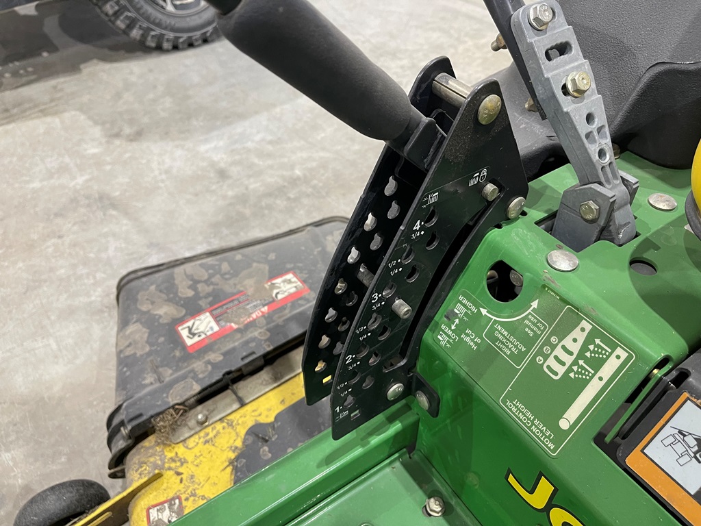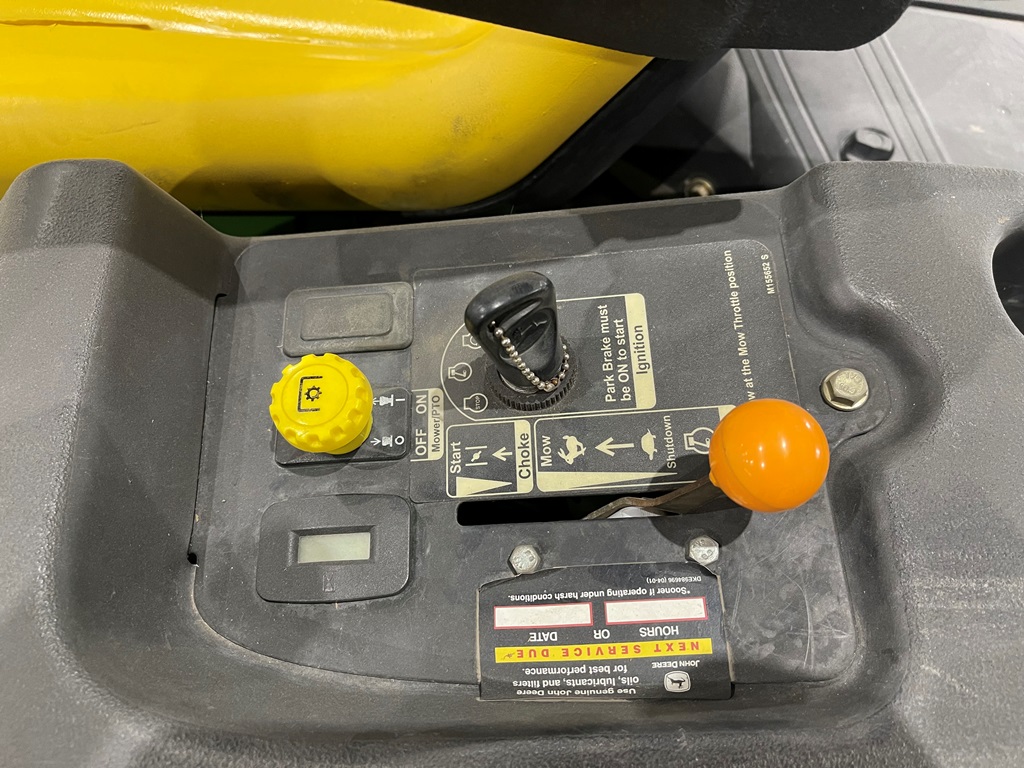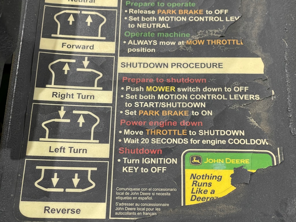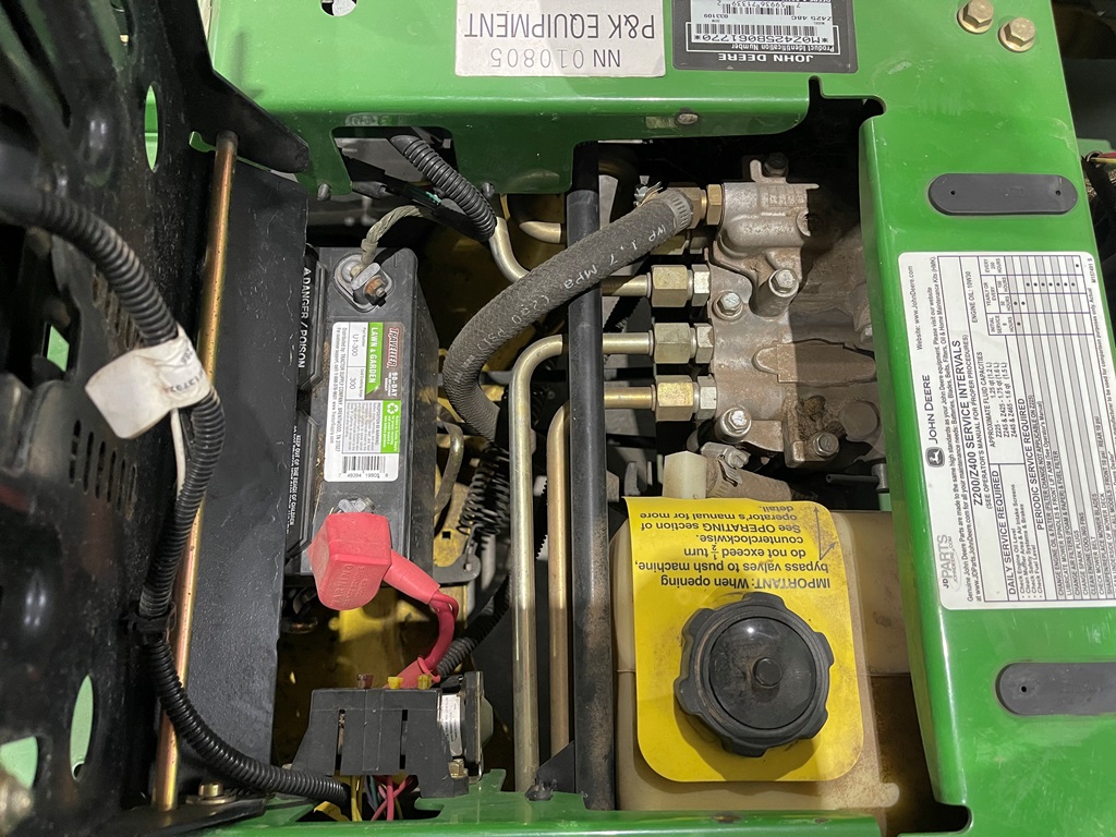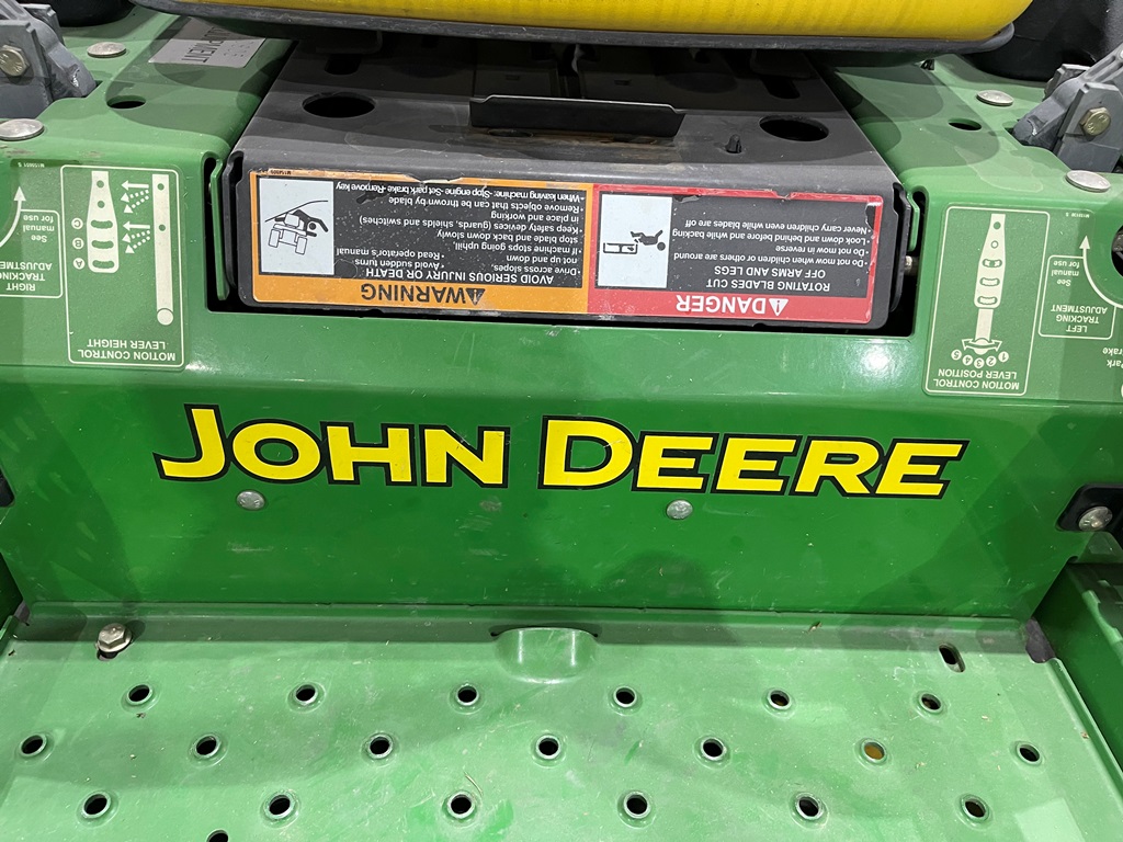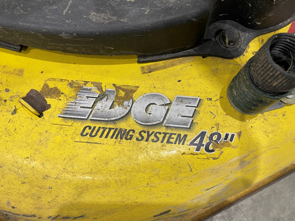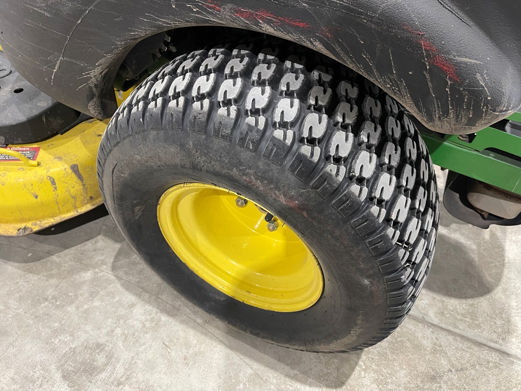 John Deere Z425 EZtrak Zero Turn Mower (NP3378), gas motor, EDGE 48" cutting system, single fuel tank, 22x9.50-10 rear tires, shows 424 hours.