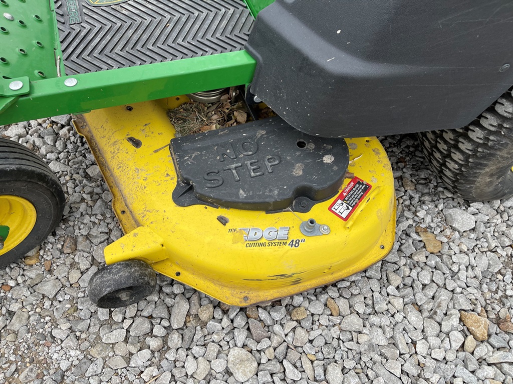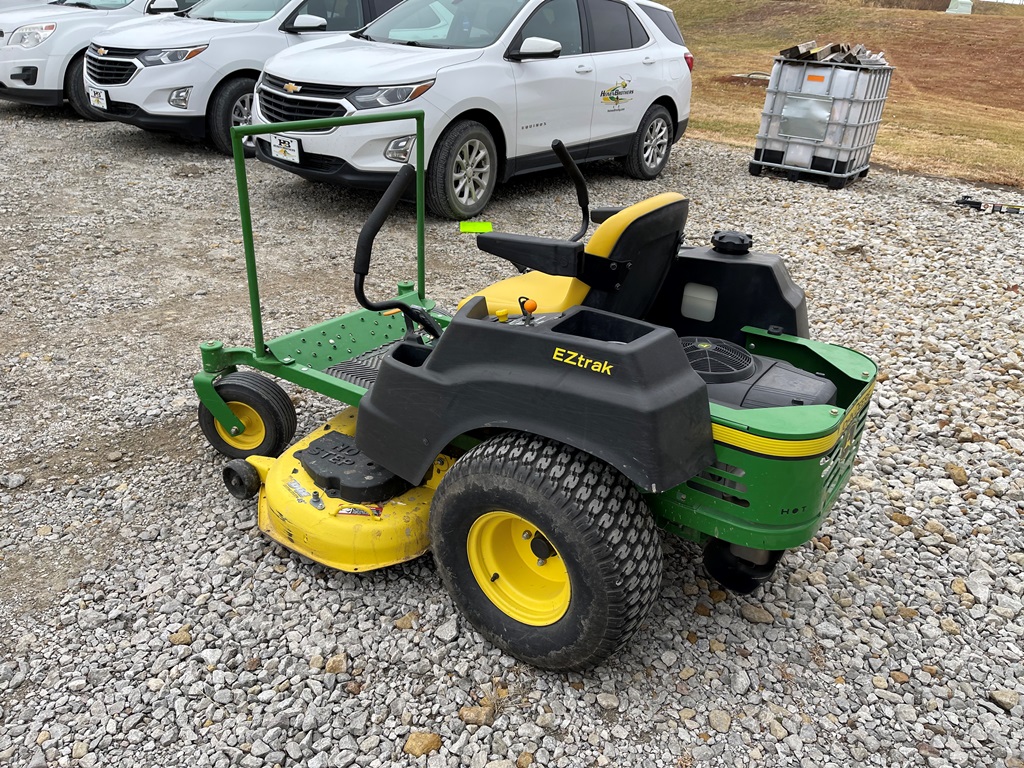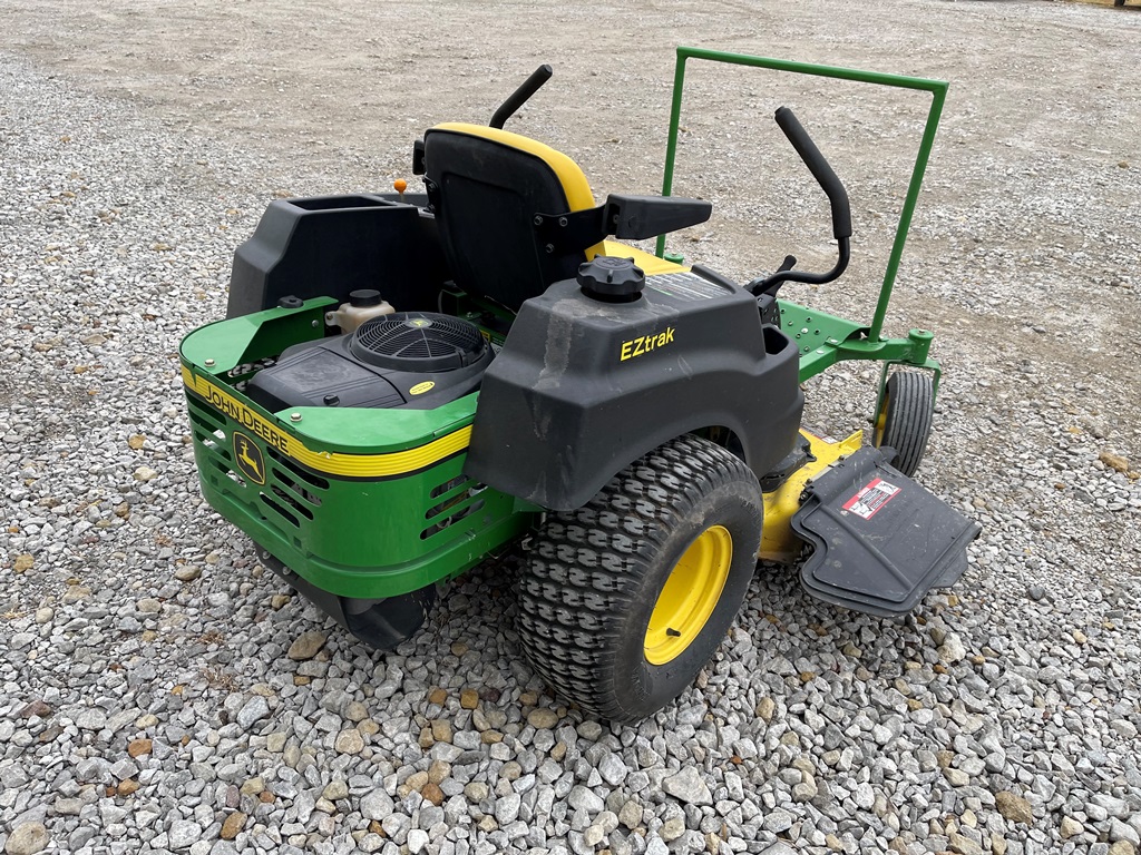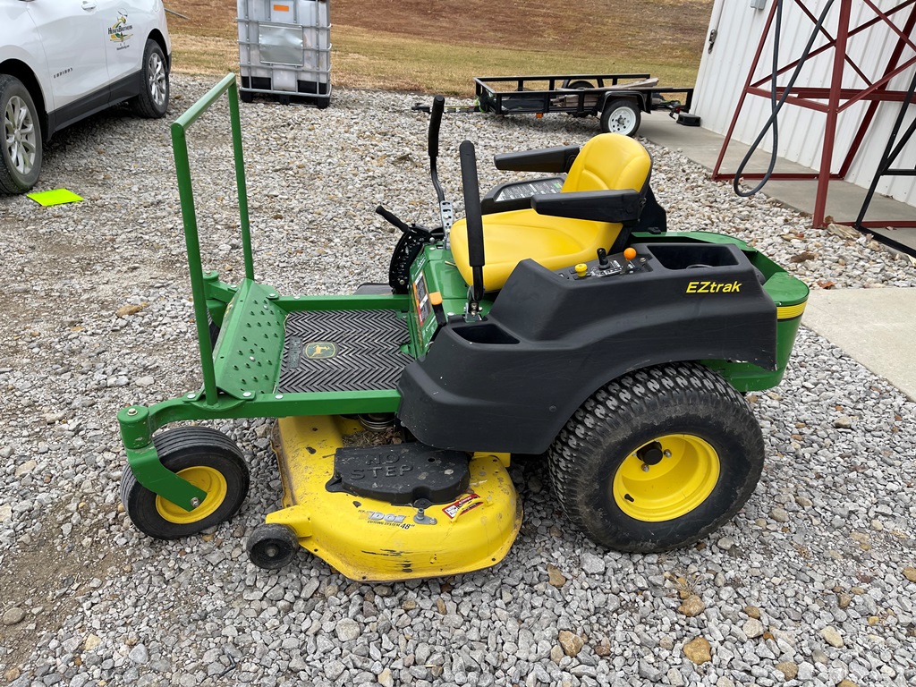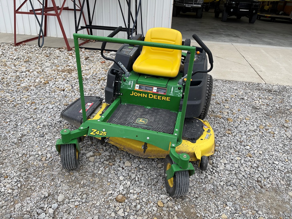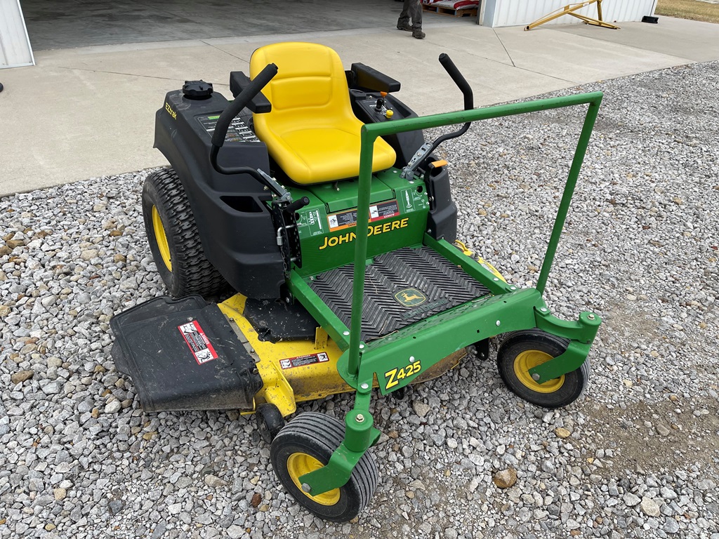 John Deere Z425 EZtrak Zero Turn Mower (NP3399), gas motor, EDGE 48" cutting system, single fuel tank, 22x9.50-10 rear tires, shows 653 hours.