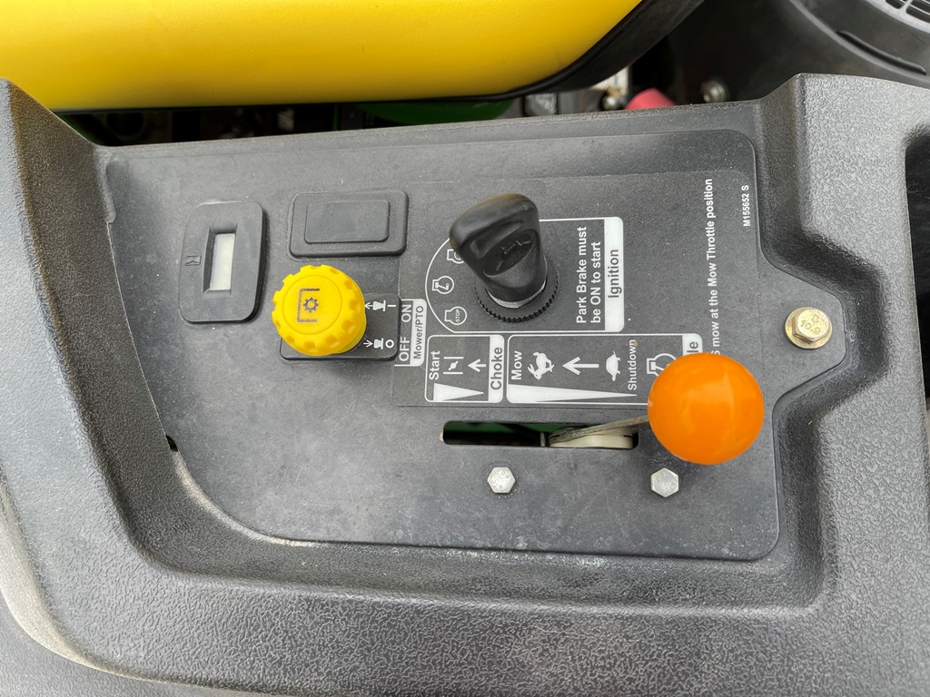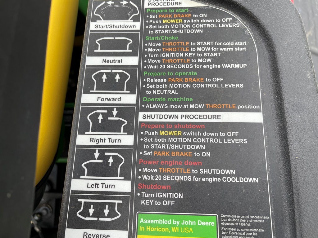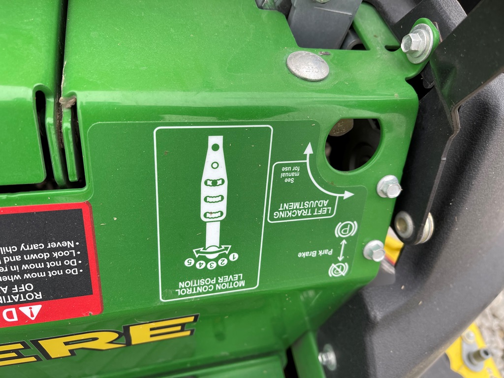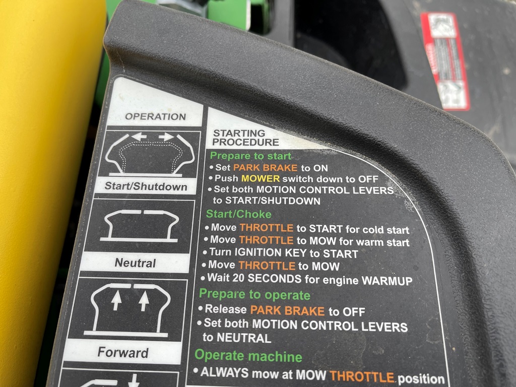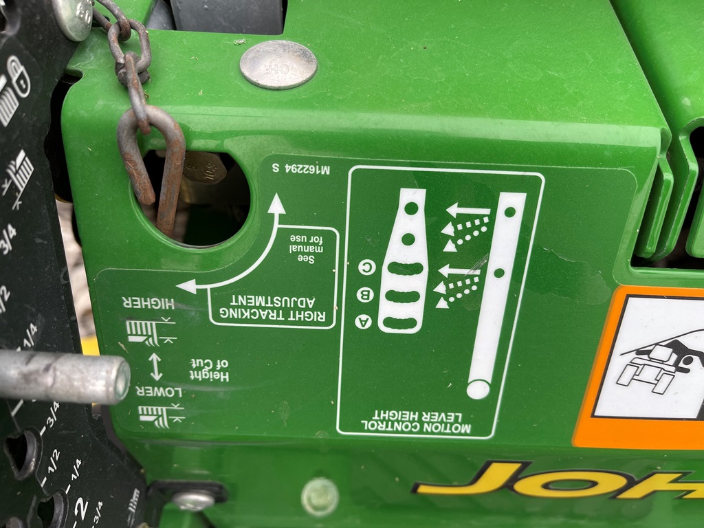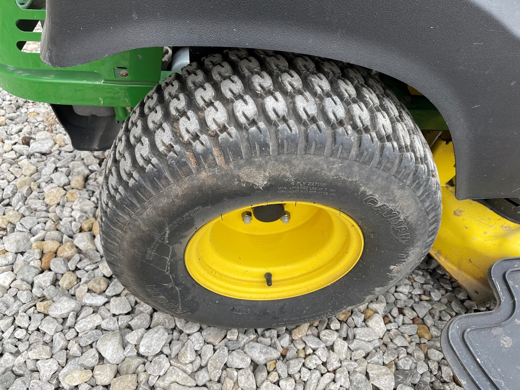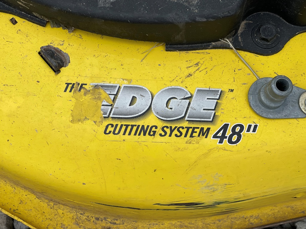 John Deere Z425 EZtrak Zero Turn Mower (NP3399), gas motor, EDGE 48" cutting system, single fuel tank, 22x9.50-10 rear tires, shows 653 hours.