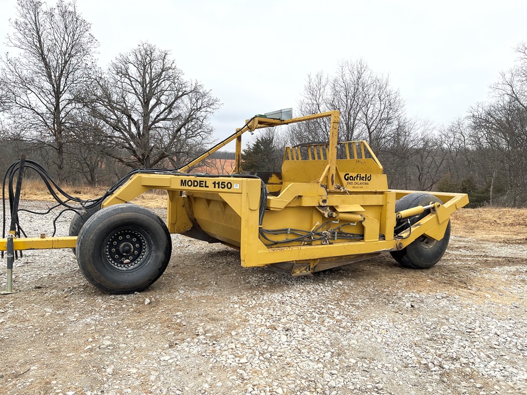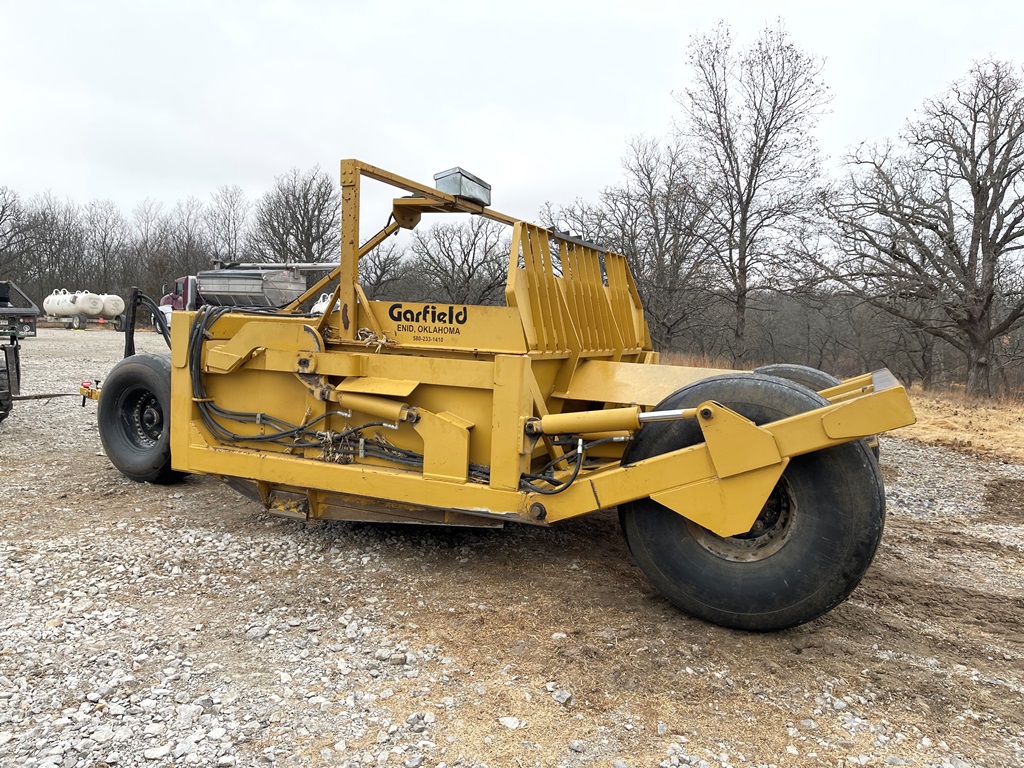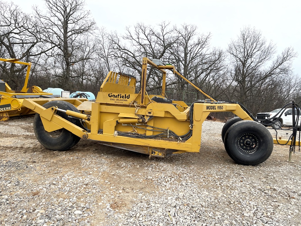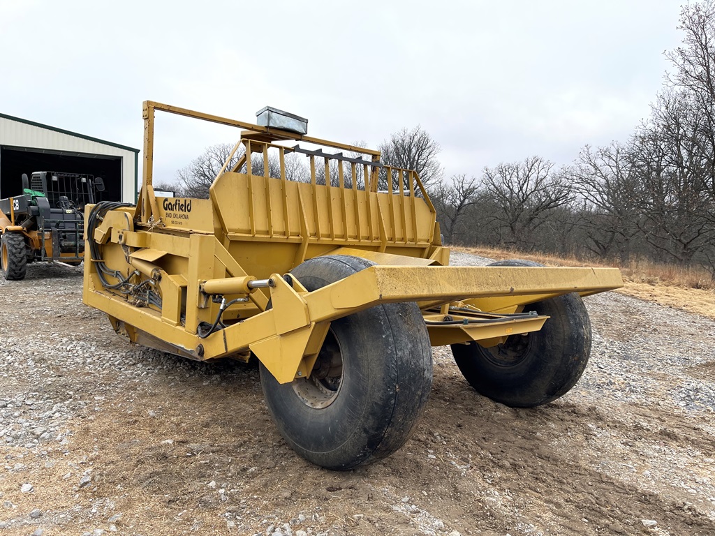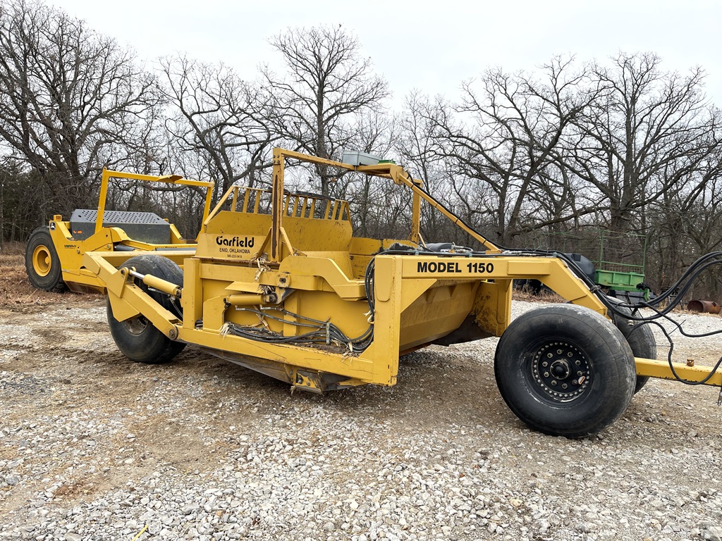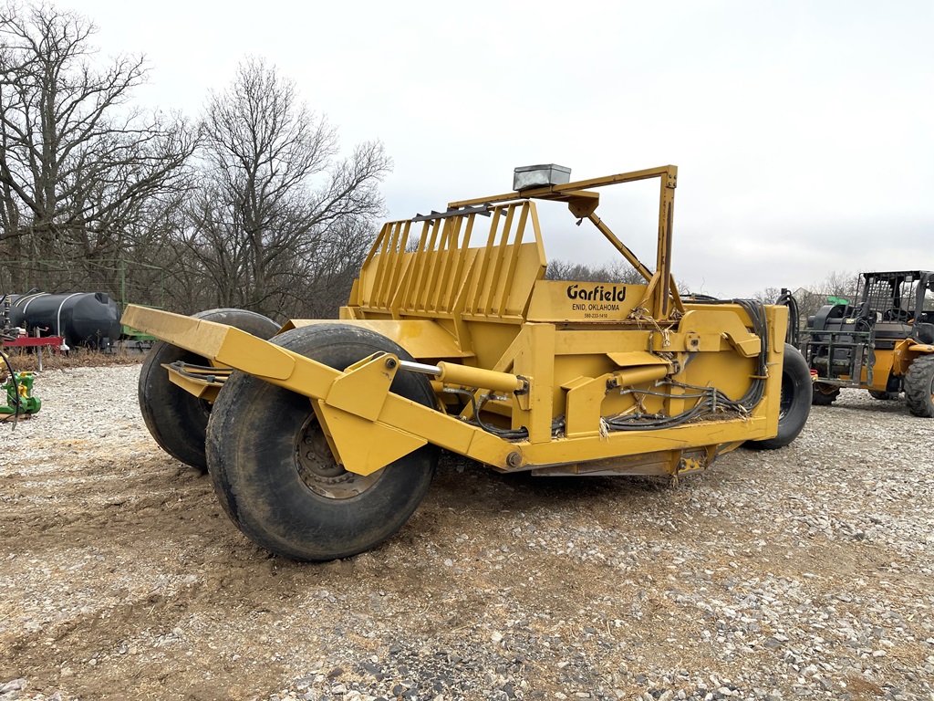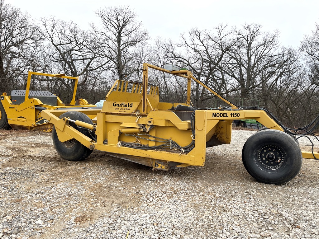 Garfield Model 1150 Pull Type Scraper (NP3385), Garfield Model GCA1150 hydraulic pull type scraper, 46x18.0-20 front flotation tires, 20.00-20 rear flotation tires.