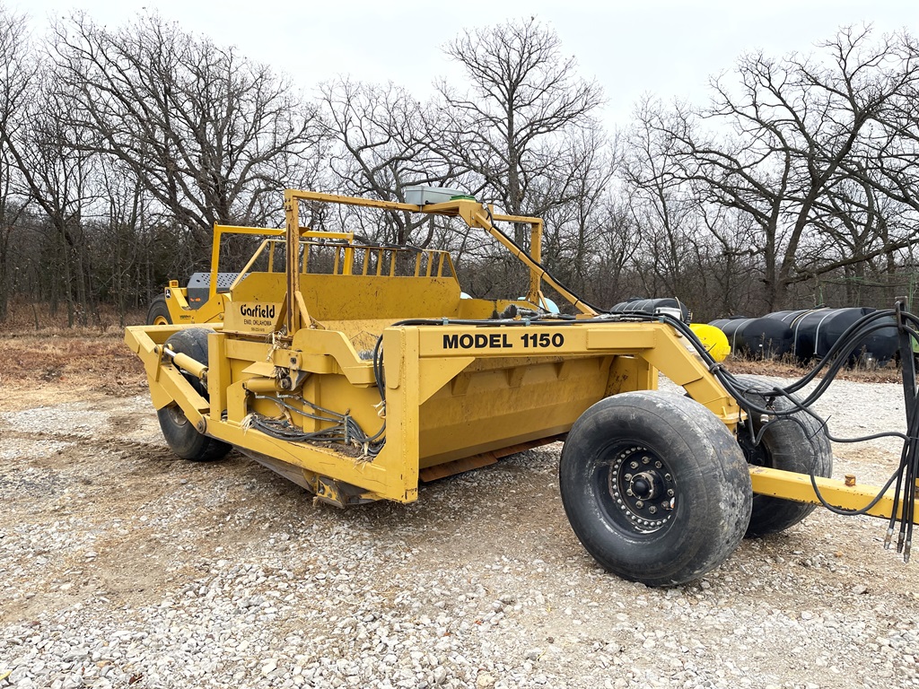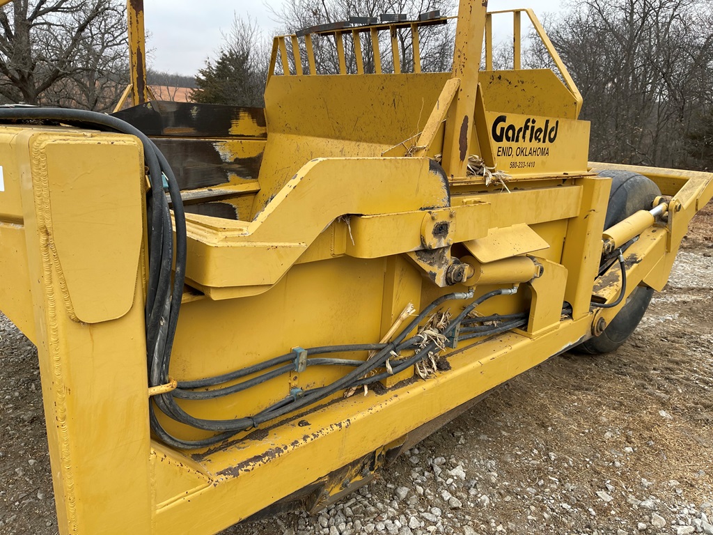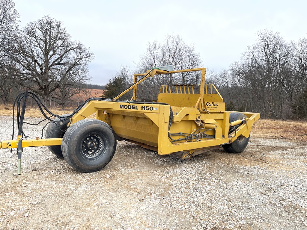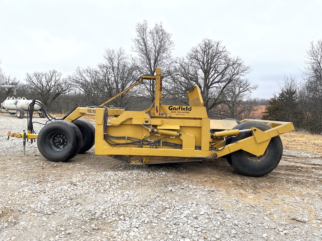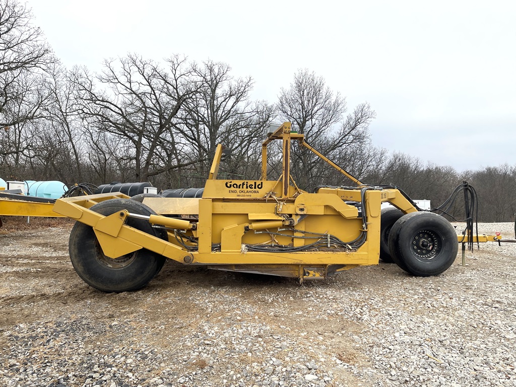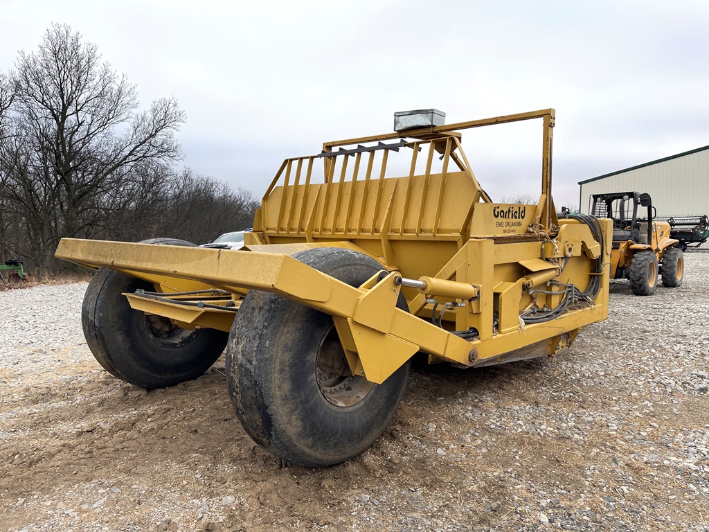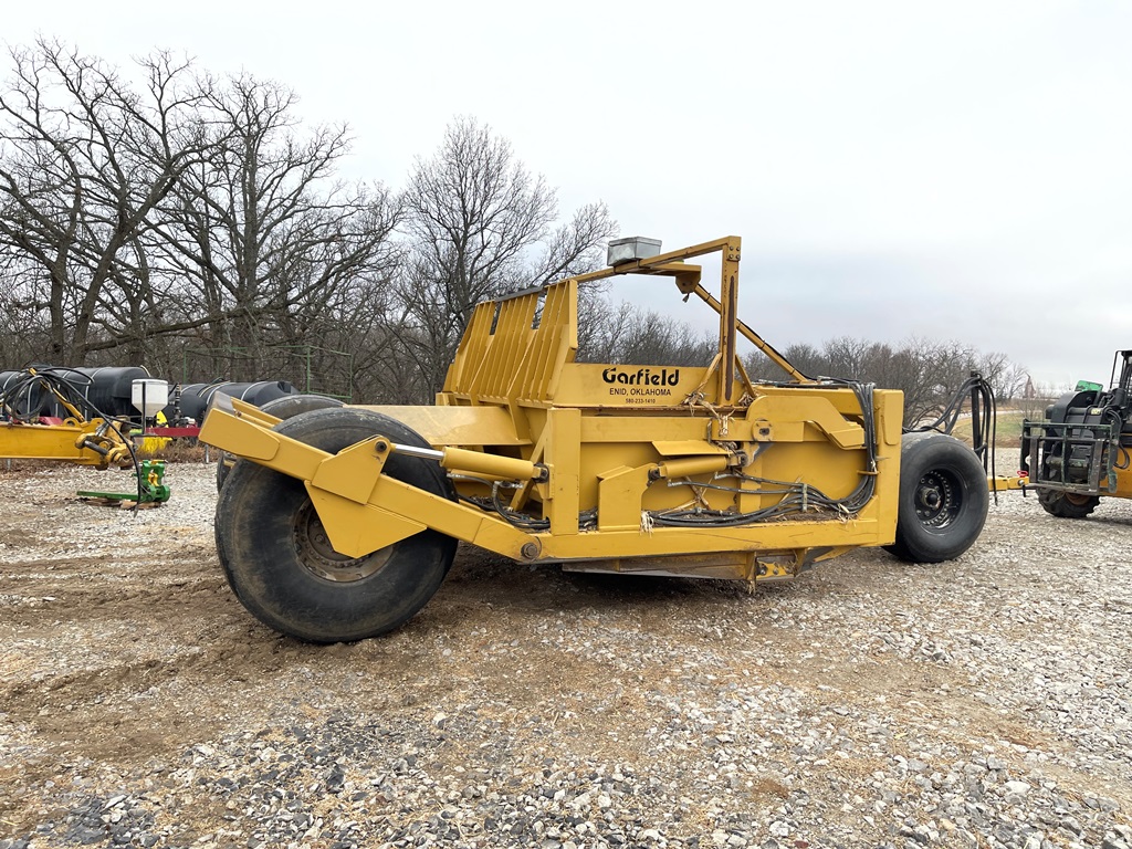 Garfield Model 1150 Pull Type Scraper (NP3385), Garfield Model GCA1150 hydraulic pull type scraper, 46x18.0-20 front flotation tires, 20.00-20 rear flotation tires.