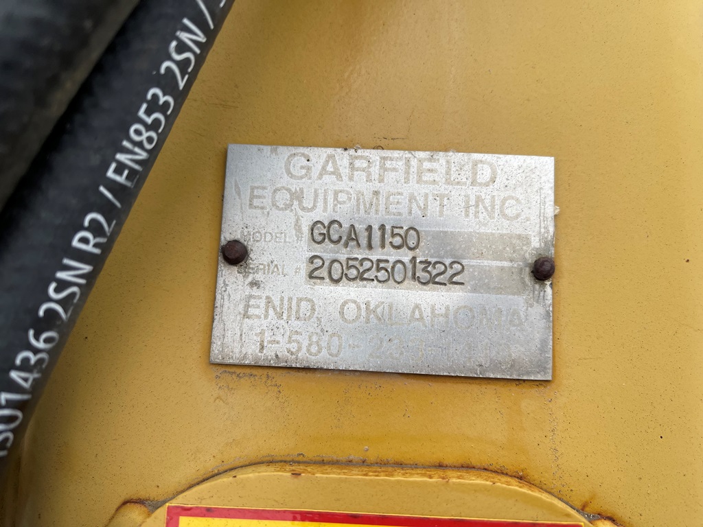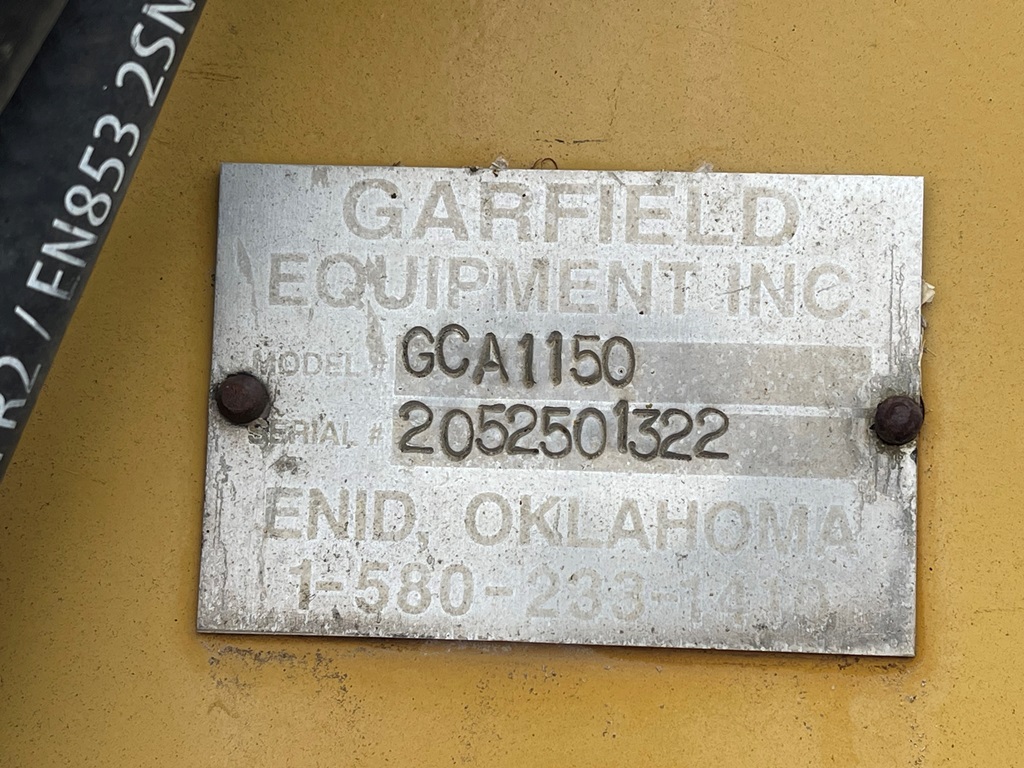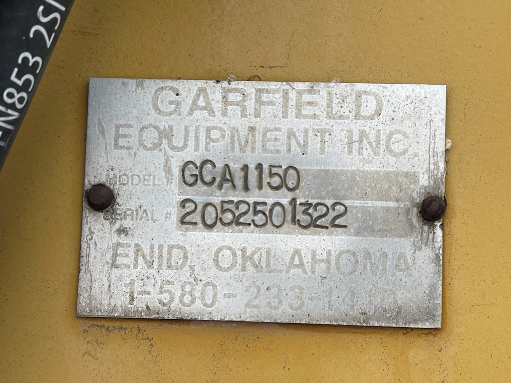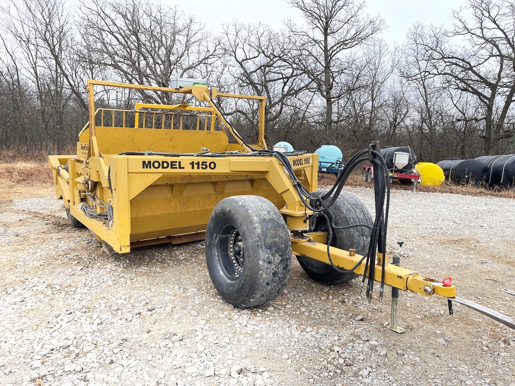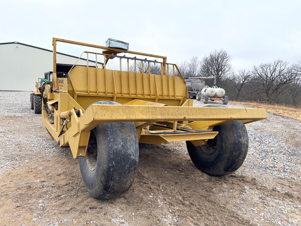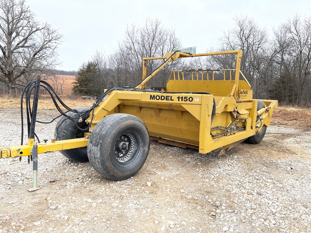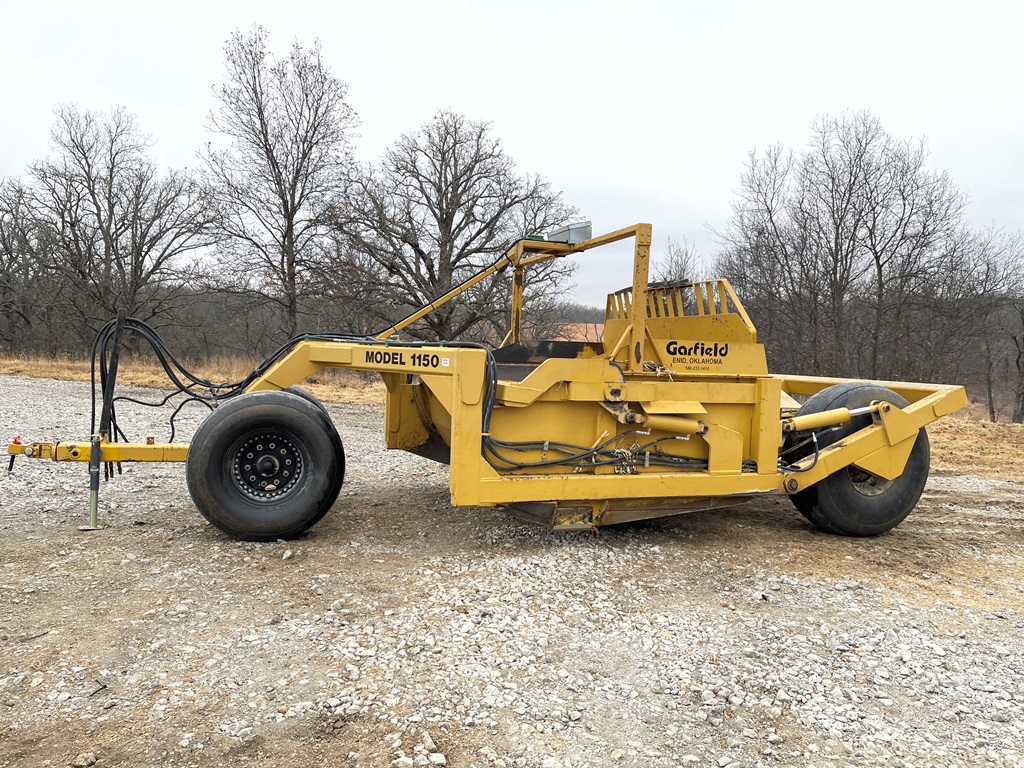 Garfield Model 1150 Pull Type Scraper (NP3385), Garfield Model GCA1150 hydraulic pull type scraper, 46x18.0-20 front flotation tires, 20.00-20 rear flotation tires.