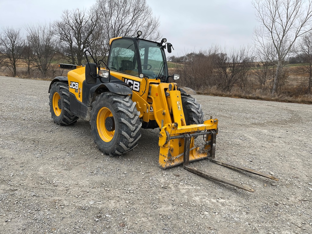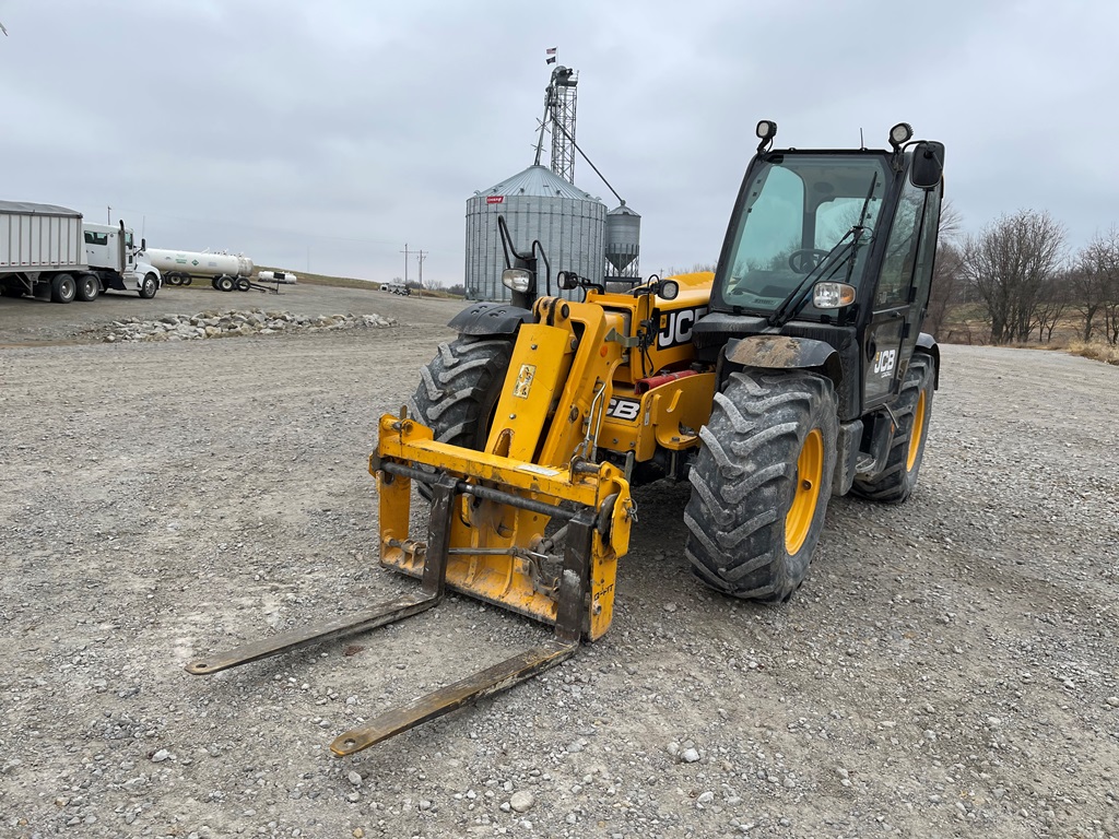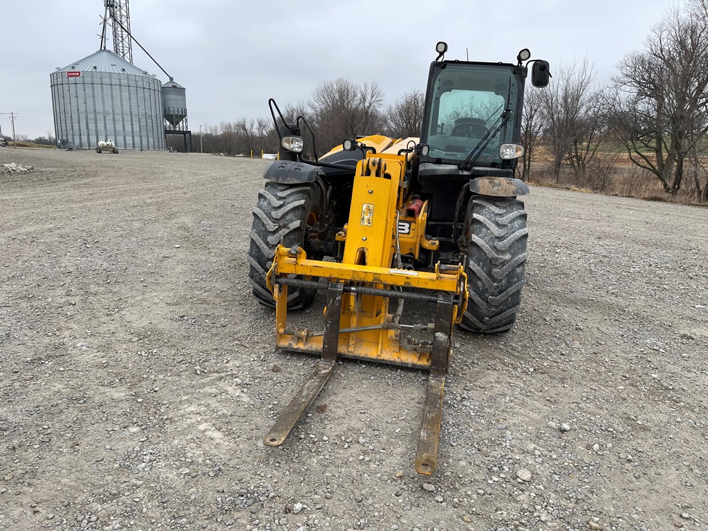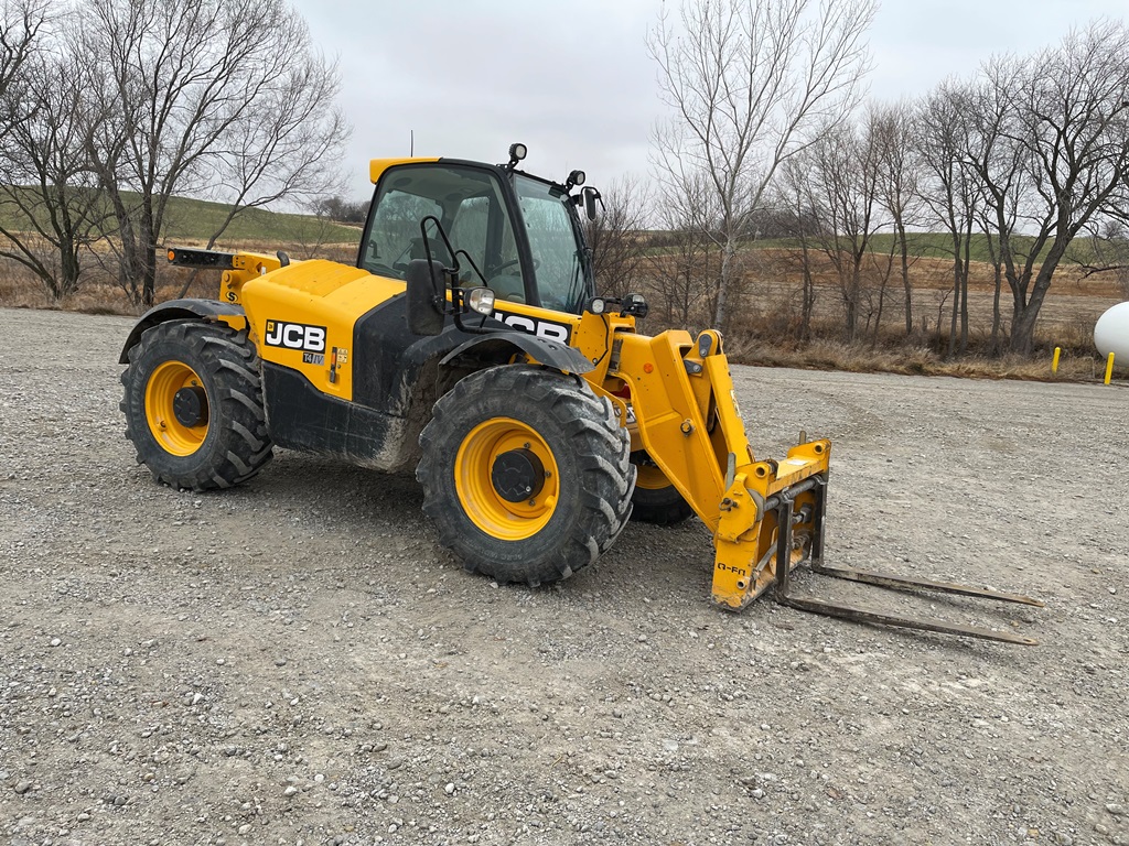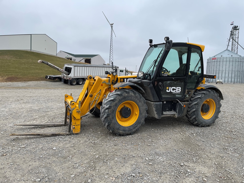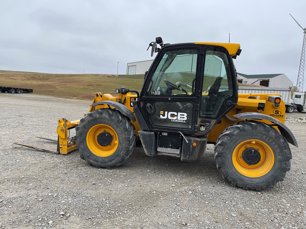 JCB Loadall 536-60 AGRI Telehandler (NP3393), EROPS, 109 HP diesel engine, shuttle shift, joystick control, heat, Am/Fm radio, 7,000 pound rated capacity, 2016 JCB Q-Fit forks, Alliance 460/70R24 tires, front/rear lights, shows 1,995 hours.