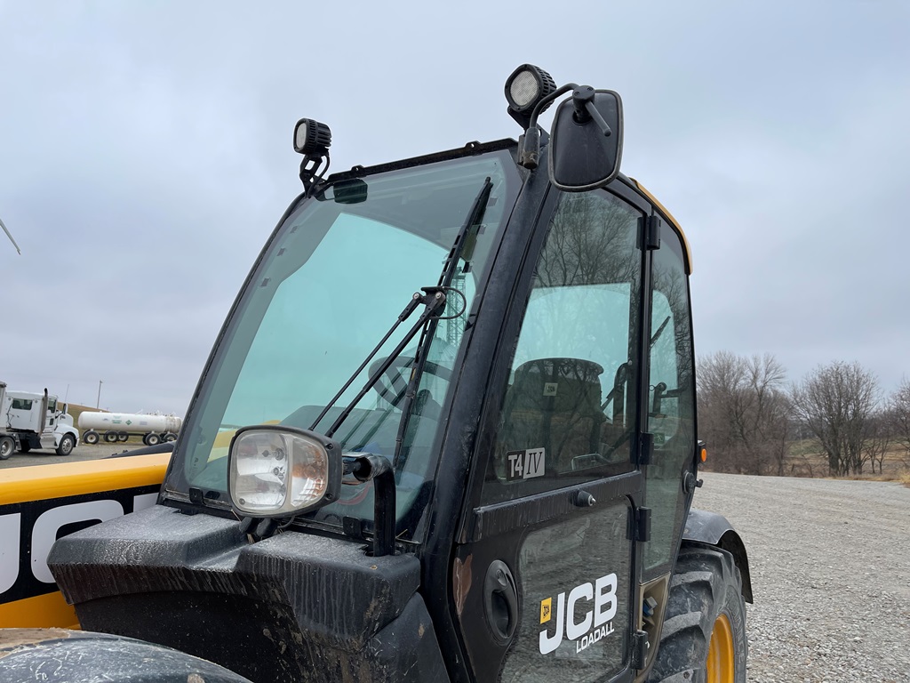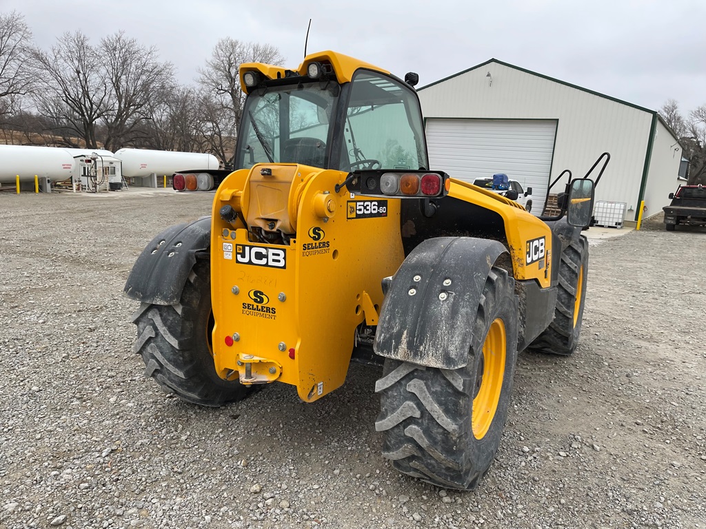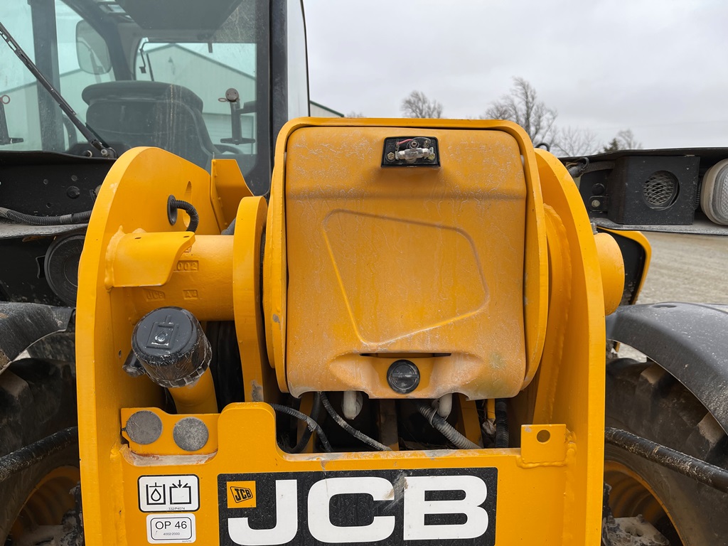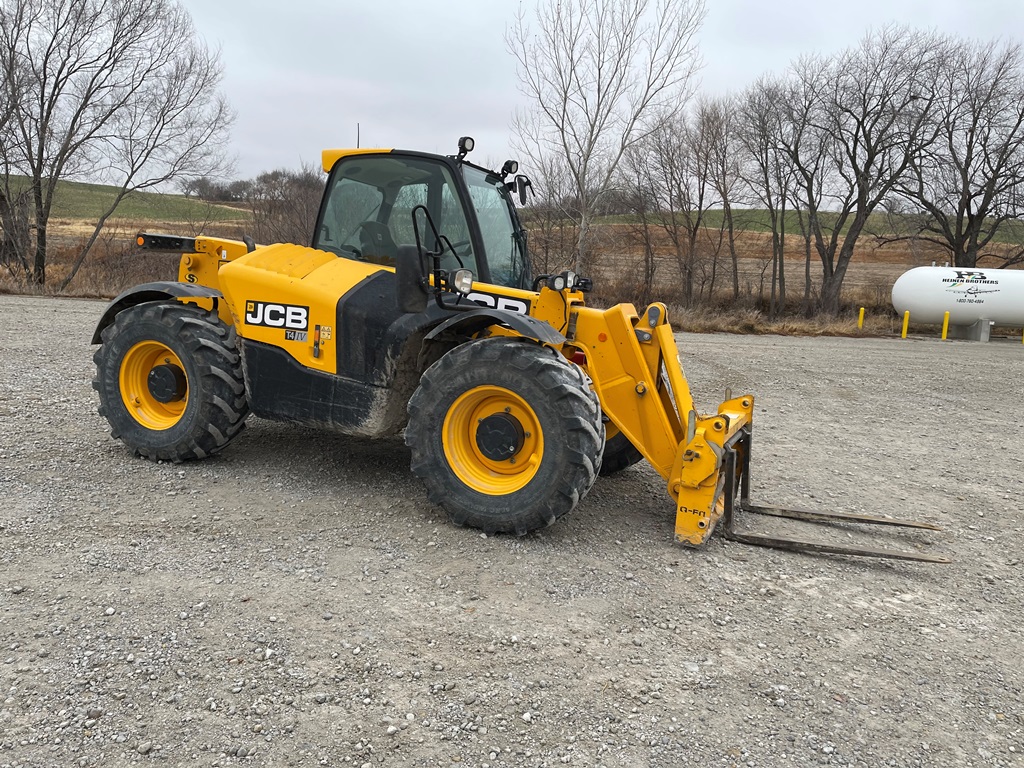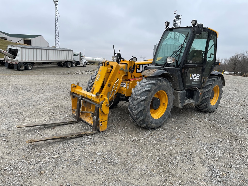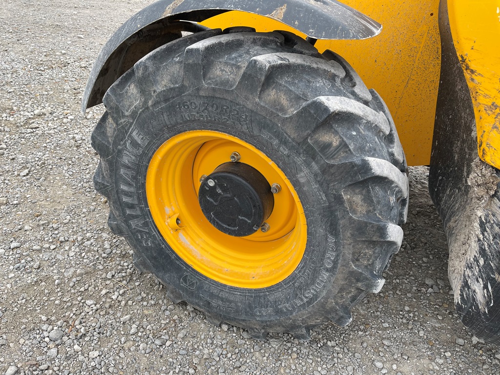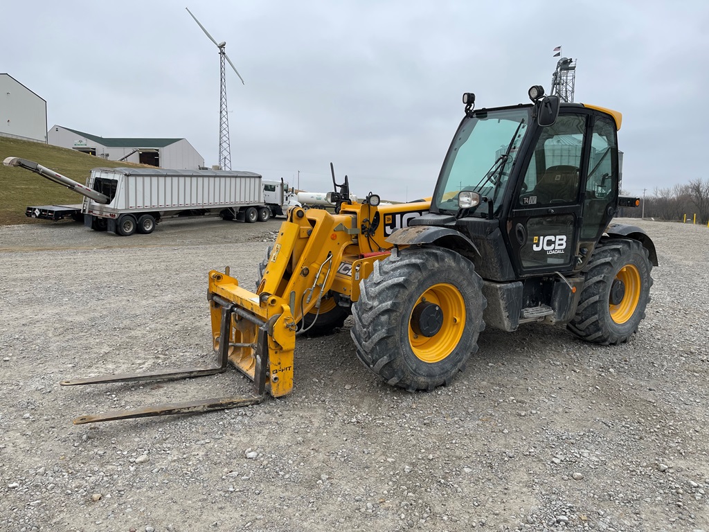 JCB Loadall 536-60 AGRI Telehandler (NP3393), EROPS, 109 HP diesel engine, shuttle shift, joystick control, heat, Am/Fm radio, 7,000 pound rated capacity, 2016 JCB Q-Fit forks, Alliance 460/70R24 tires, front/rear lights, shows 1,995 hours.