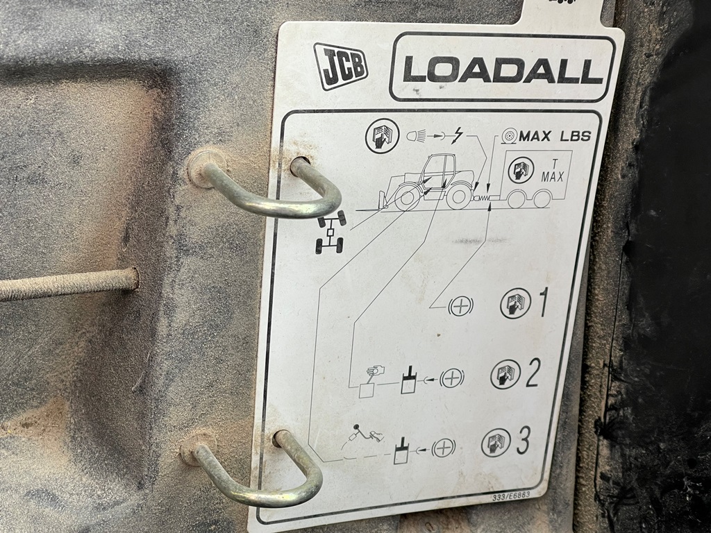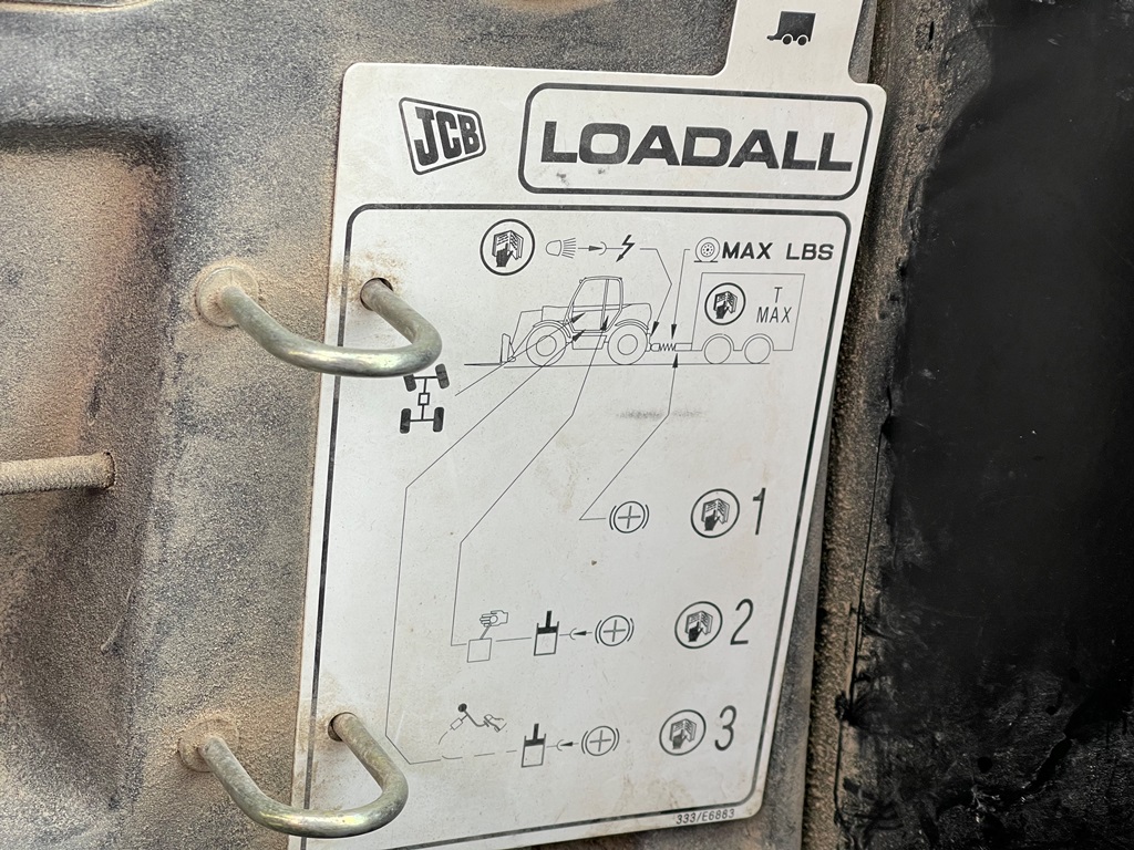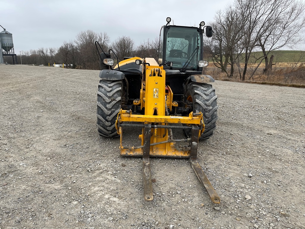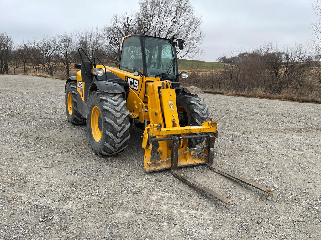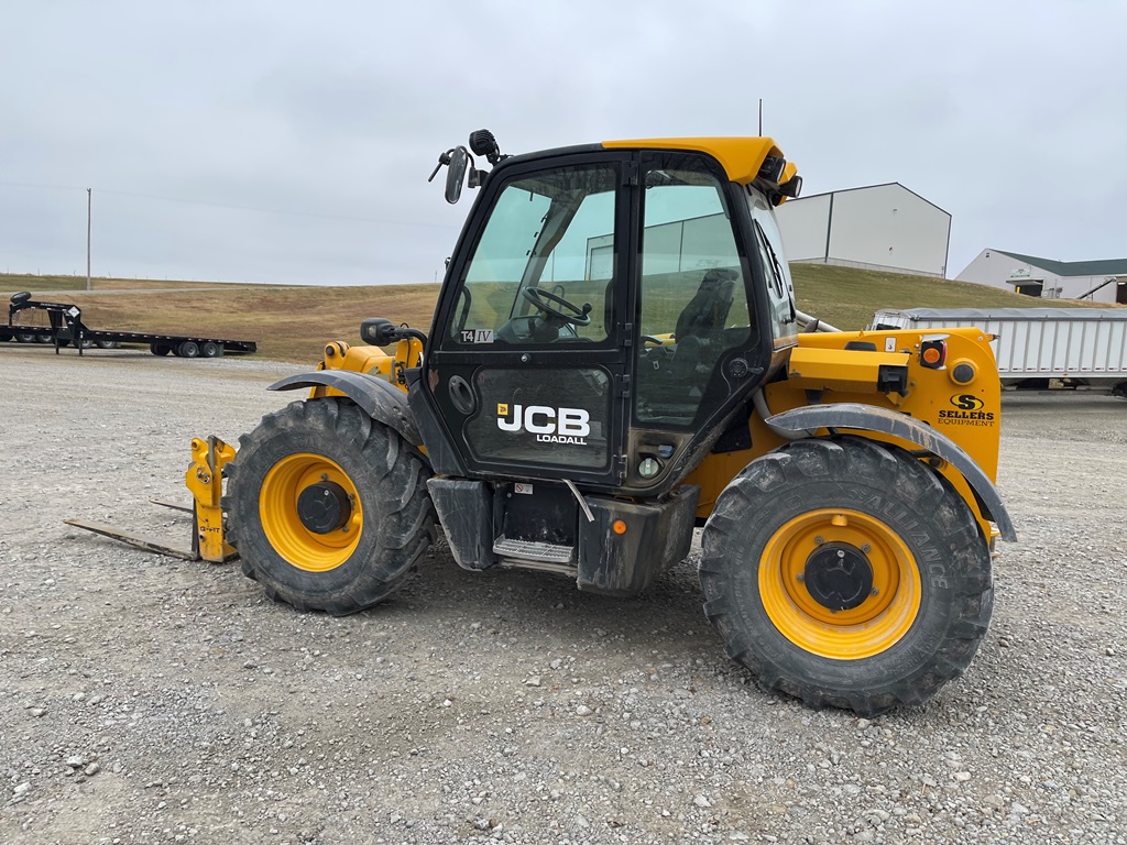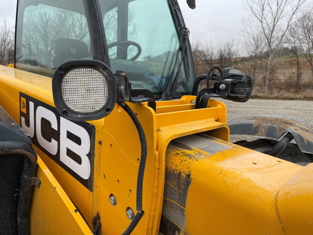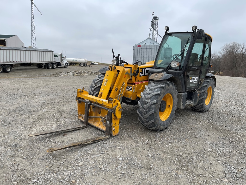 JCB Loadall 536-60 AGRI Telehandler (NP3393), EROPS, 109 HP diesel engine, shuttle shift, joystick control, heat, Am/Fm radio, 7,000 pound rated capacity, 2016 JCB Q-Fit forks, Alliance 460/70R24 tires, front/rear lights, shows 1,995 hours.