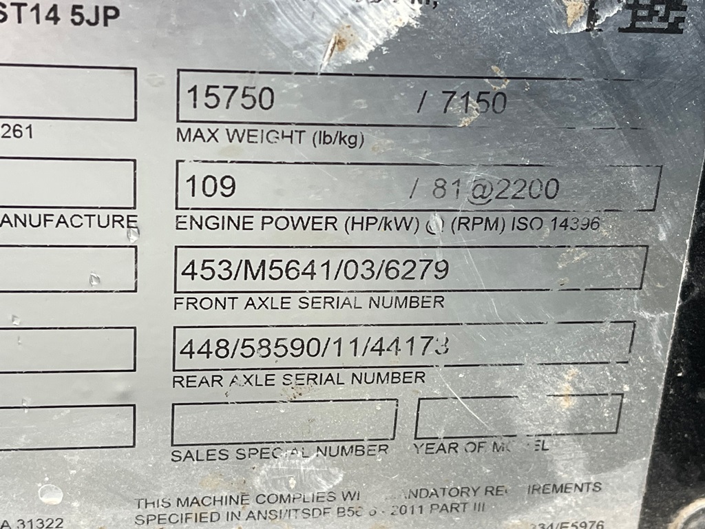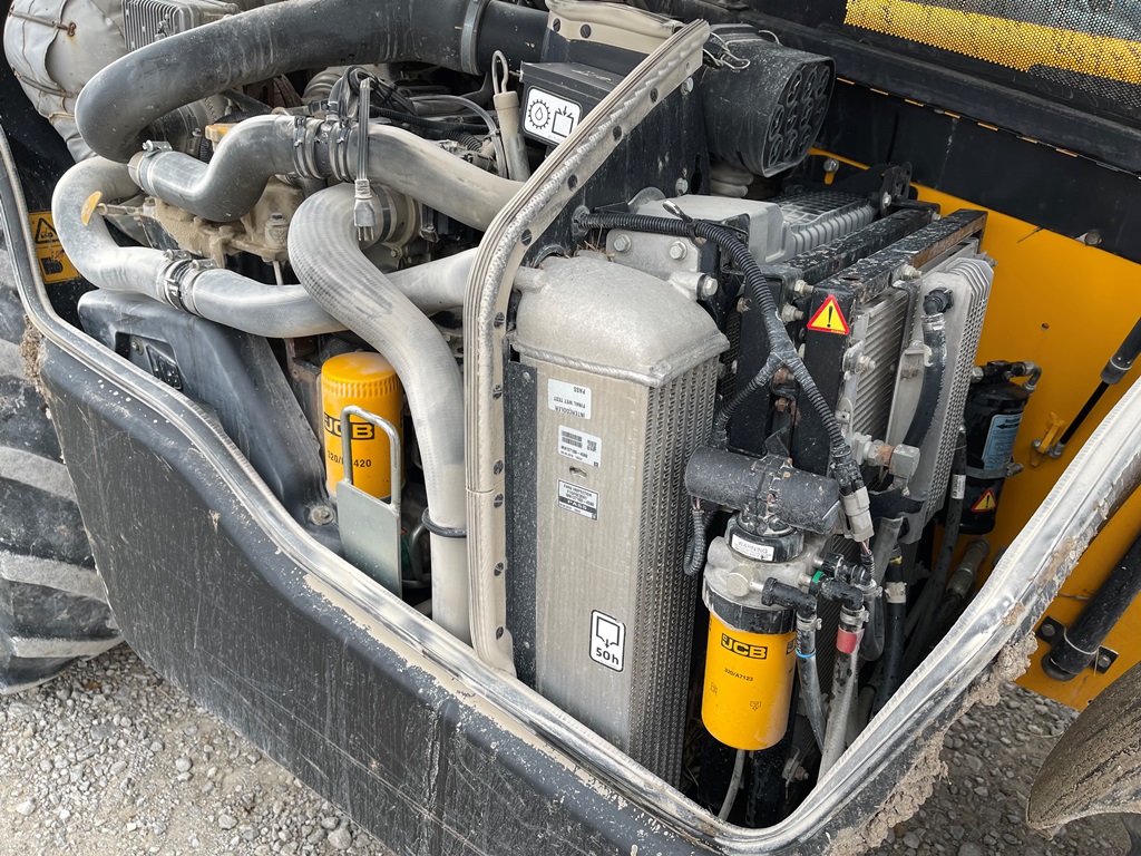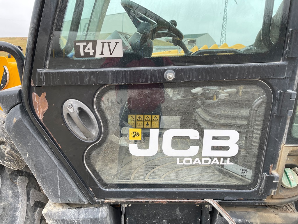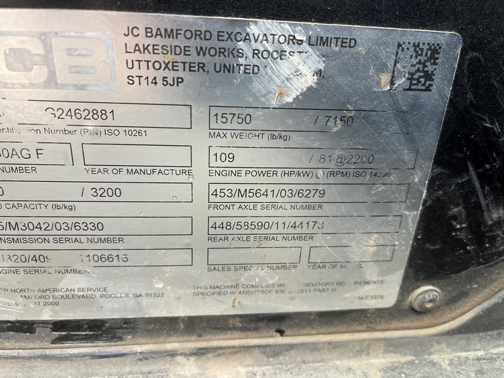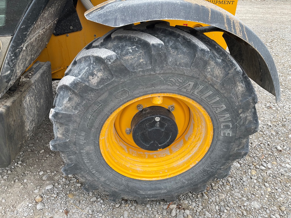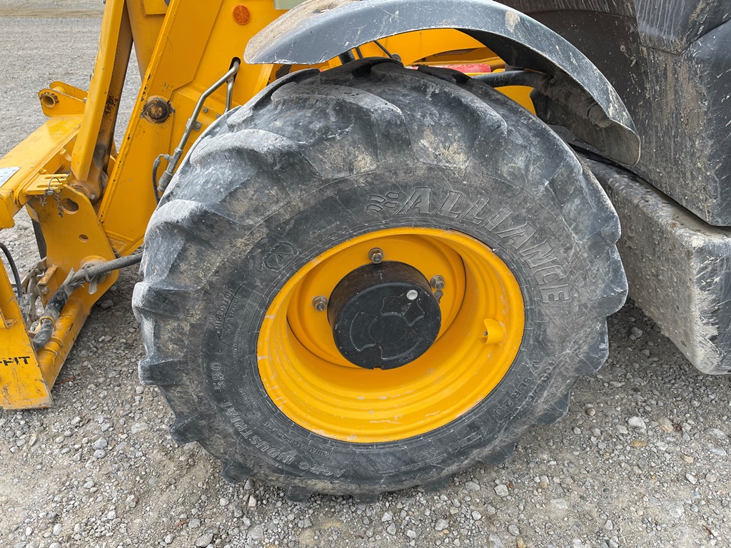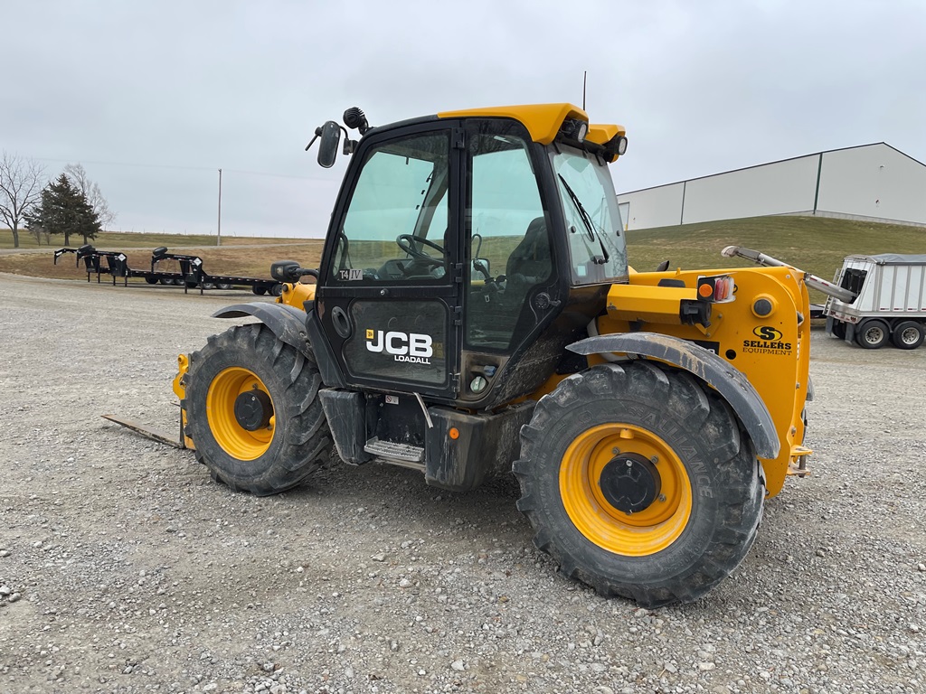 JCB Loadall 536-60 AGRI Telehandler (NP3393), EROPS, 109 HP diesel engine, shuttle shift, joystick control, heat, Am/Fm radio, 7,000 pound rated capacity, 2016 JCB Q-Fit forks, Alliance 460/70R24 tires, front/rear lights, shows 1,995 hours.