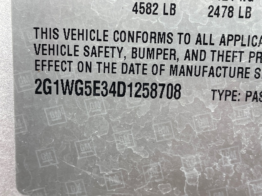 2013 Chevrolet Impala LT Sedan (NP3395), V6 VVT Direct Injection 3.6L gas engine, automatic transmission, heat, air conditioning, Am/Fm radio, 4 door sedan, power windows, locks and mirrors, dual climate control, cruise control, 225/55R17 tires, shows 178,924 miles.