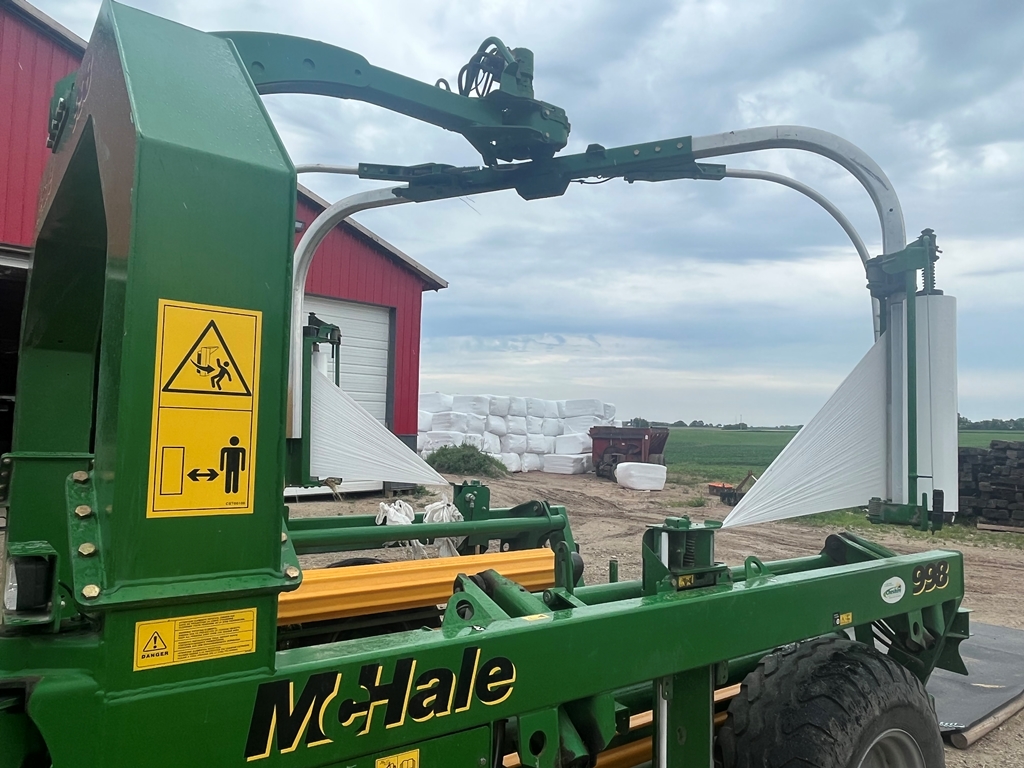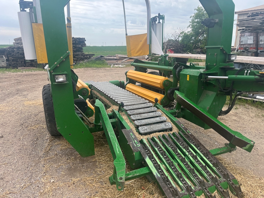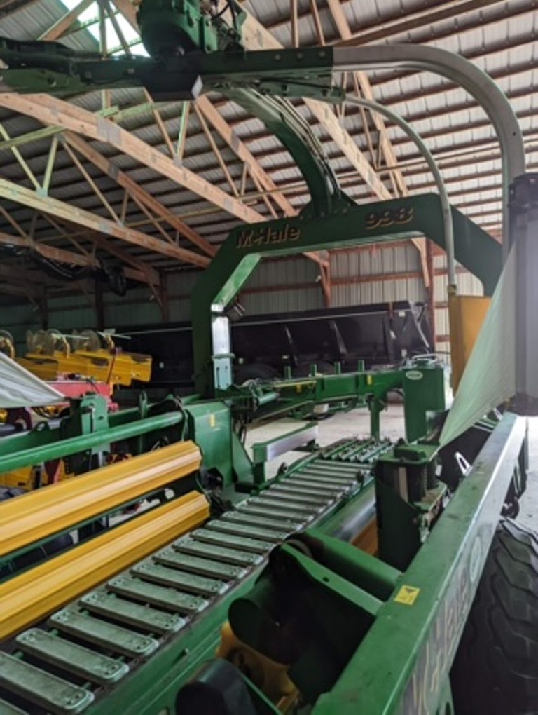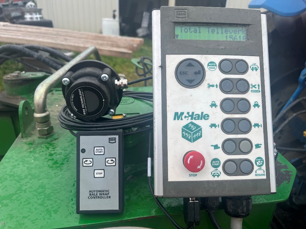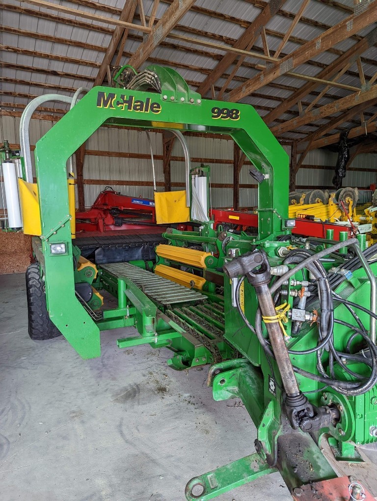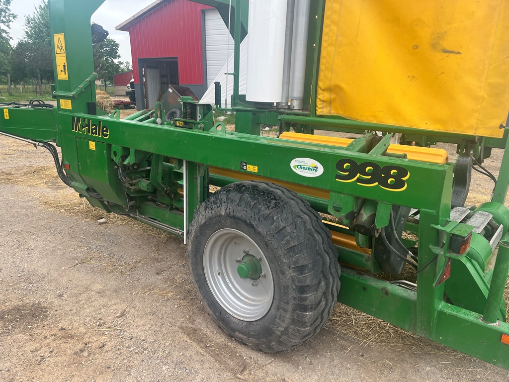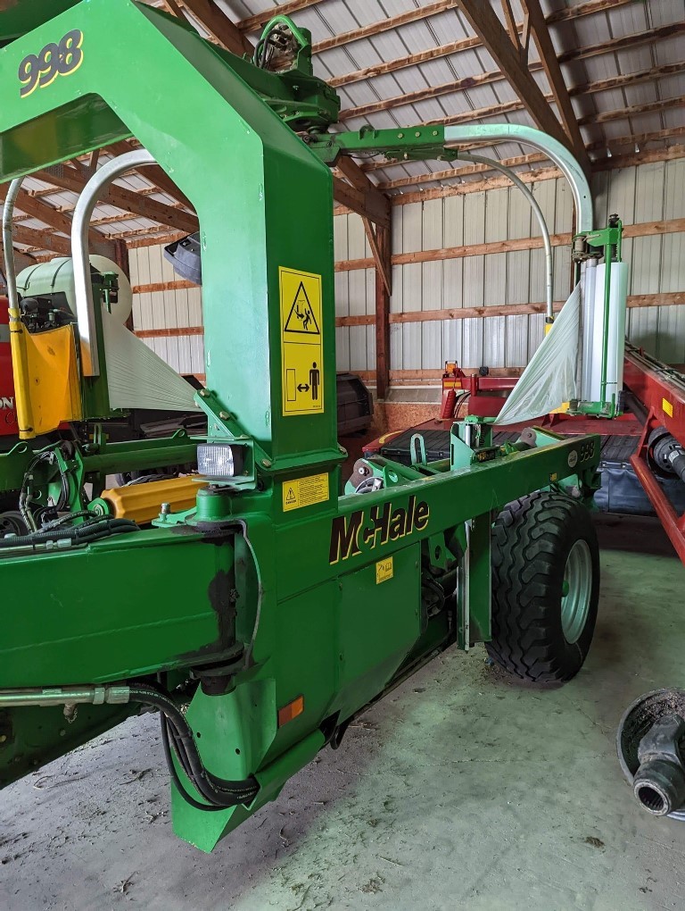 2014 McHale 998 Bale Wrapper (LD1238), can wrap up to a 6.5 foot long bail, good for long bail and good for rounds up to 4x4 large square bales, 540 PTO, 3pt or drawbar hookup, holds 12 rolls of wrap, hydraulic tongue, hydraulic pick up, has brakes, light kit, 15,618 total bales.