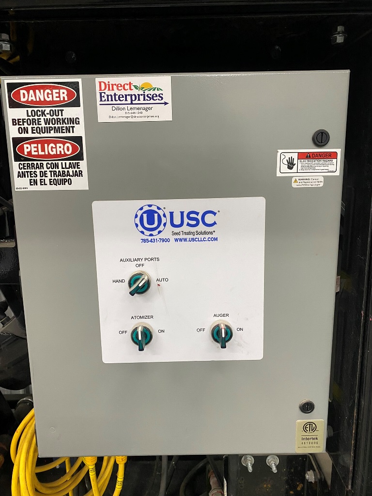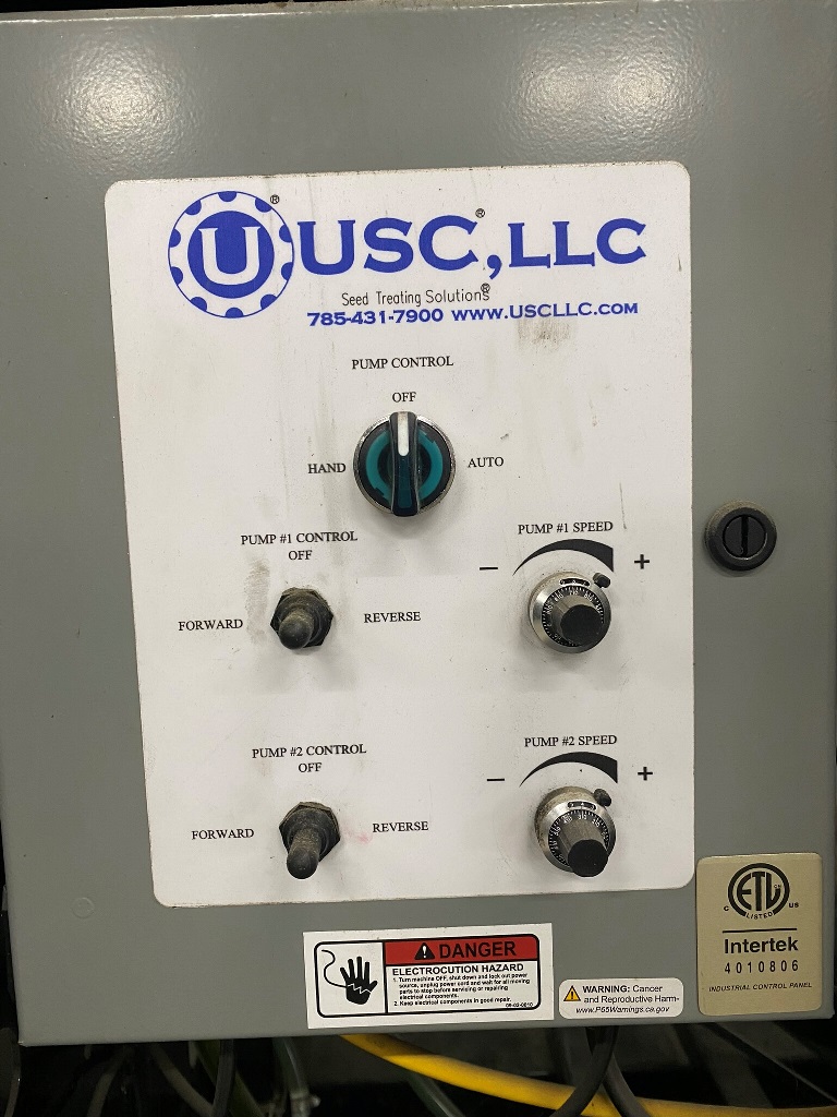 2021 USC AT500H Seed Treater (DL2498), 240 V / 1 PH, manual control, dual pump stand, purchased new January of 2021 for 20,225.00 & only used for two seasons (2000 units), always cleaned daily, stored with cleaner in lines for maximum visibility, always stored inside climate control, portable with forklift slots, ready to load in minutes, great running treater, savings will pay for itself, pro boxes are not included.