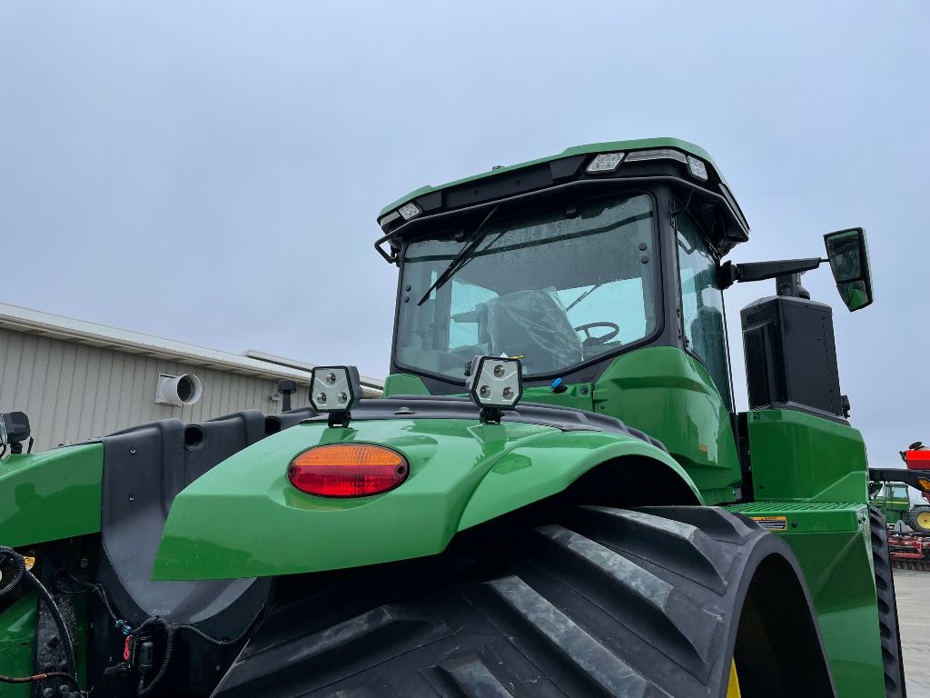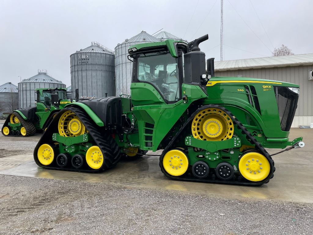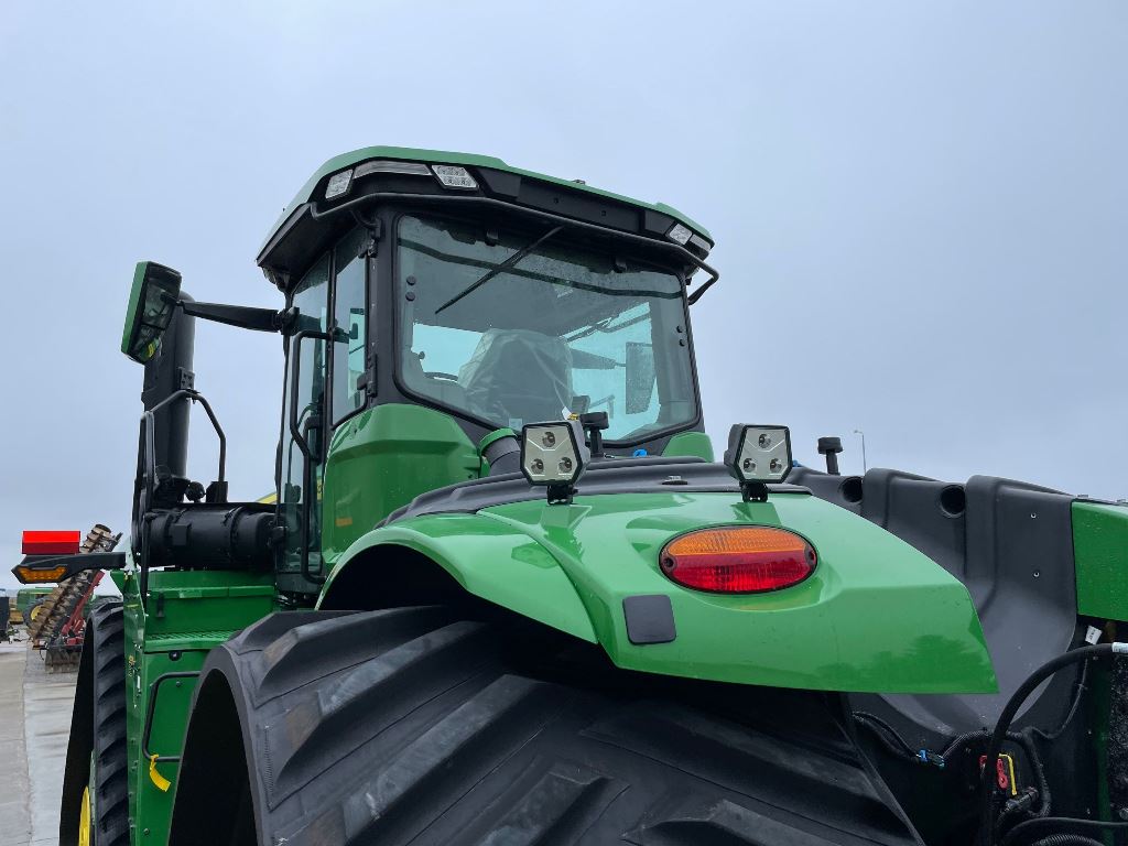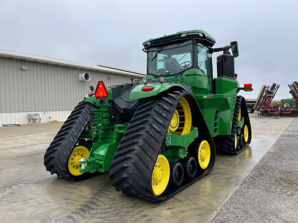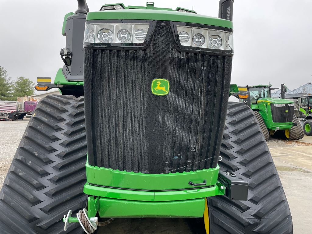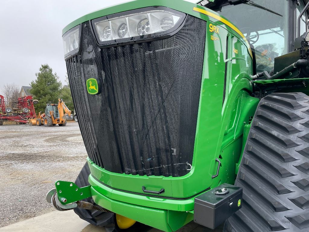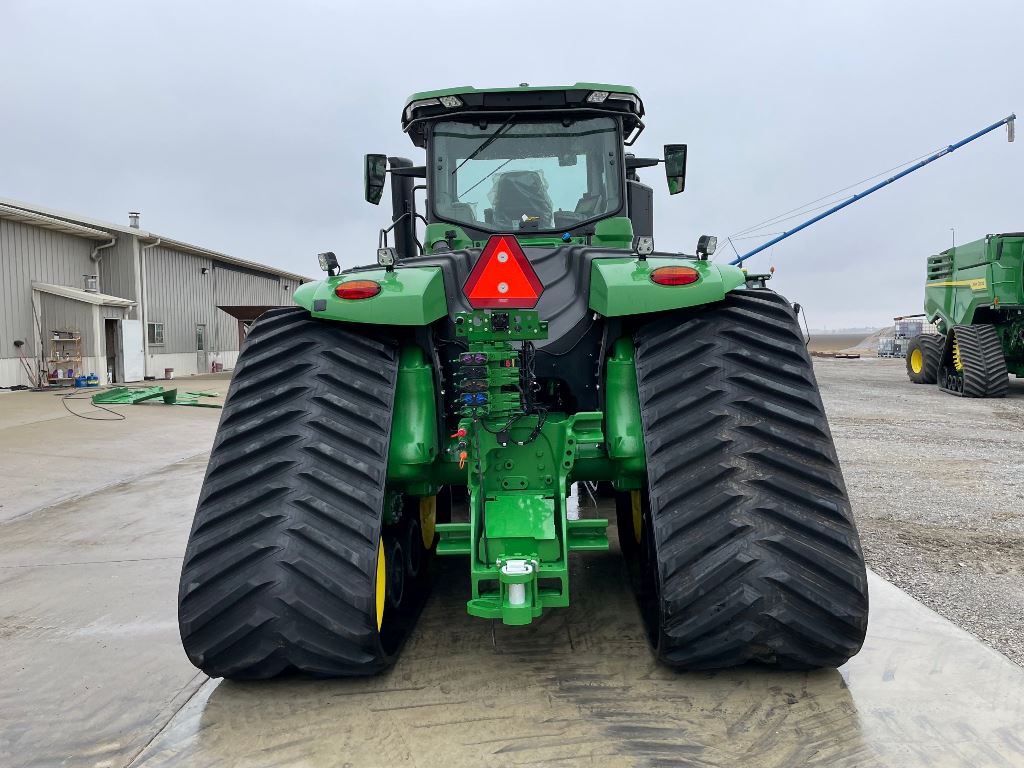 2022 John Deere 9RX 540 Tractor (GP2383), NEVER USED, model 9RX 540, Sydenstricker Nobbe, JD14 13.6L/827 cu in. engine (model TA13702, serial number 9XWPR2204419), 540 HP, John Deere e18 18 speed PowerShift with Efficiency Manager 40km/h 25mph,13.6L FT4/S5 cooling package, no PTO, enclosed cab, adjustable seat, buddy seat, heat and A/C, Generation 4 46000 CommandCenter 10in display, touch screen audio player (AM/FM stereo with weather band, remote controls, auxiliary input jack, four speakers and external antenna), 9 series visibility package (24 LED work lights and 8 LED convenience lights), rear hitch, Full-locking electrohydraulic front and rear axle, Camso 4W-5085 and 5W-0533 rollers, 36 inch wide tracks, 6.2 hours, factory testing hours only, full factory warranty.