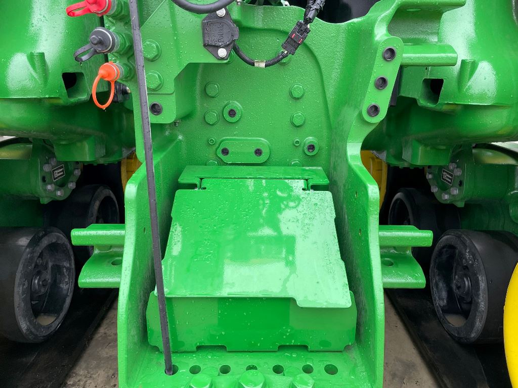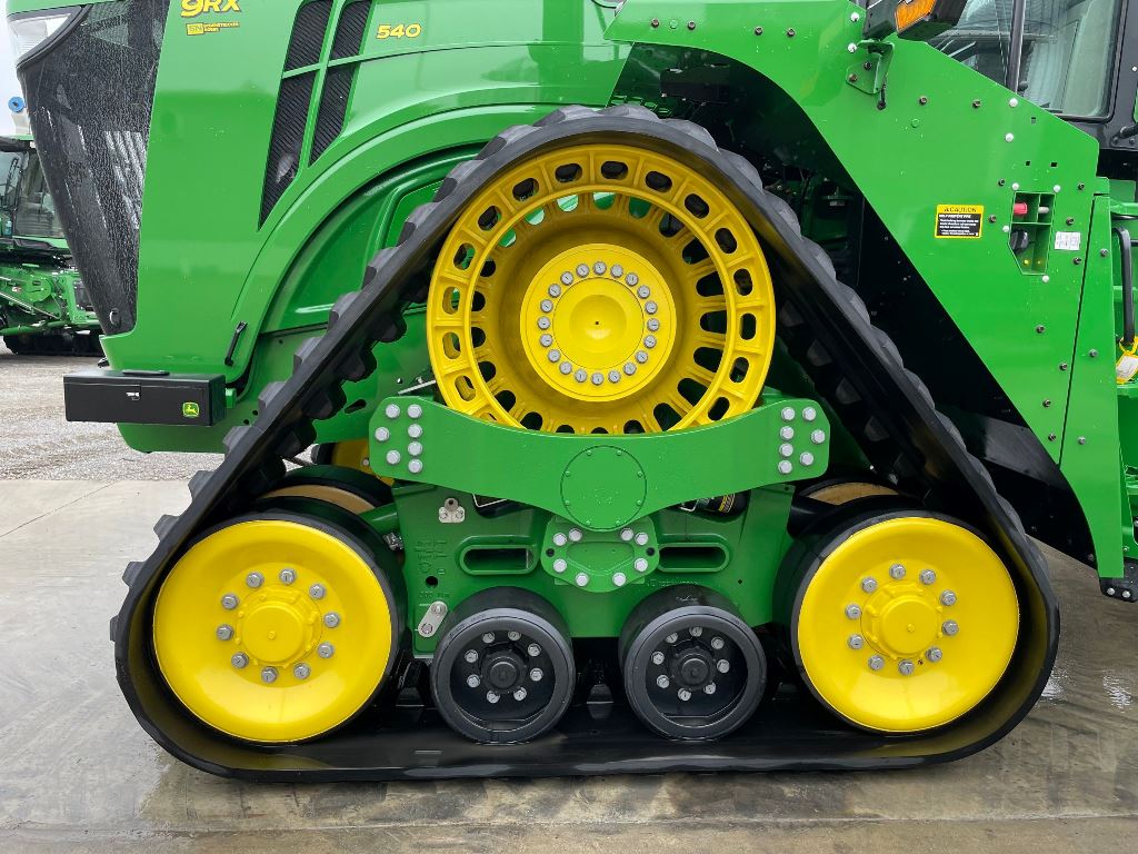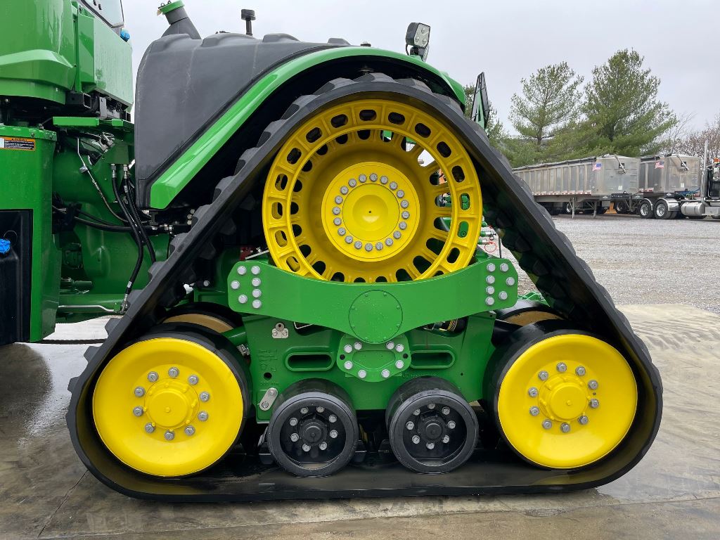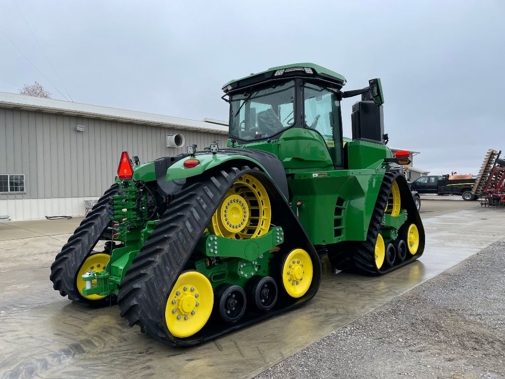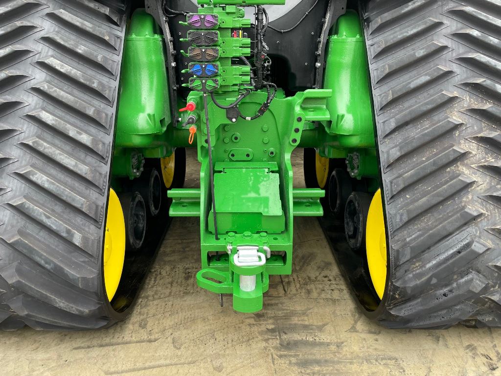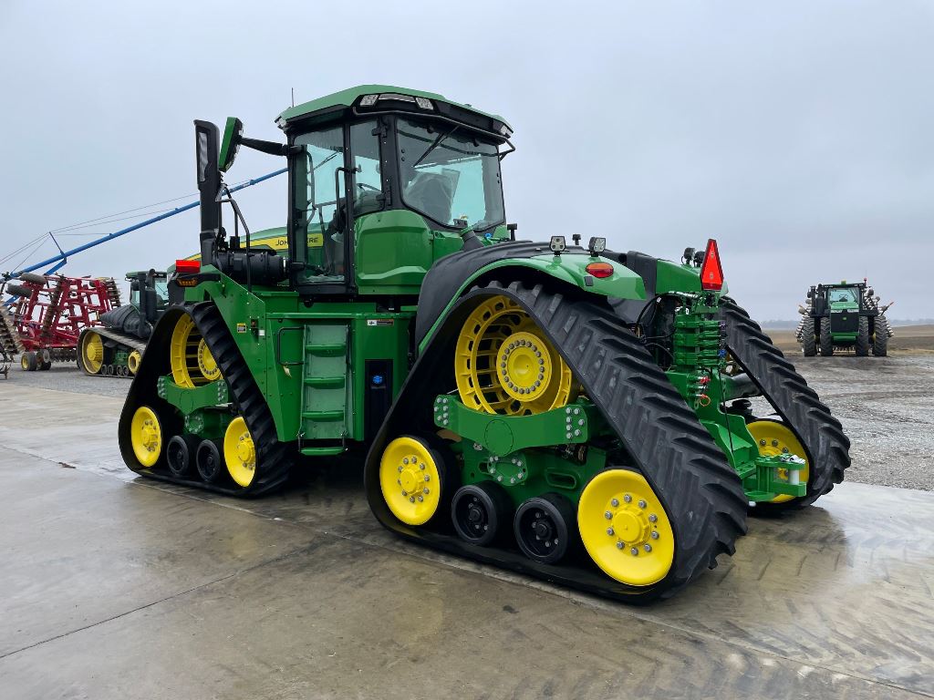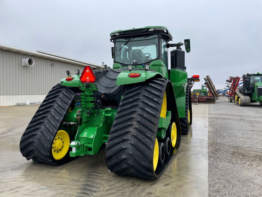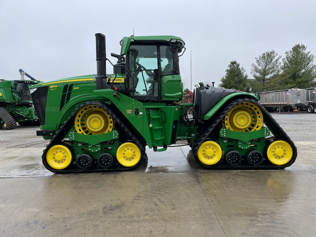 2022 John Deere 9RX 540 Tractor (GP2383), NEVER USED, model 9RX 540, Sydenstricker Nobbe, JD14 13.6L/827 cu in. engine (model TA13702, serial number 9XWPR2204419), 540 HP, John Deere e18 18 speed PowerShift with Efficiency Manager 40km/h 25mph,13.6L FT4/S5 cooling package, no PTO, enclosed cab, adjustable seat, buddy seat, heat and A/C, Generation 4 46000 CommandCenter 10in display, touch screen audio player (AM/FM stereo with weather band, remote controls, auxiliary input jack, four speakers and external antenna), 9 series visibility package (24 LED work lights and 8 LED convenience lights), rear hitch, Full-locking electrohydraulic front and rear axle, Camso 4W-5085 and 5W-0533 rollers, 36 inch wide tracks, 6.2 hours, factory testing hours only, full factory warranty.
