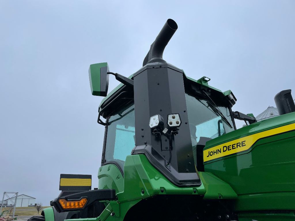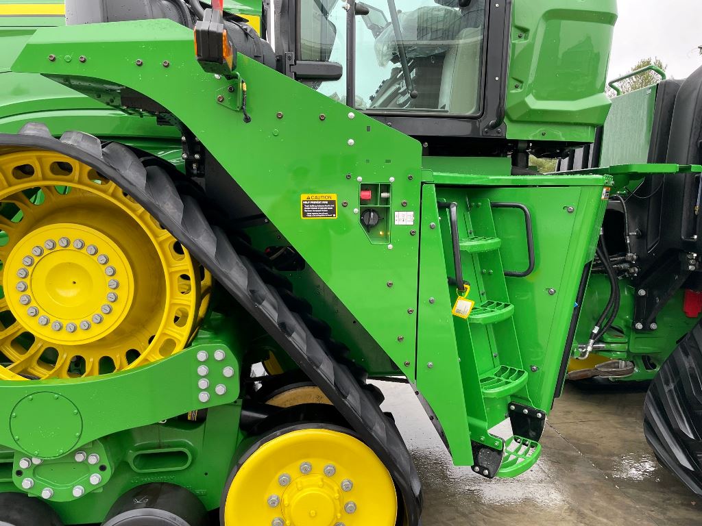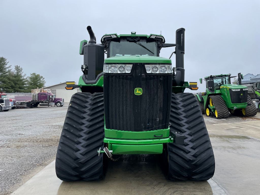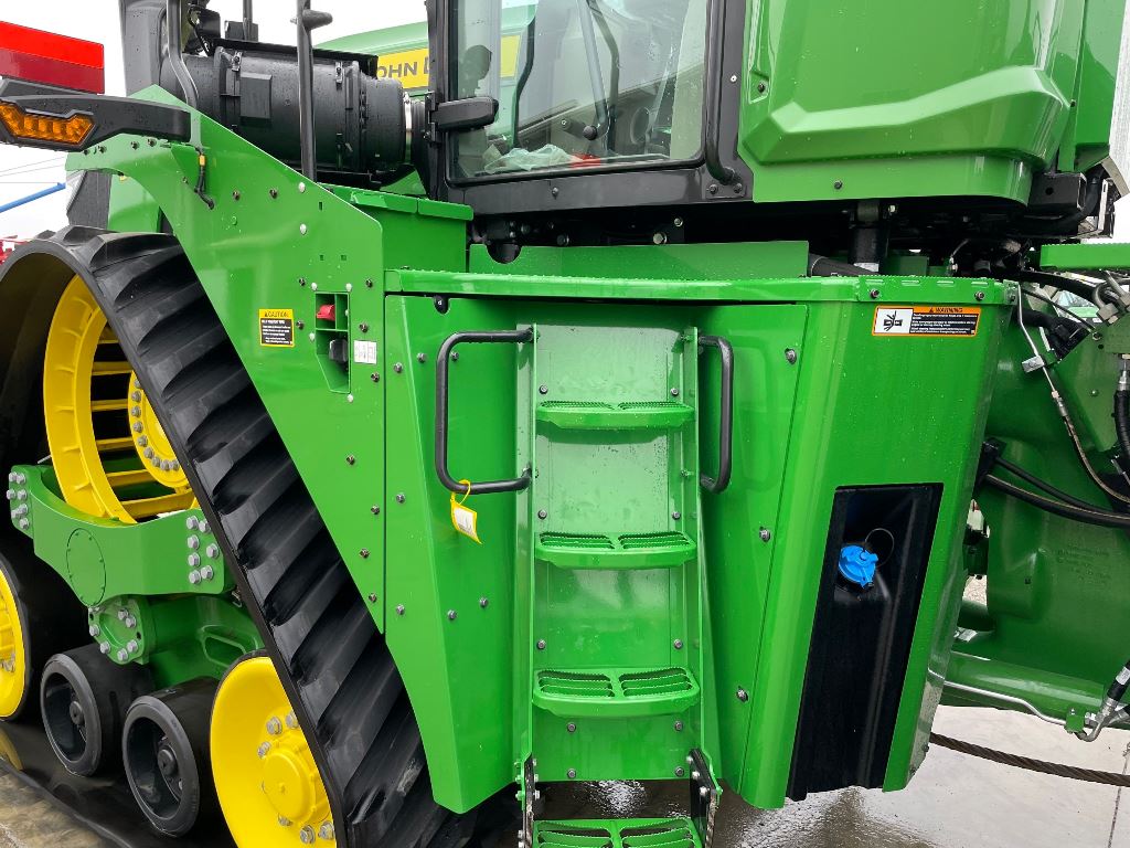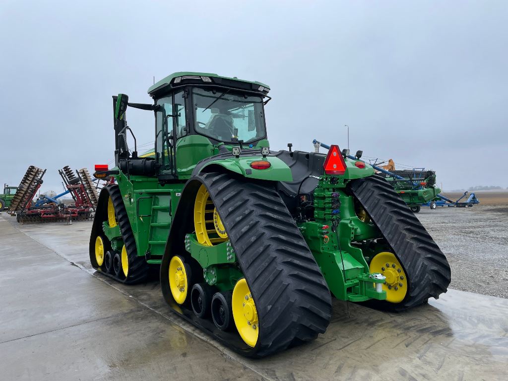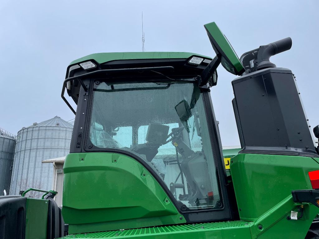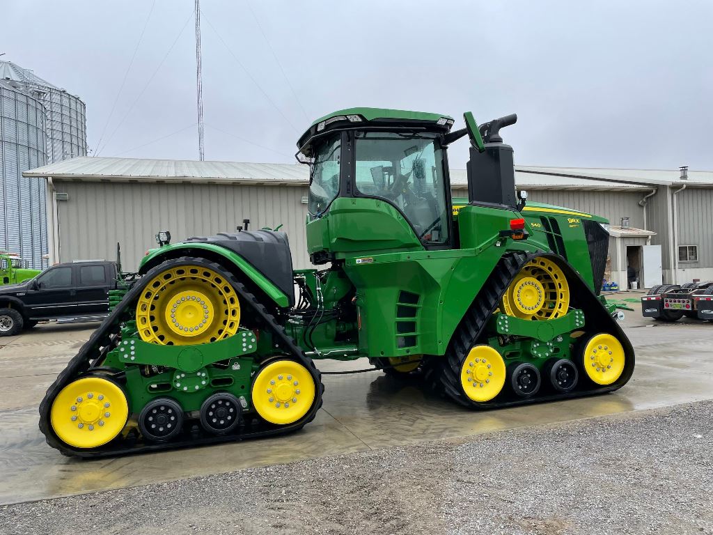 2022 John Deere 9RX 540 Tractor (GP2383), NEVER USED, model 9RX 540, Sydenstricker Nobbe, JD14 13.6L/827 cu in. engine (model TA13702, serial number 9XWPR2204419), 540 HP, John Deere e18 18 speed PowerShift with Efficiency Manager 40km/h 25mph,13.6L FT4/S5 cooling package, no PTO, enclosed cab, adjustable seat, buddy seat, heat and A/C, Generation 4 46000 CommandCenter 10in display, touch screen audio player (AM/FM stereo with weather band, remote controls, auxiliary input jack, four speakers and external antenna), 9 series visibility package (24 LED work lights and 8 LED convenience lights), rear hitch, Full-locking electrohydraulic front and rear axle, Camso 4W-5085 and 5W-0533 rollers, 36 inch wide tracks, 6.2 hours, factory testing hours only, full factory warranty.