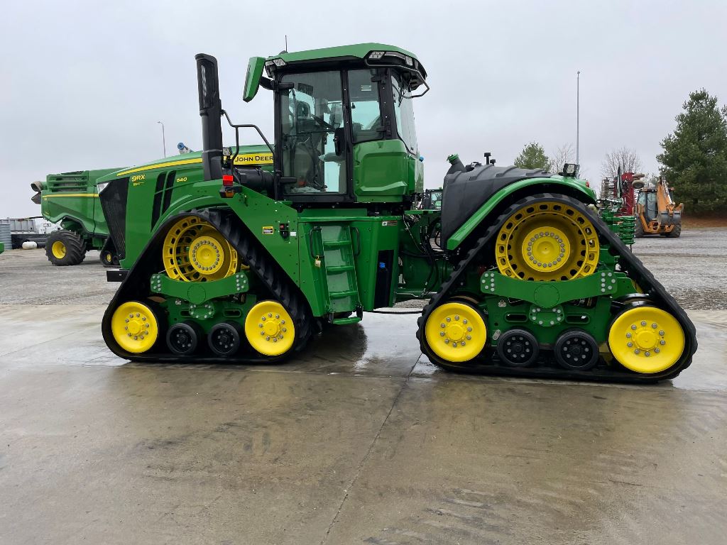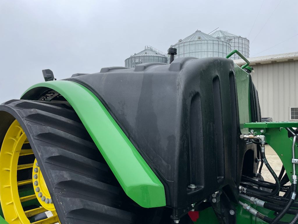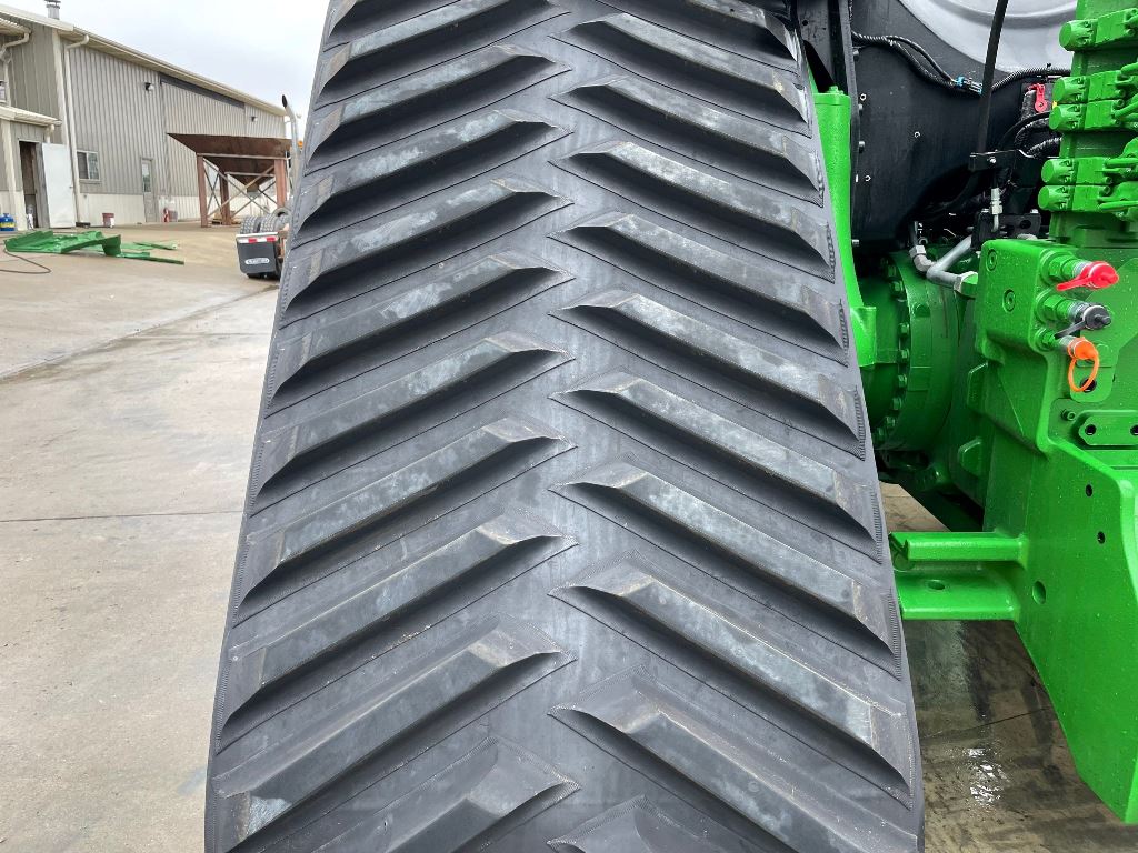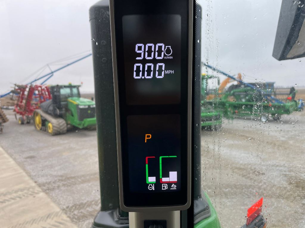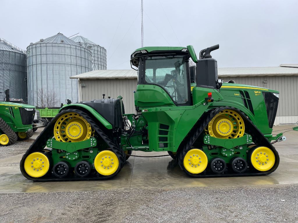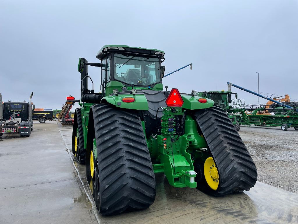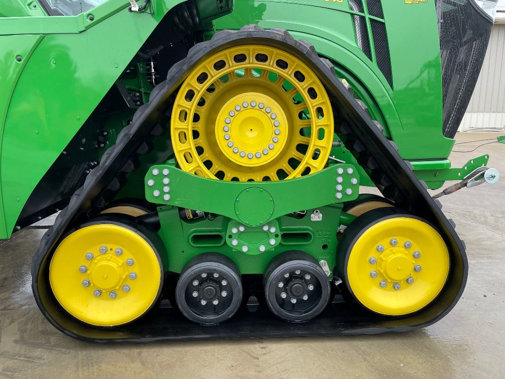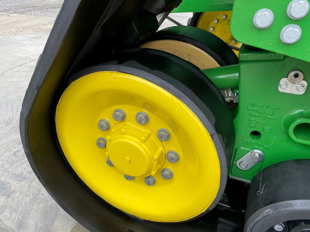 2022 John Deere 9RX 540 Tractor (GP2383), NEVER USED, model 9RX 540, Sydenstricker Nobbe, JD14 13.6L/827 cu in. engine (model TA13702, serial number 9XWPR2204419), 540 HP, John Deere e18 18 speed PowerShift with Efficiency Manager 40km/h 25mph,13.6L FT4/S5 cooling package, no PTO, enclosed cab, adjustable seat, buddy seat, heat and A/C, Generation 4 46000 CommandCenter 10in display, touch screen audio player (AM/FM stereo with weather band, remote controls, auxiliary input jack, four speakers and external antenna), 9 series visibility package (24 LED work lights and 8 LED convenience lights), rear hitch, Full-locking electrohydraulic front and rear axle, Camso 4W-5085 and 5W-0533 rollers, 36 inch wide tracks, 6.2 hours, factory testing hours only, full factory warranty.