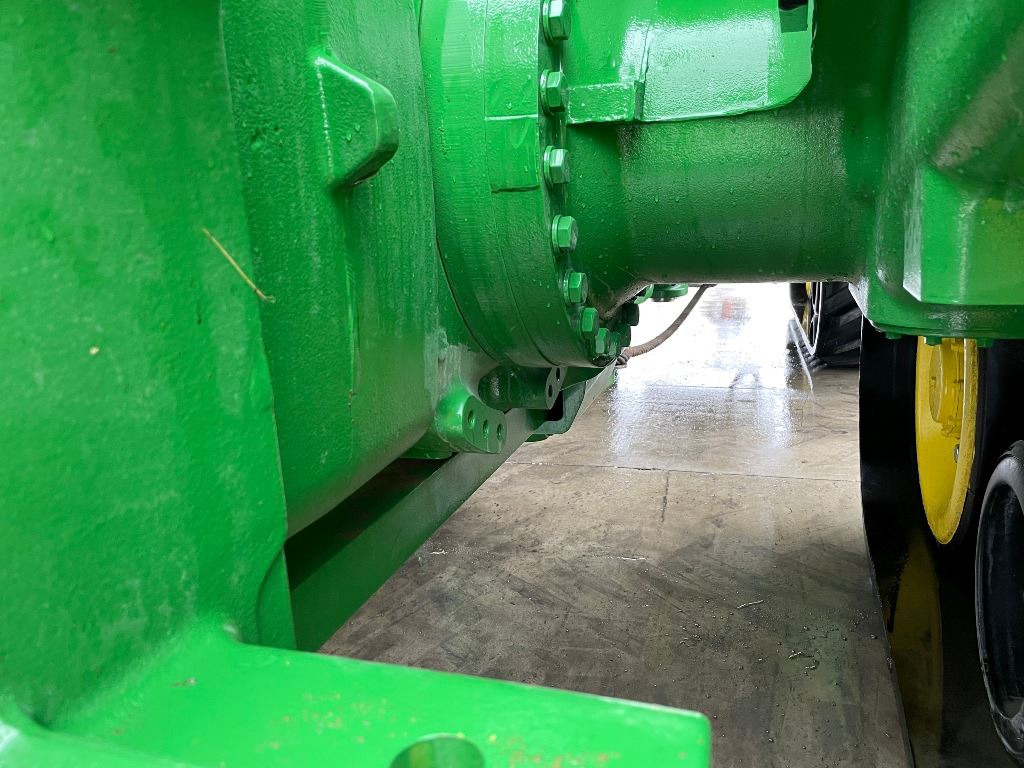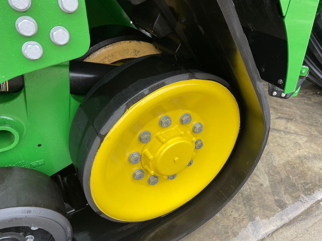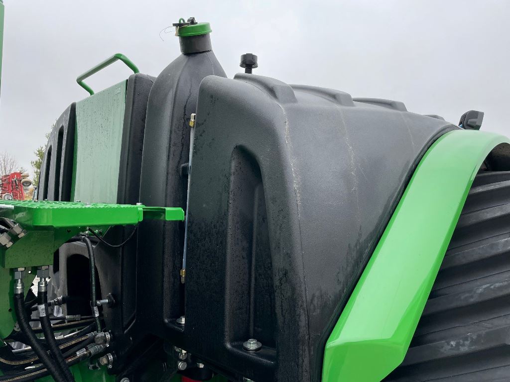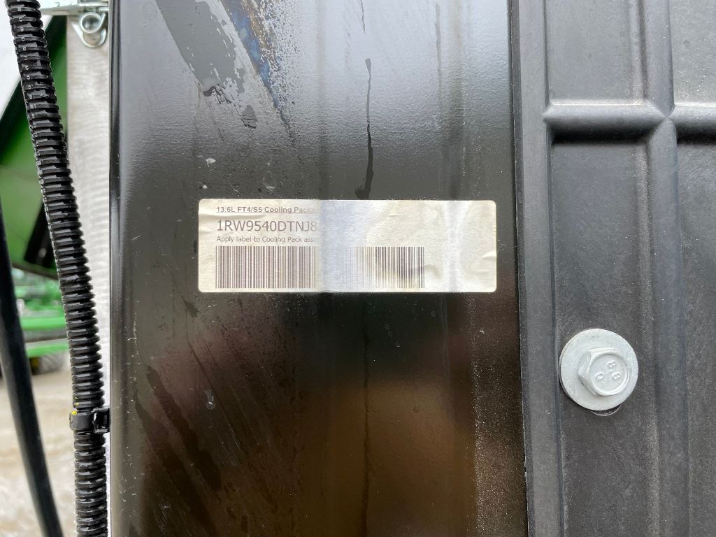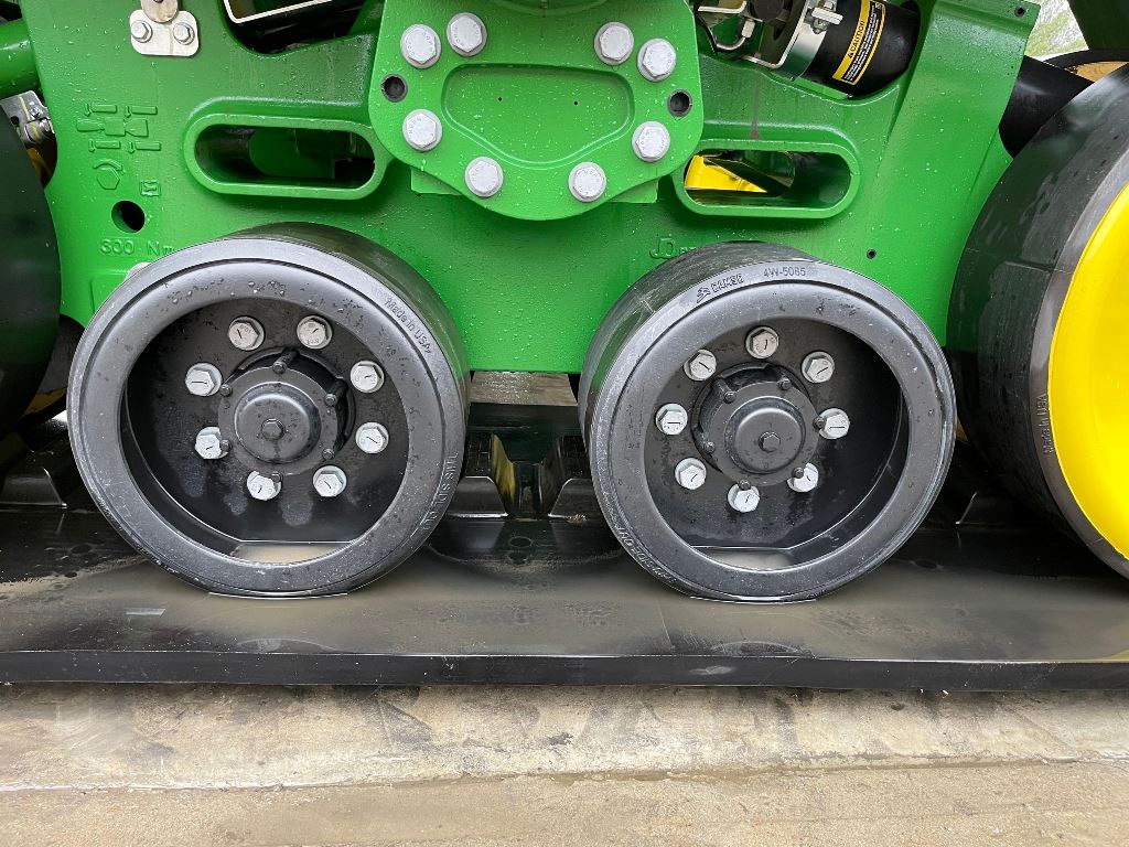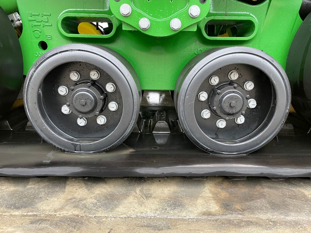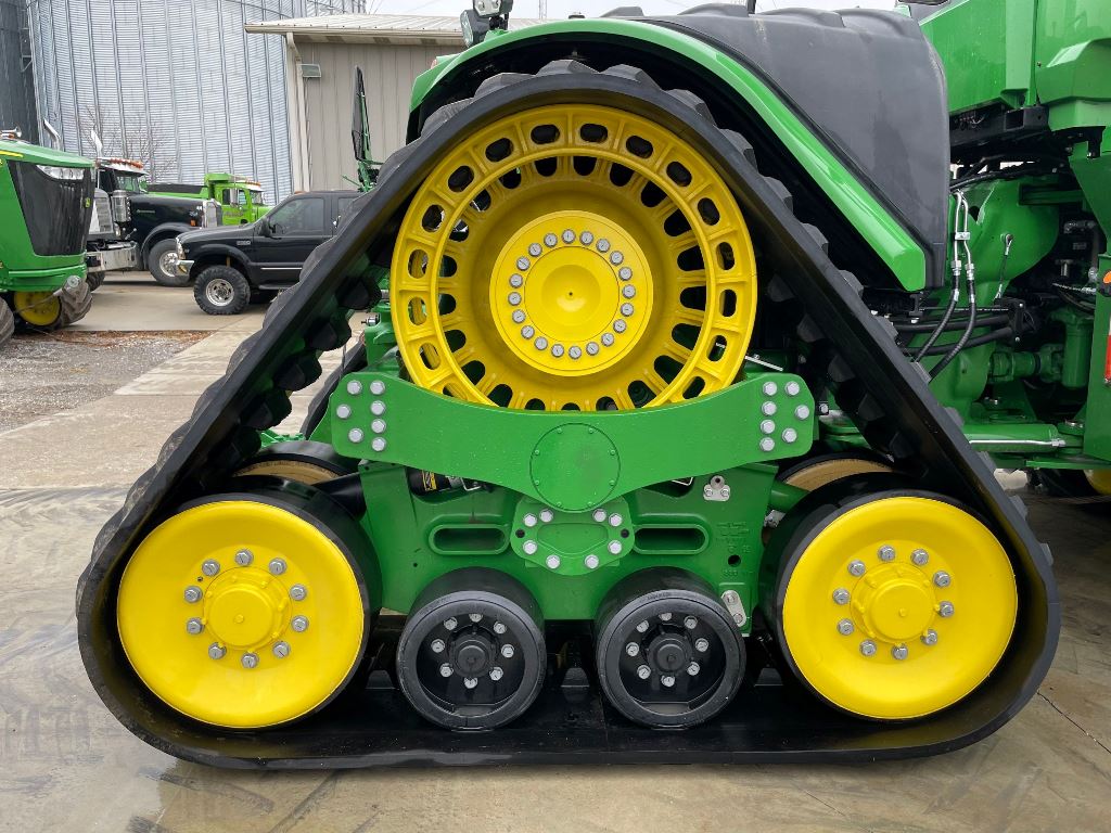 2022 John Deere 9RX 540 Tractor (GP2383), NEVER USED, model 9RX 540, Sydenstricker Nobbe, JD14 13.6L/827 cu in. engine (model TA13702, serial number 9XWPR2204419), 540 HP, John Deere e18 18 speed PowerShift with Efficiency Manager 40km/h 25mph,13.6L FT4/S5 cooling package, no PTO, enclosed cab, adjustable seat, buddy seat, heat and A/C, Generation 4 46000 CommandCenter 10in display, touch screen audio player (AM/FM stereo with weather band, remote controls, auxiliary input jack, four speakers and external antenna), 9 series visibility package (24 LED work lights and 8 LED convenience lights), rear hitch, Full-locking electrohydraulic front and rear axle, Camso 4W-5085 and 5W-0533 rollers, 36 inch wide tracks, 6.2 hours, factory testing hours only, full factory warranty.