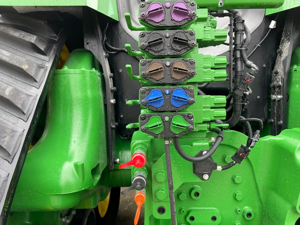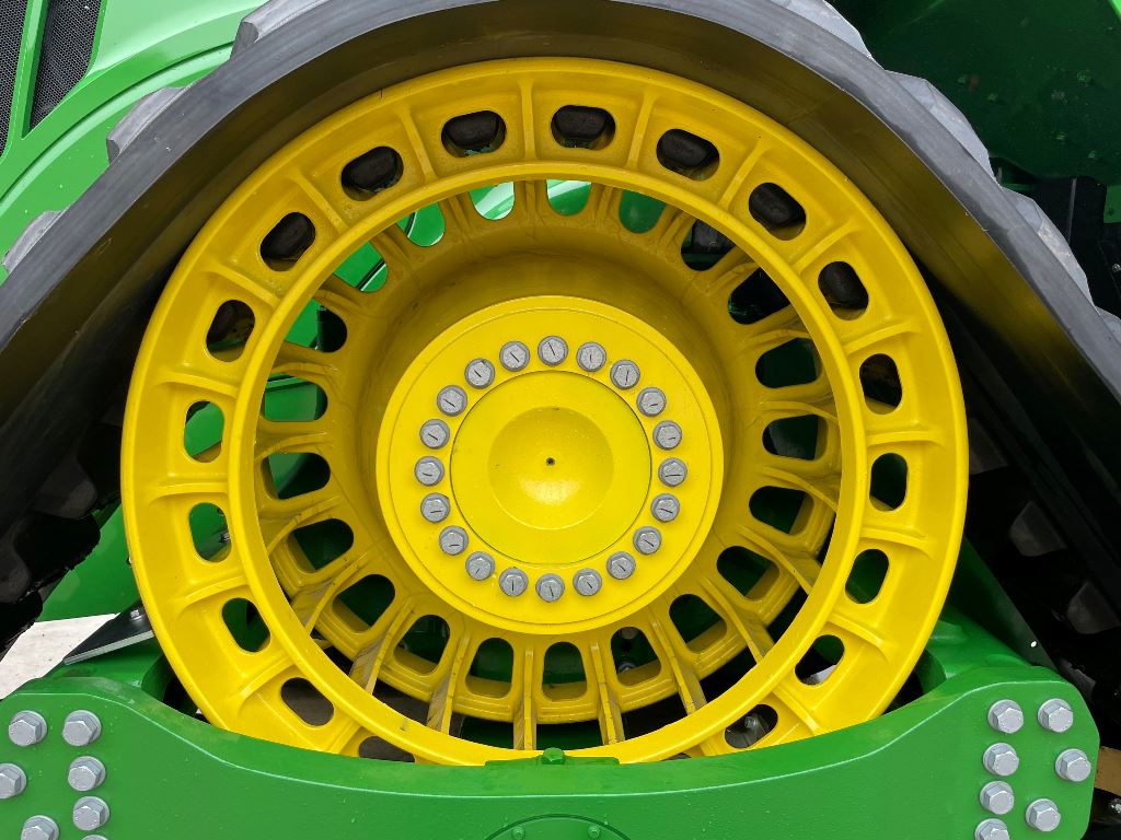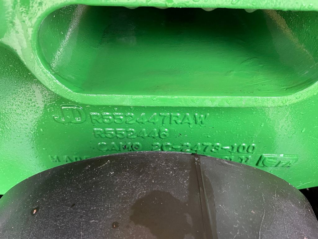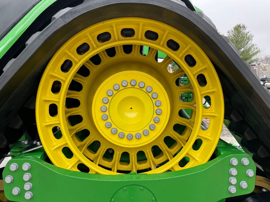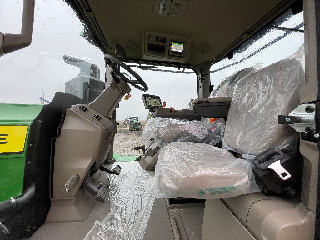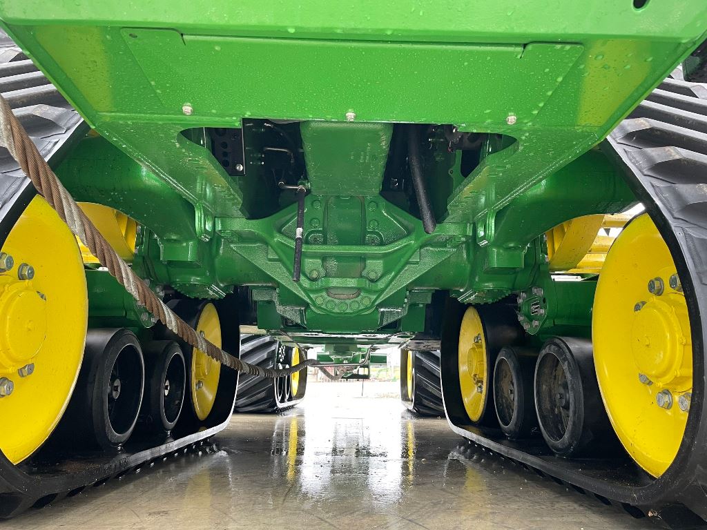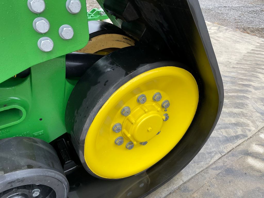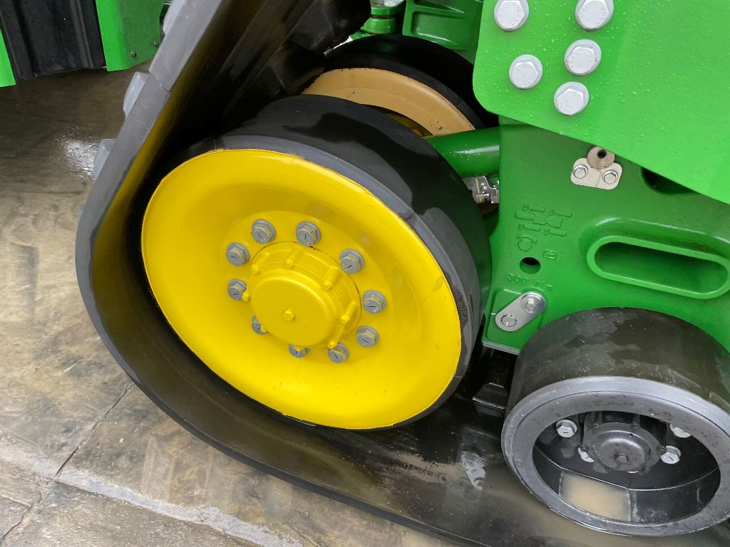 2022 John Deere 9RX 540 Tractor (GP2383), NEVER USED, model 9RX 540, Sydenstricker Nobbe, JD14 13.6L/827 cu in. engine (model TA13702, serial number 9XWPR2204419), 540 HP, John Deere e18 18 speed PowerShift with Efficiency Manager 40km/h 25mph,13.6L FT4/S5 cooling package, no PTO, enclosed cab, adjustable seat, buddy seat, heat and A/C, Generation 4 46000 CommandCenter 10in display, touch screen audio player (AM/FM stereo with weather band, remote controls, auxiliary input jack, four speakers and external antenna), 9 series visibility package (24 LED work lights and 8 LED convenience lights), rear hitch, Full-locking electrohydraulic front and rear axle, Camso 4W-5085 and 5W-0533 rollers, 36 inch wide tracks, 6.2 hours, factory testing hours only, full factory warranty.