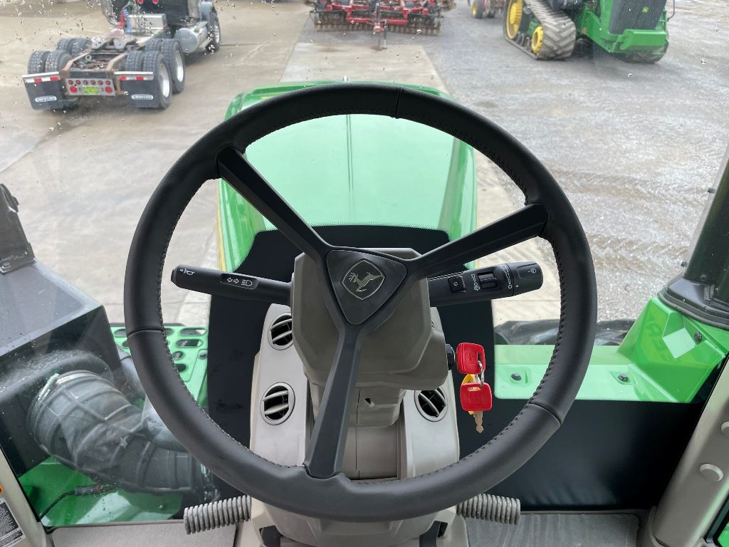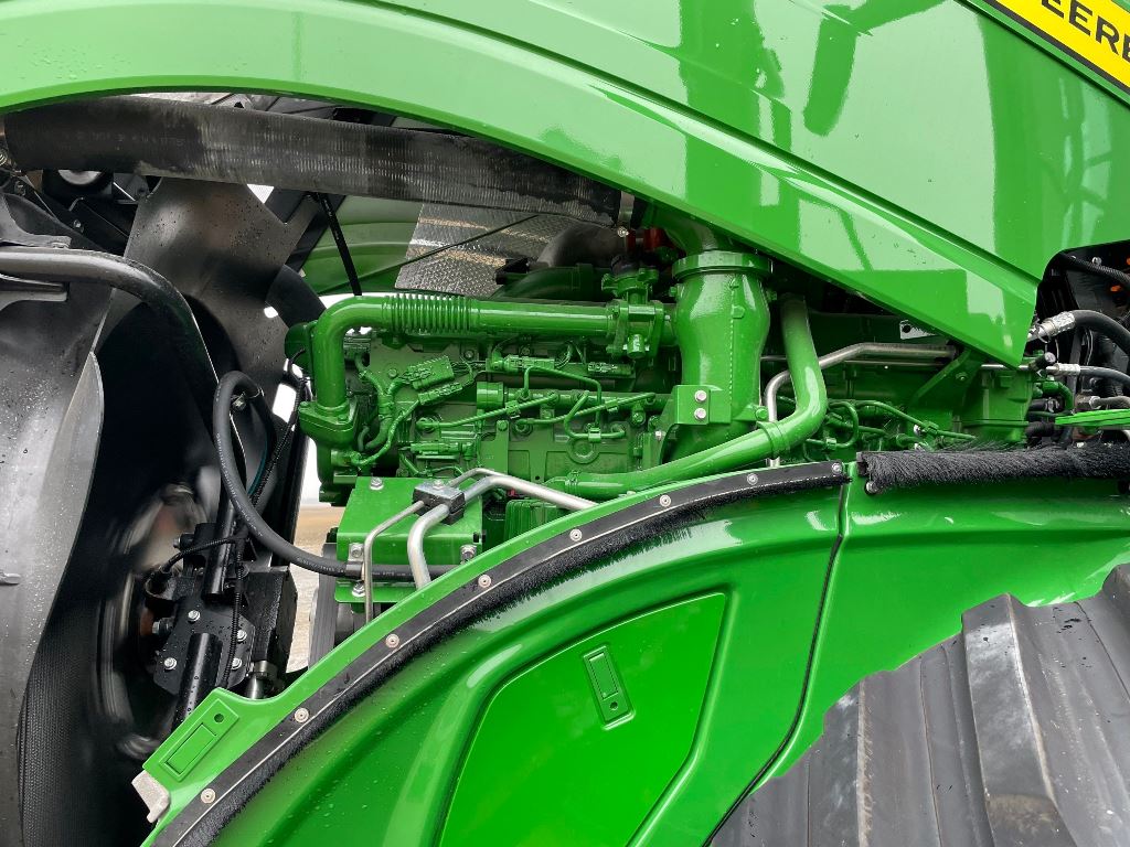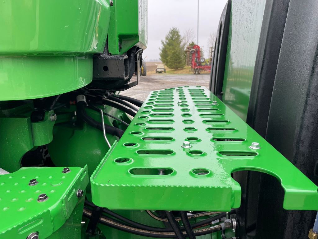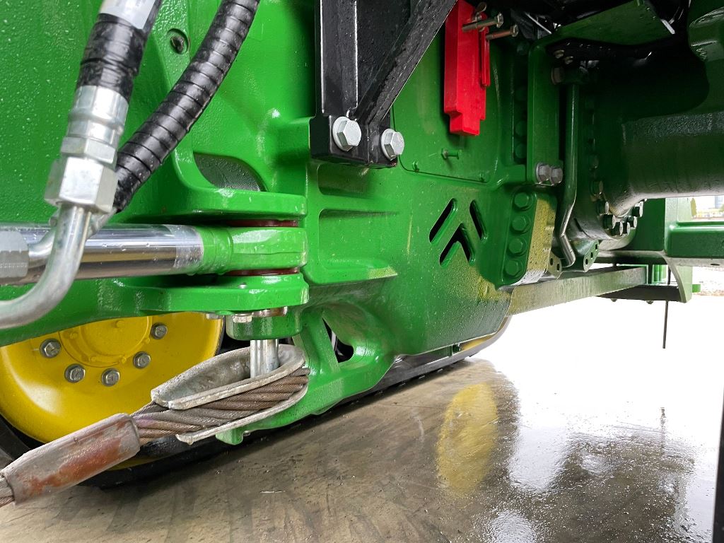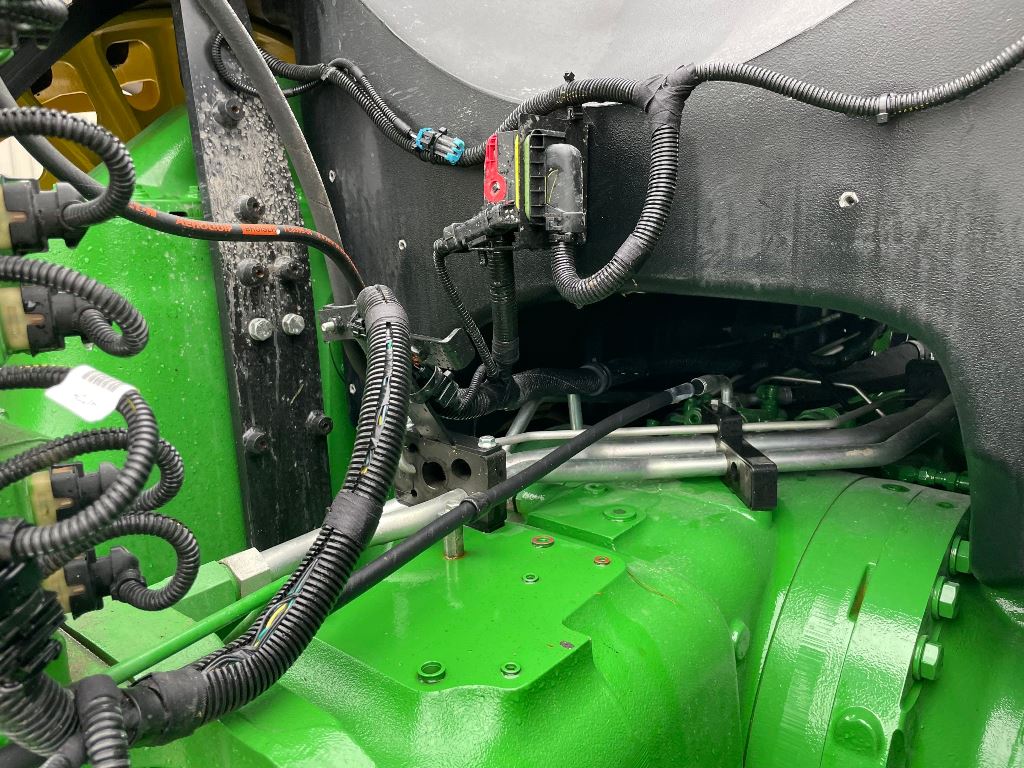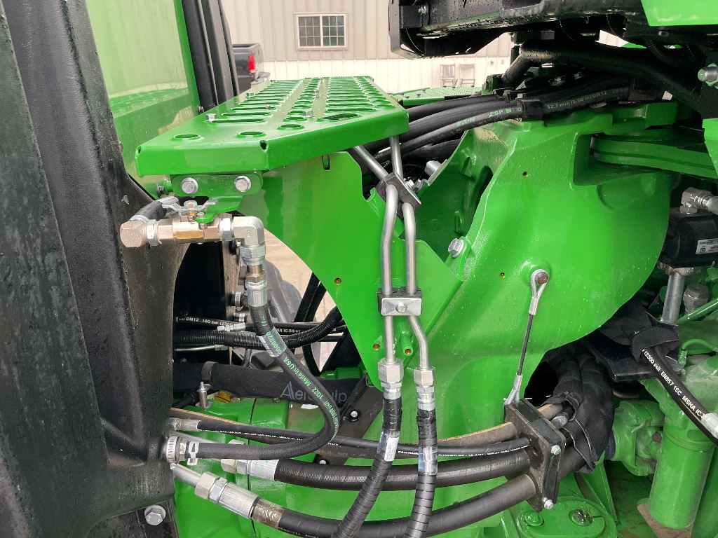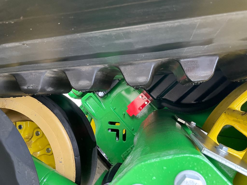 2022 John Deere 9RX 540 Tractor (GP2383), NEVER USED, model 9RX 540, Sydenstricker Nobbe, JD14 13.6L/827 cu in. engine (model TA13702, serial number 9XWPR2204419), 540 HP, John Deere e18 18 speed PowerShift with Efficiency Manager 40km/h 25mph,13.6L FT4/S5 cooling package, no PTO, enclosed cab, adjustable seat, buddy seat, heat and A/C, Generation 4 46000 CommandCenter 10in display, touch screen audio player (AM/FM stereo with weather band, remote controls, auxiliary input jack, four speakers and external antenna), 9 series visibility package (24 LED work lights and 8 LED convenience lights), rear hitch, Full-locking electrohydraulic front and rear axle, Camso 4W-5085 and 5W-0533 rollers, 36 inch wide tracks, 6.2 hours, factory testing hours only, full factory warranty.