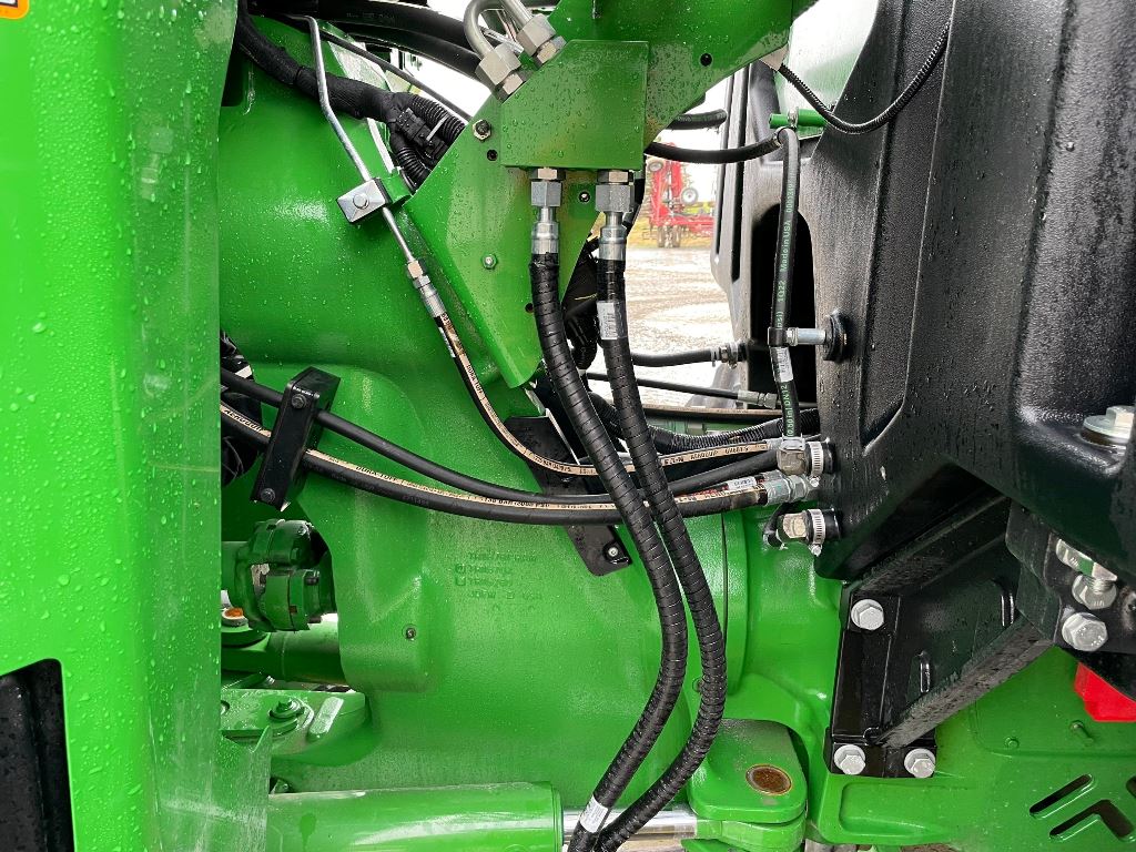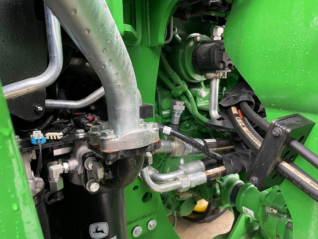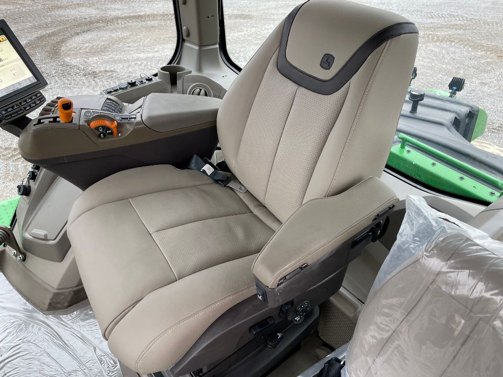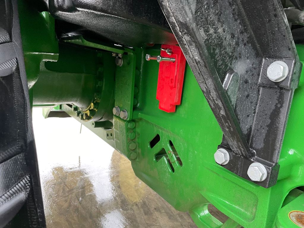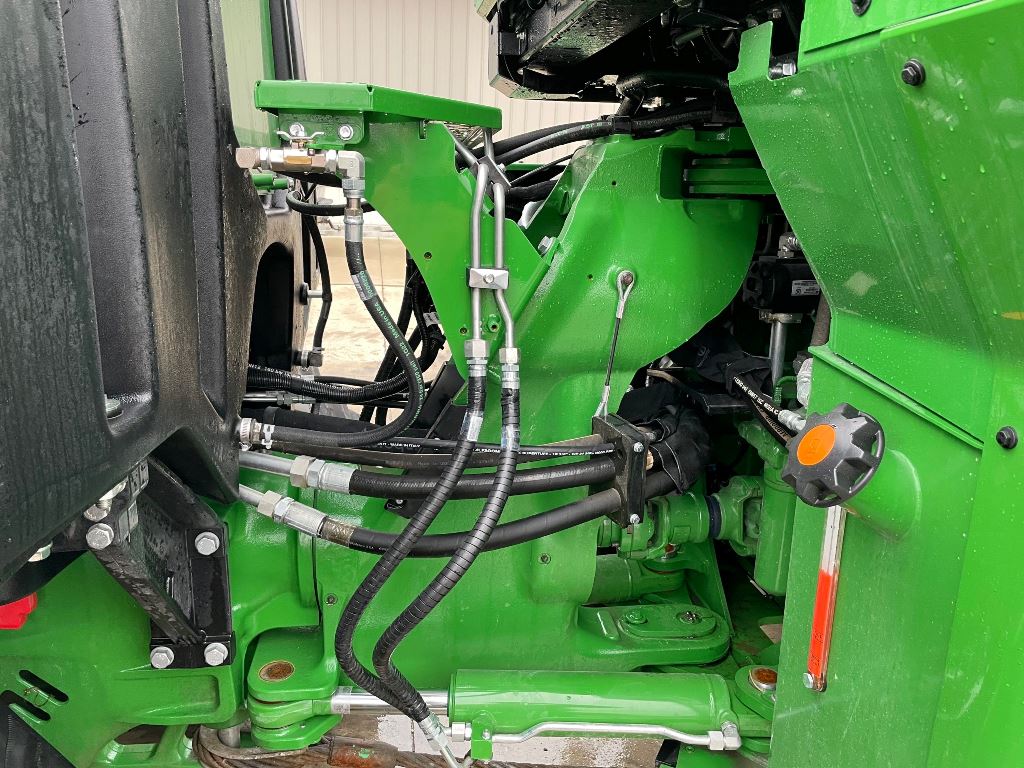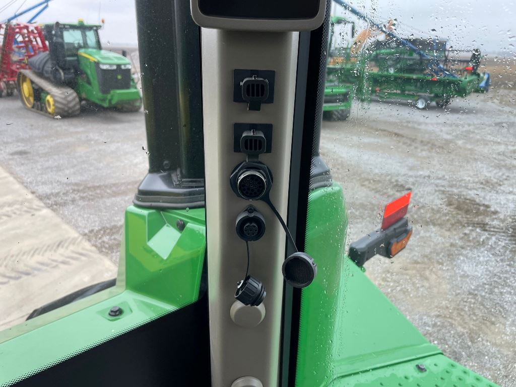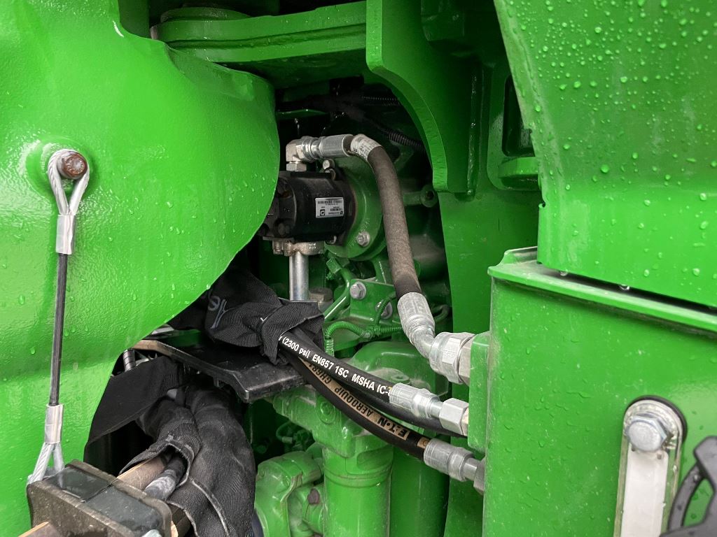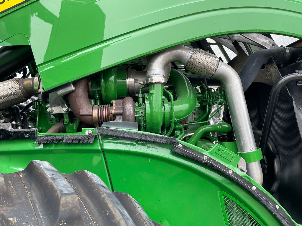 2022 John Deere 9RX 540 Tractor (GP2383), NEVER USED, model 9RX 540, Sydenstricker Nobbe, JD14 13.6L/827 cu in. engine (model TA13702, serial number 9XWPR2204419), 540 HP, John Deere e18 18 speed PowerShift with Efficiency Manager 40km/h 25mph,13.6L FT4/S5 cooling package, no PTO, enclosed cab, adjustable seat, buddy seat, heat and A/C, Generation 4 46000 CommandCenter 10in display, touch screen audio player (AM/FM stereo with weather band, remote controls, auxiliary input jack, four speakers and external antenna), 9 series visibility package (24 LED work lights and 8 LED convenience lights), rear hitch, Full-locking electrohydraulic front and rear axle, Camso 4W-5085 and 5W-0533 rollers, 36 inch wide tracks, 6.2 hours, factory testing hours only, full factory warranty.
