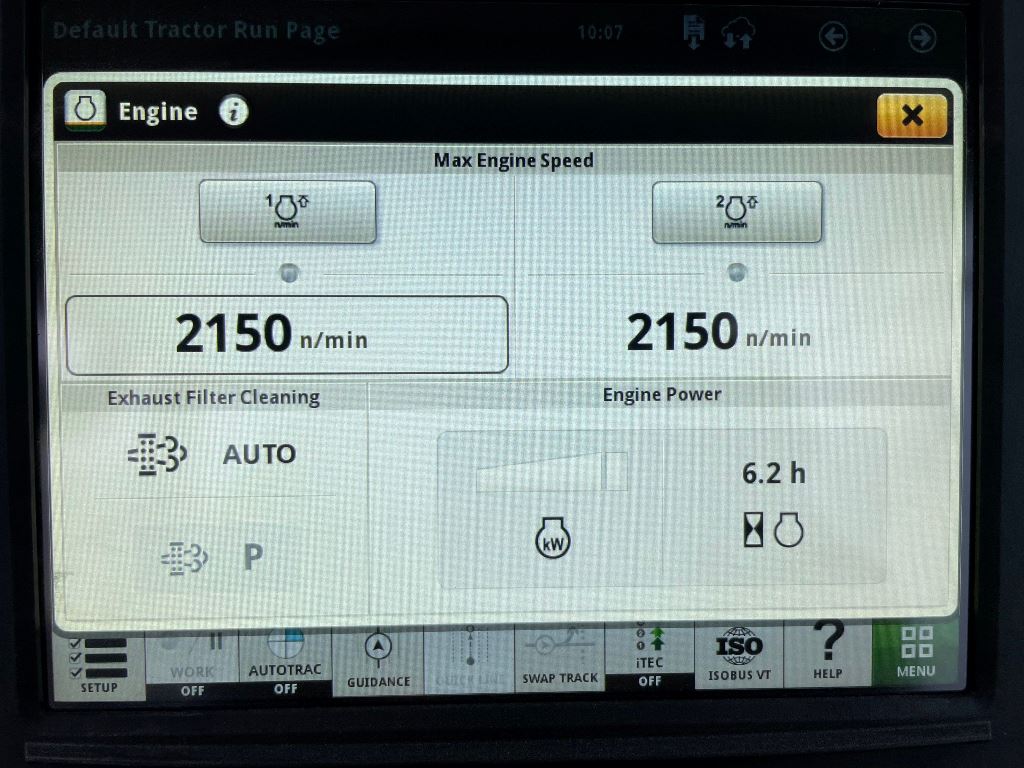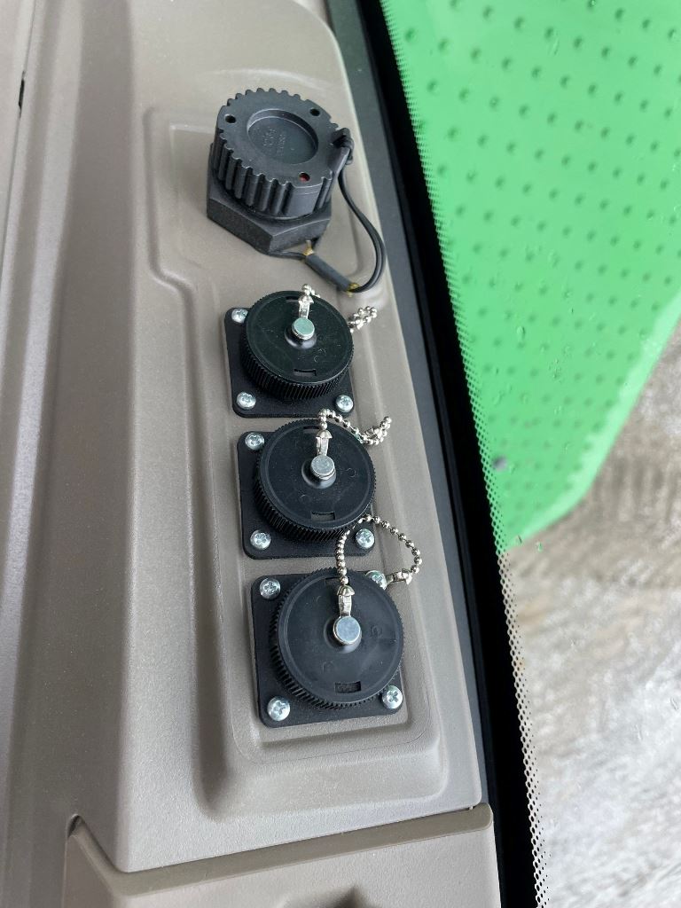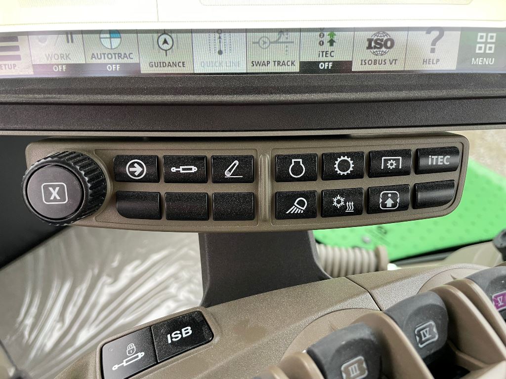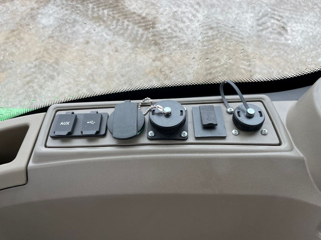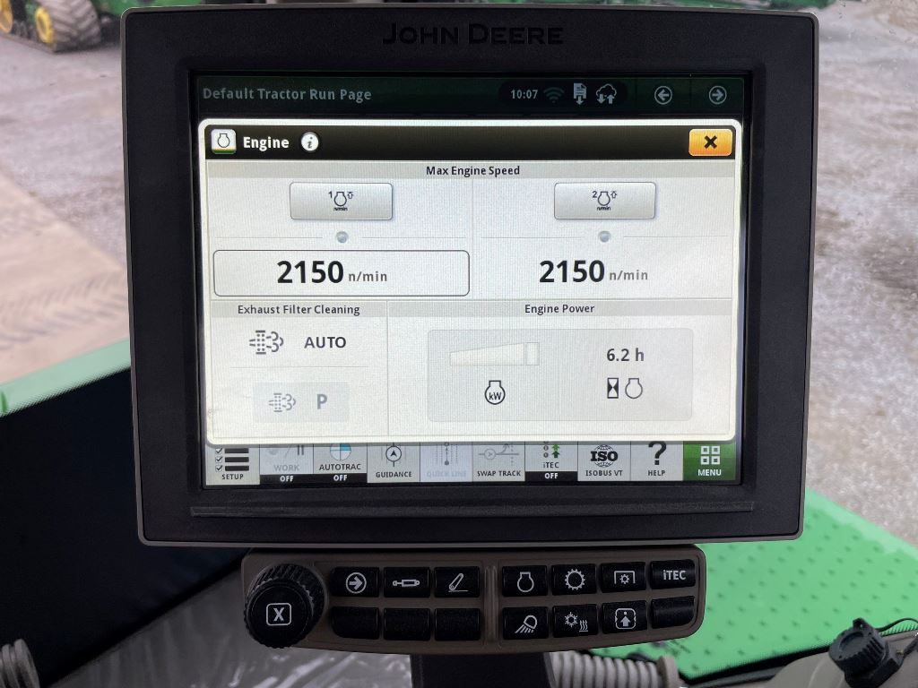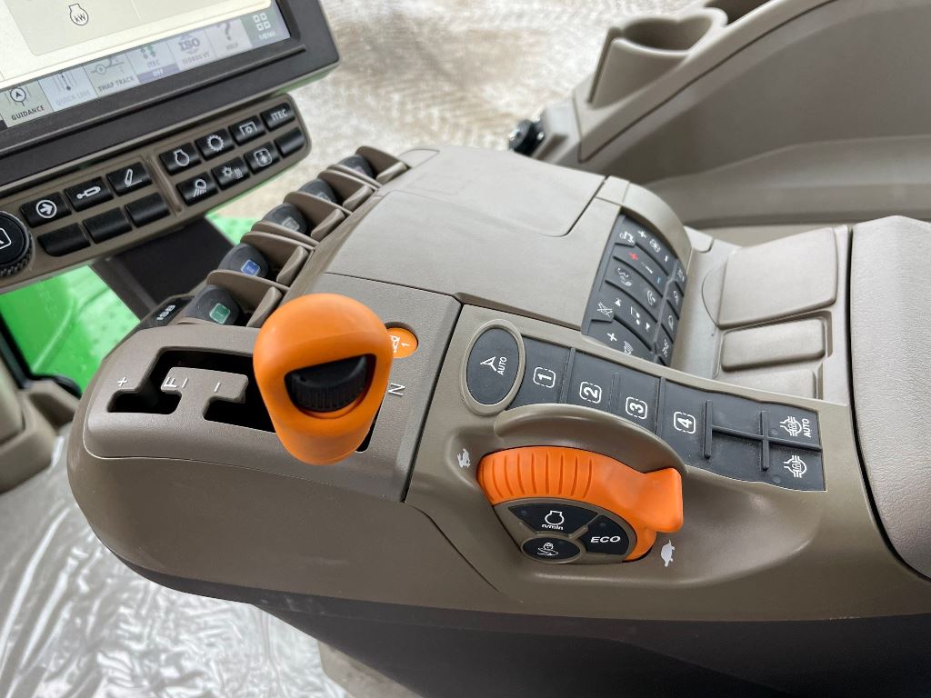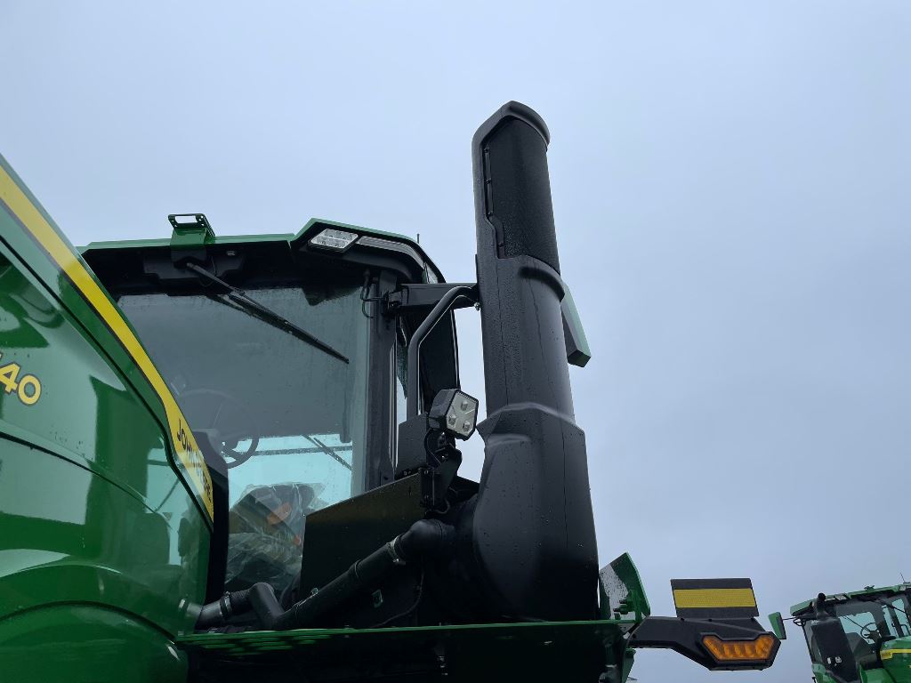 2022 John Deere 9RX 540 Tractor (GP2383), NEVER USED, model 9RX 540, Sydenstricker Nobbe, JD14 13.6L/827 cu in. engine (model TA13702, serial number 9XWPR2204419), 540 HP, John Deere e18 18 speed PowerShift with Efficiency Manager 40km/h 25mph,13.6L FT4/S5 cooling package, no PTO, enclosed cab, adjustable seat, buddy seat, heat and A/C, Generation 4 46000 CommandCenter 10in display, touch screen audio player (AM/FM stereo with weather band, remote controls, auxiliary input jack, four speakers and external antenna), 9 series visibility package (24 LED work lights and 8 LED convenience lights), rear hitch, Full-locking electrohydraulic front and rear axle, Camso 4W-5085 and 5W-0533 rollers, 36 inch wide tracks, 6.2 hours, factory testing hours only, full factory warranty.
