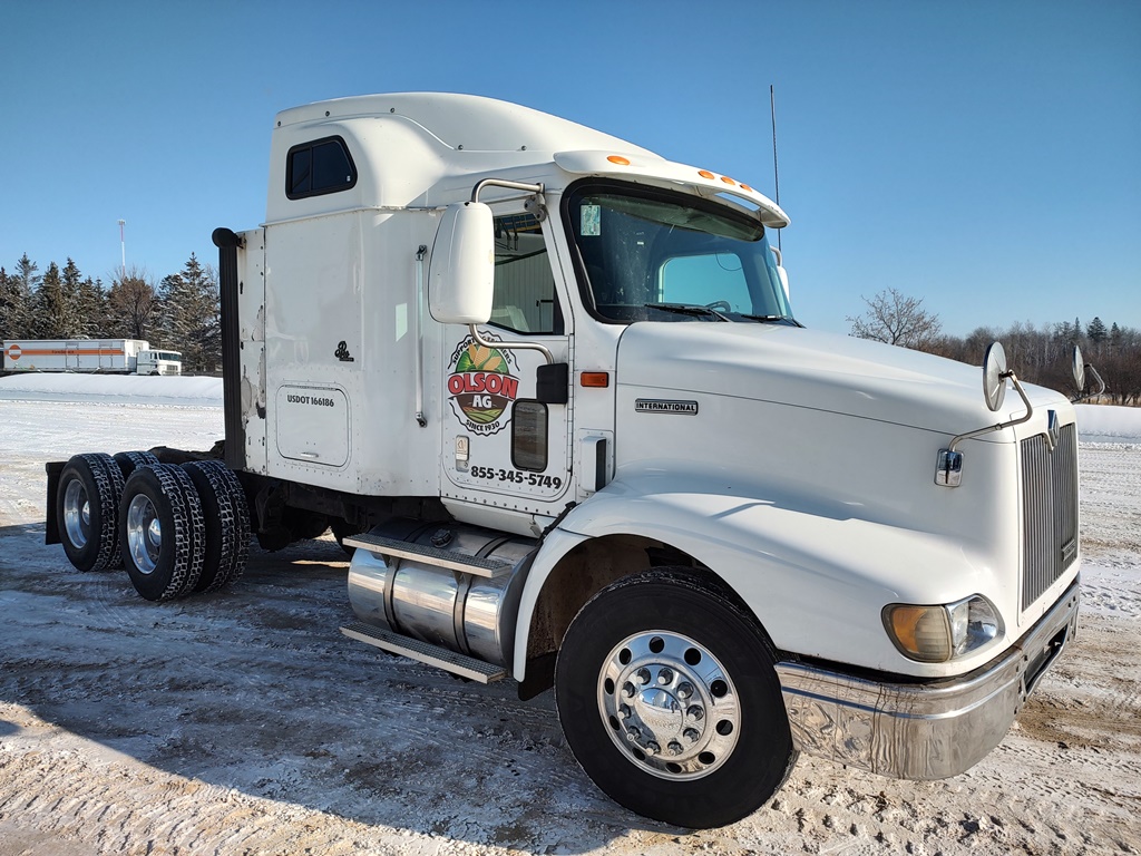 2000 International 9200i Eagle Truck (DR3642), Cat pre emission diesel engine, Eaton automatic transmission w/clutch, tandem axle full screw, air ride suspension, Pro Sleeper, dual polished aluminum fuel tanks, air slide 5th wheel, cab heat/air conditioning, cruise control, AM/FM CD radio, shows 939,571 miles, outside aluminum wheels.