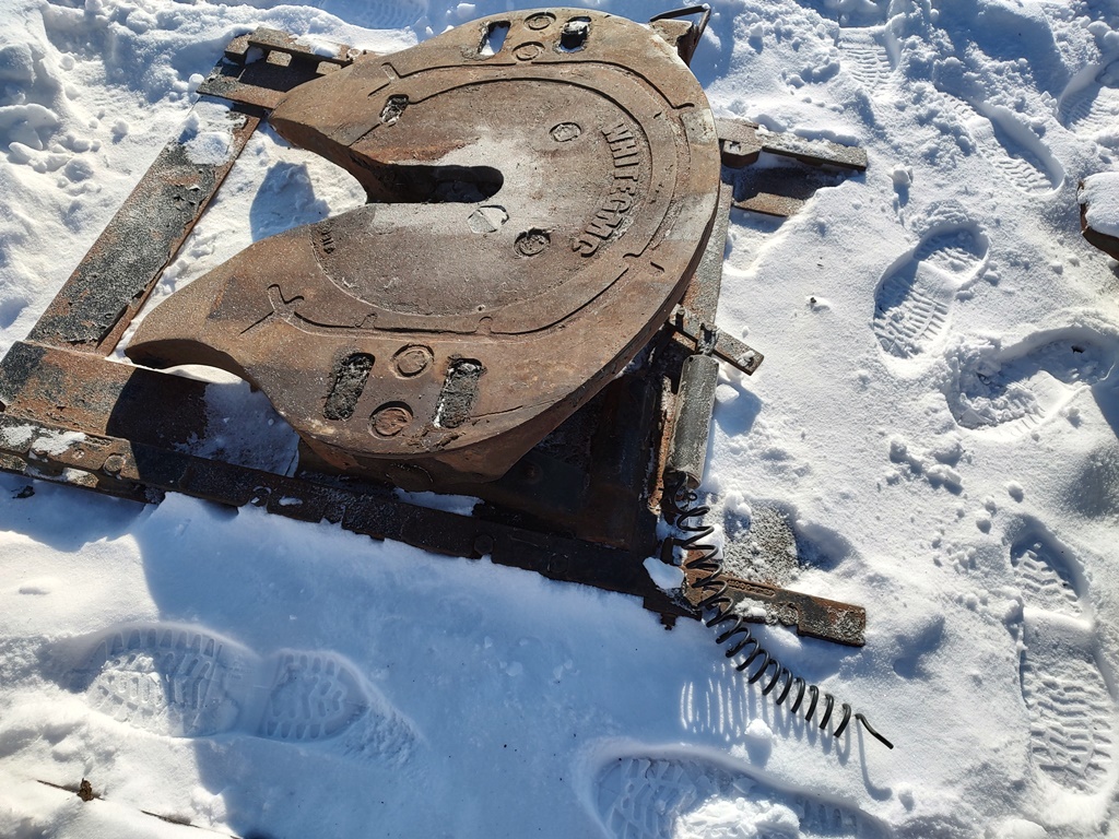 Air Slide 5th Wheel Plate (DR3632), White/GMC air sliding 5th wheel plate, and frame bracket.