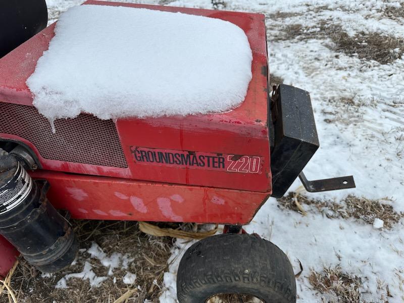 Toro Mower (DR3650), Ground Master 220, Onan gas engine, zero turn, 52'' front deck, rear counter weight.