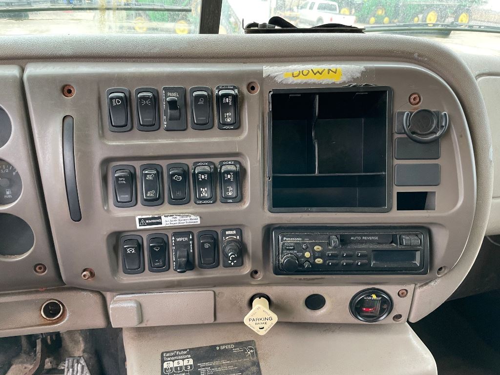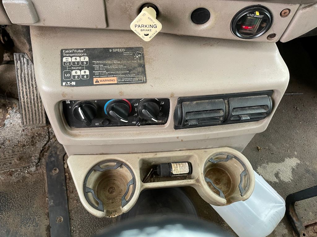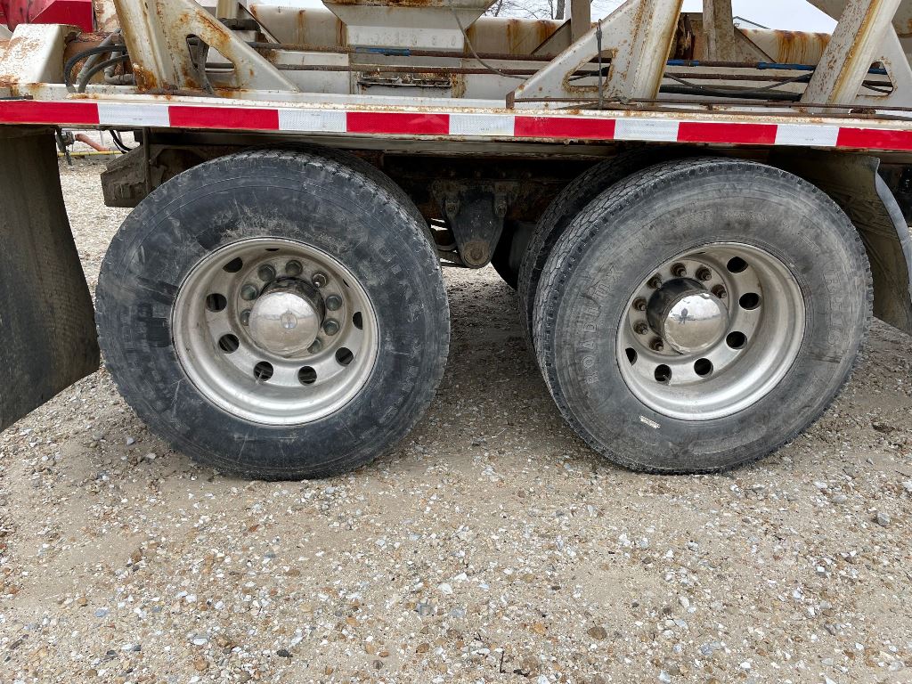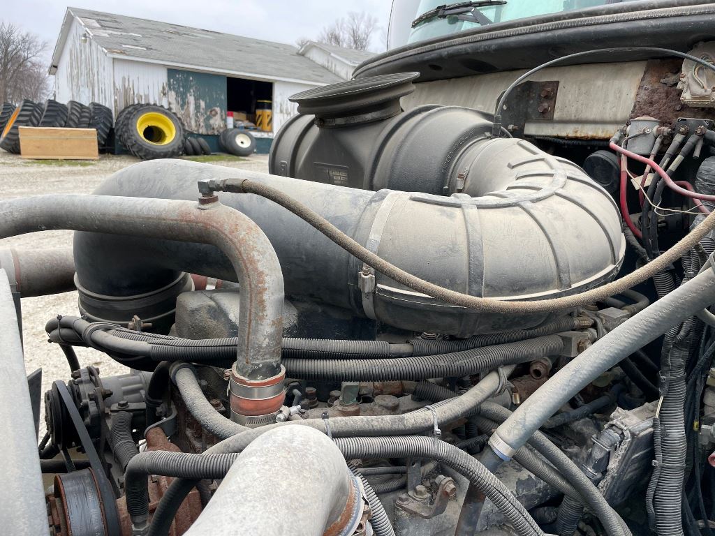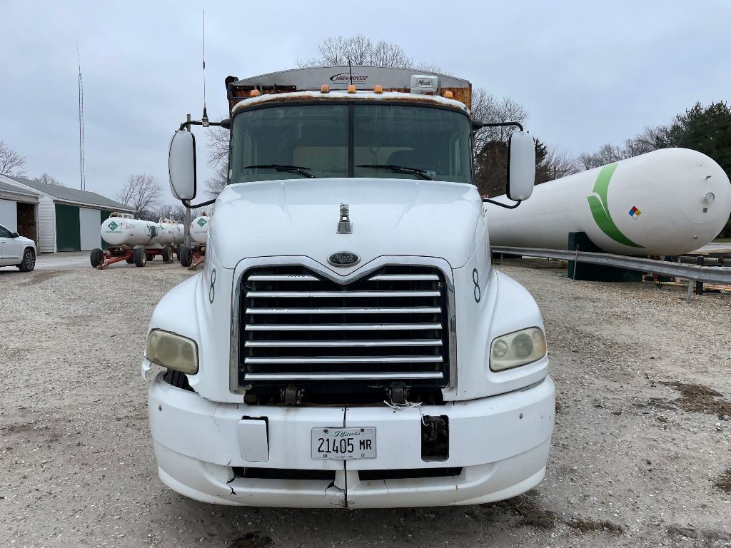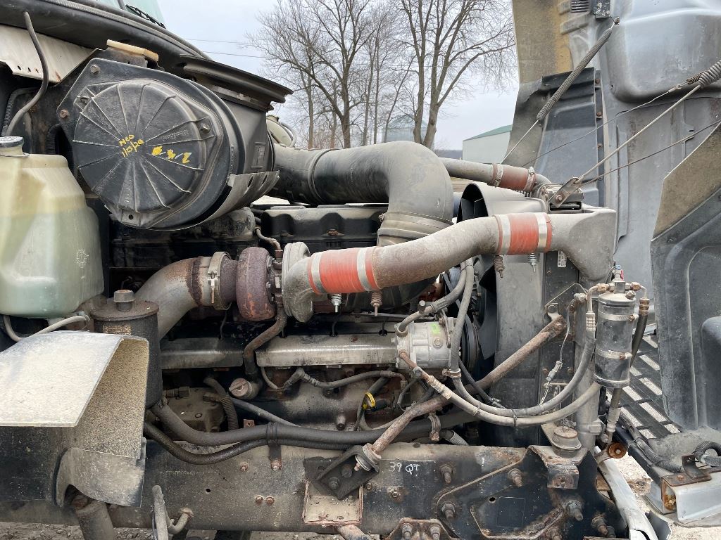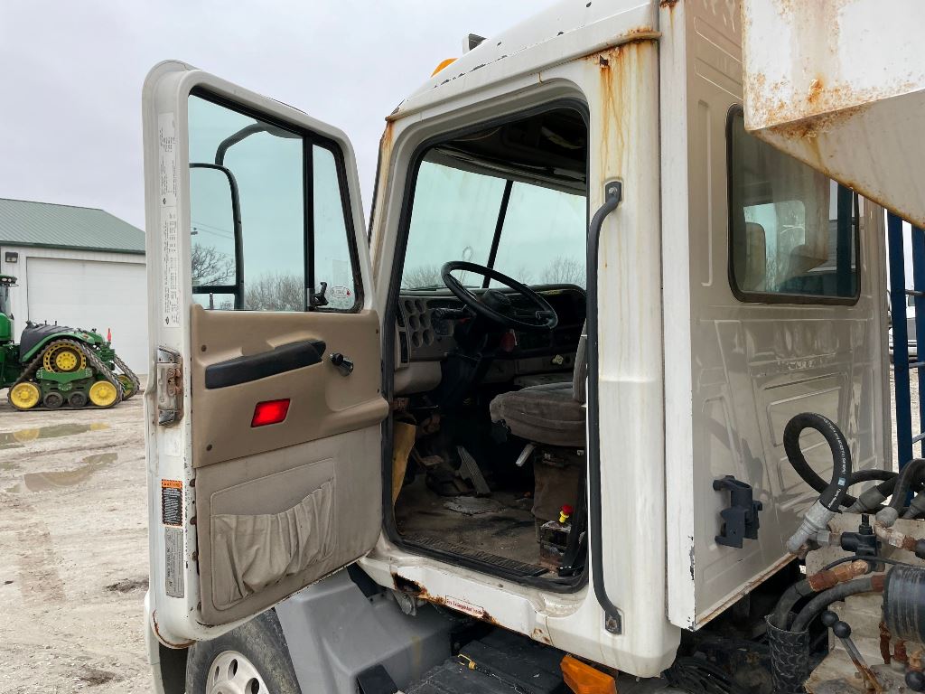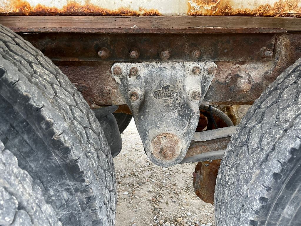 2002 Mack CX613 Dry Tender Truck (GP2431, Unit 17864), Mack E7-330/350 diesel engine, Eaton Fuller 9 speed transmission, air conditioning, heat, Am/Fm cassette radio, cruise control, engine brake, tandem axle, full screw, air ride suspension, Doyle 16 ton dry tender box, side discharge auger, all hydraulic, vibrators, roll over tarp, 295/75R22.5 tires, aluminum rims, shows 774,927 miles.