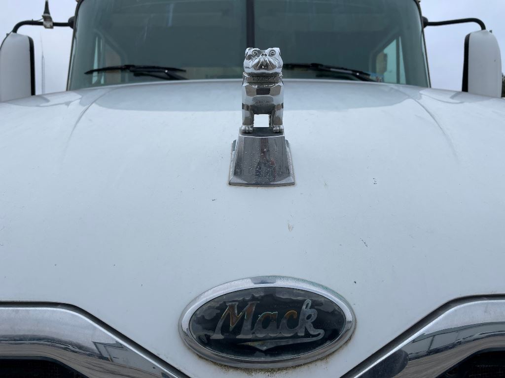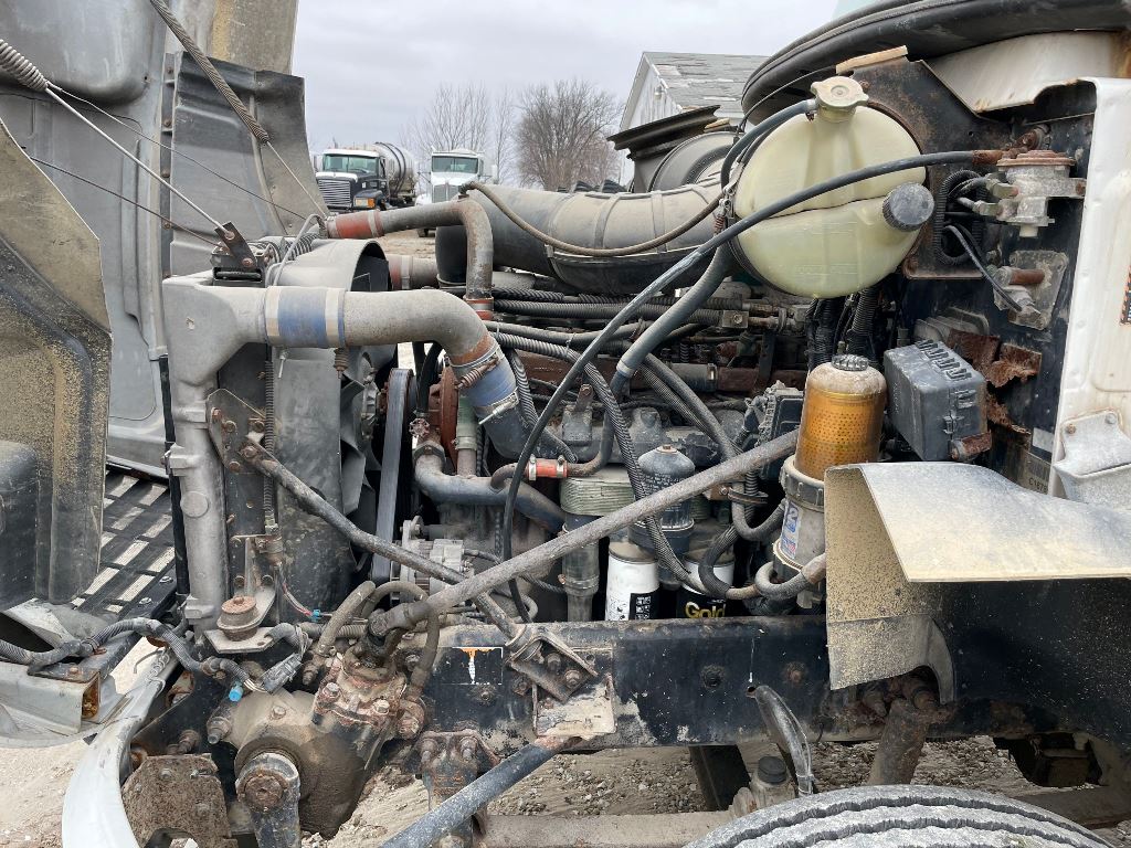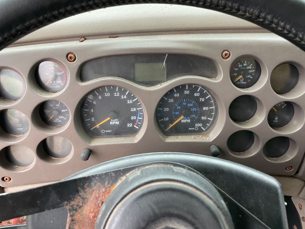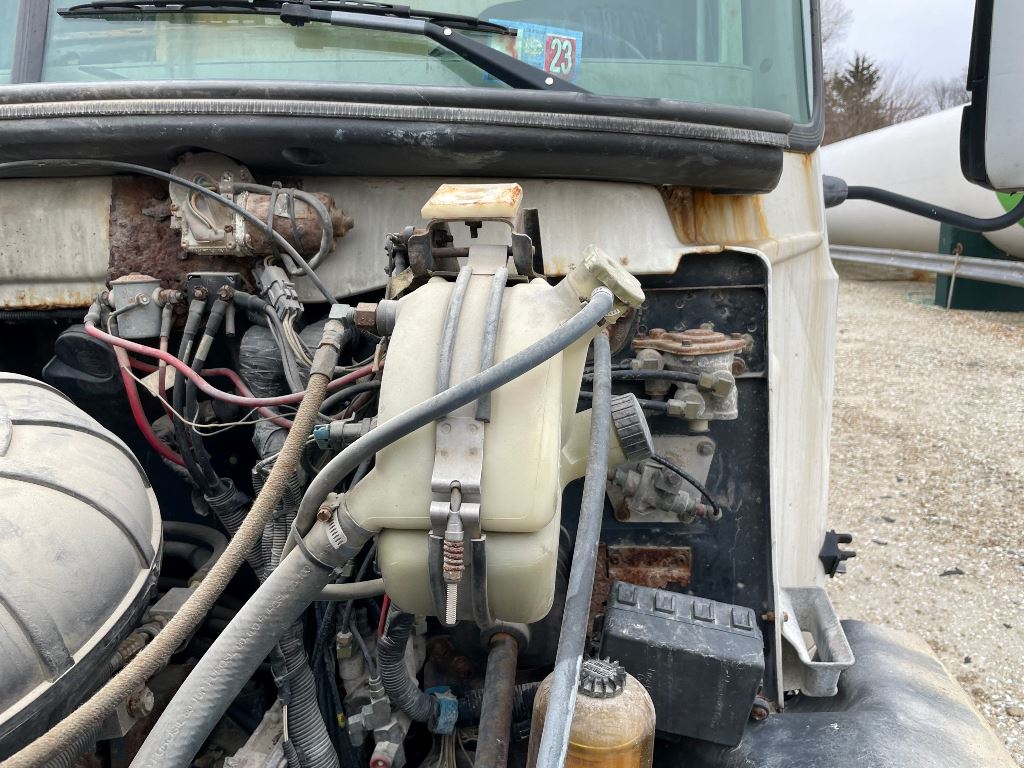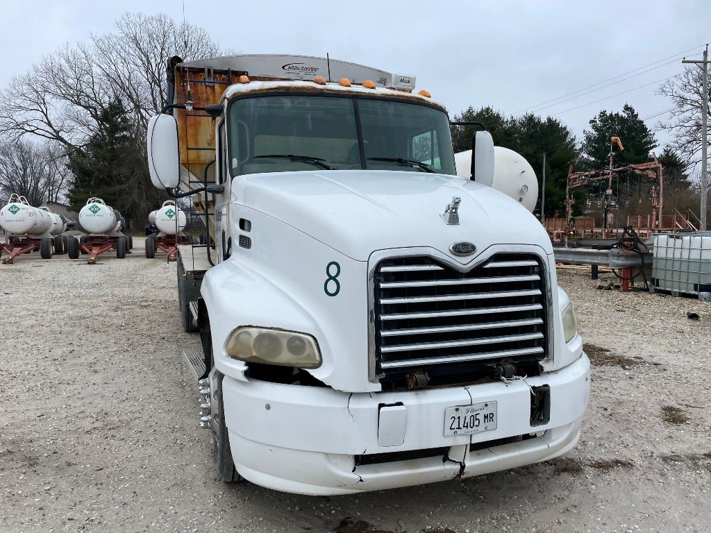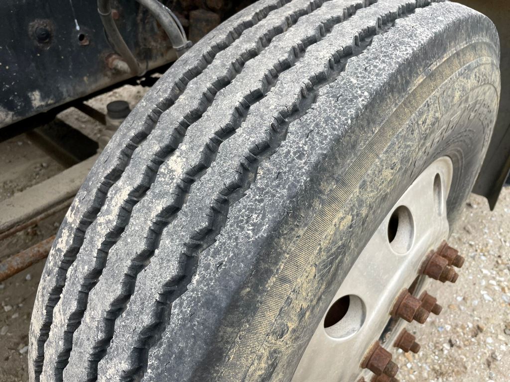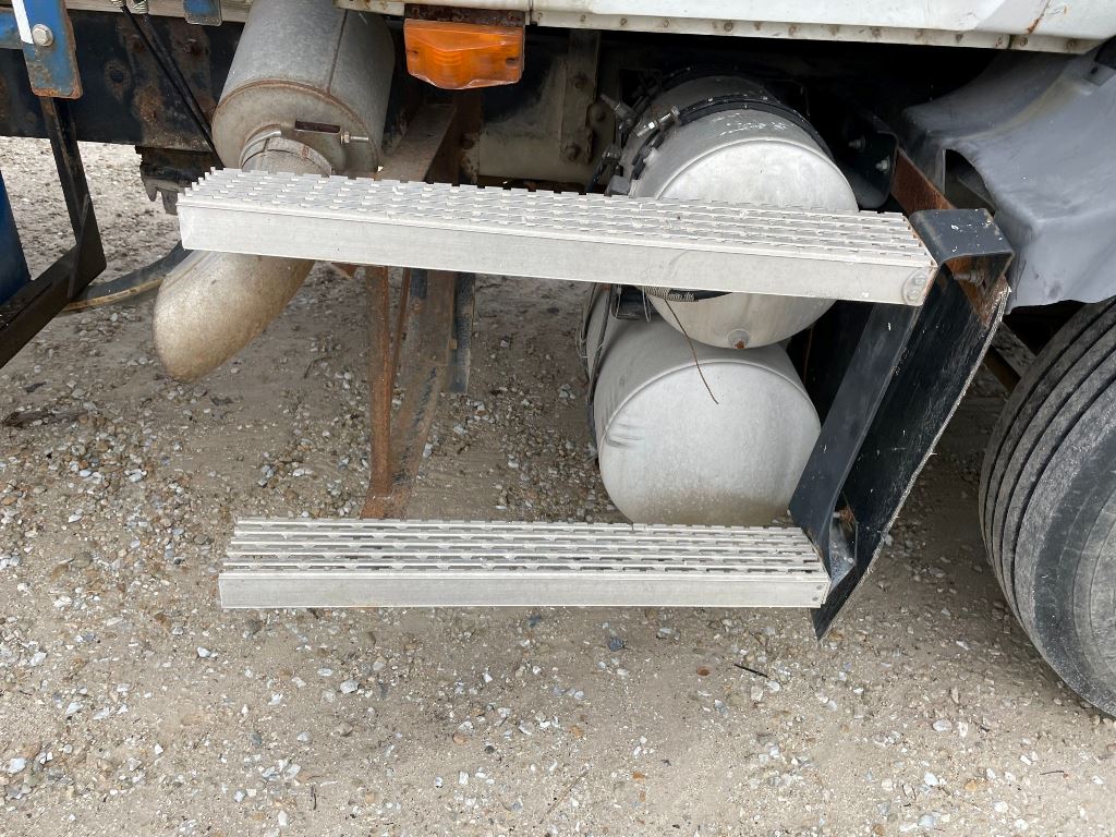 2002 Mack CX613 Dry Tender Truck (GP2431, Unit 17864), Mack E7-330/350 diesel engine, Eaton Fuller 9 speed transmission, air conditioning, heat, Am/Fm cassette radio, cruise control, engine brake, tandem axle, full screw, air ride suspension, Doyle 16 ton dry tender box, side discharge auger, all hydraulic, vibrators, roll over tarp, 295/75R22.5 tires, aluminum rims, shows 774,927 miles.