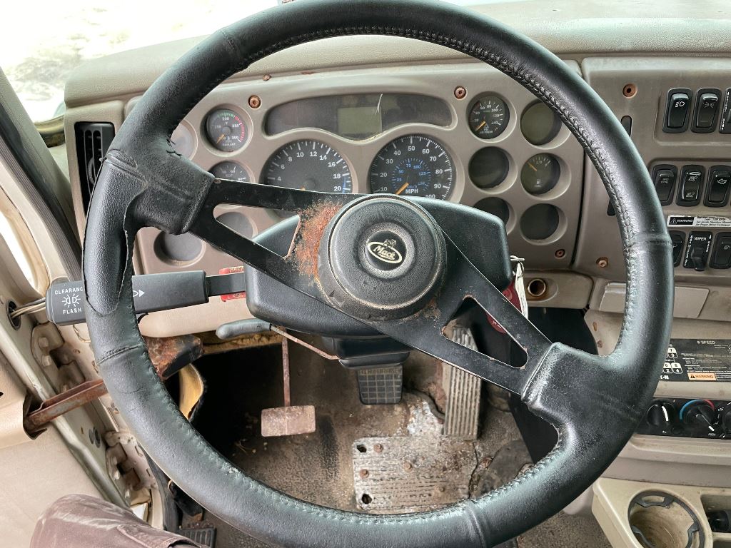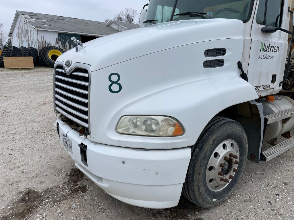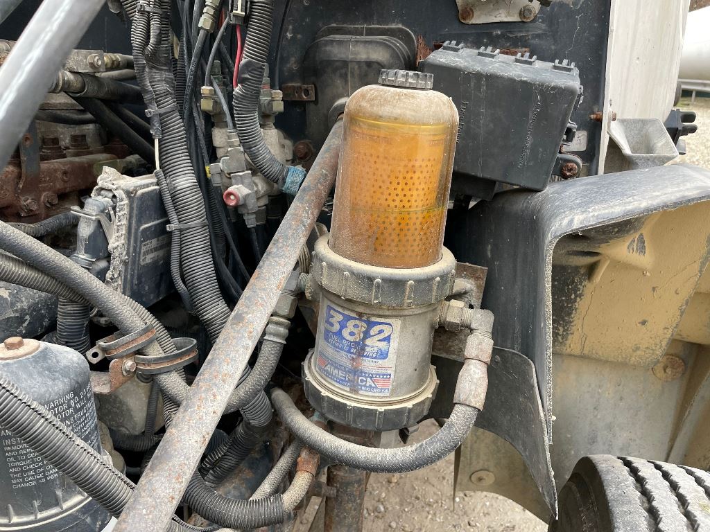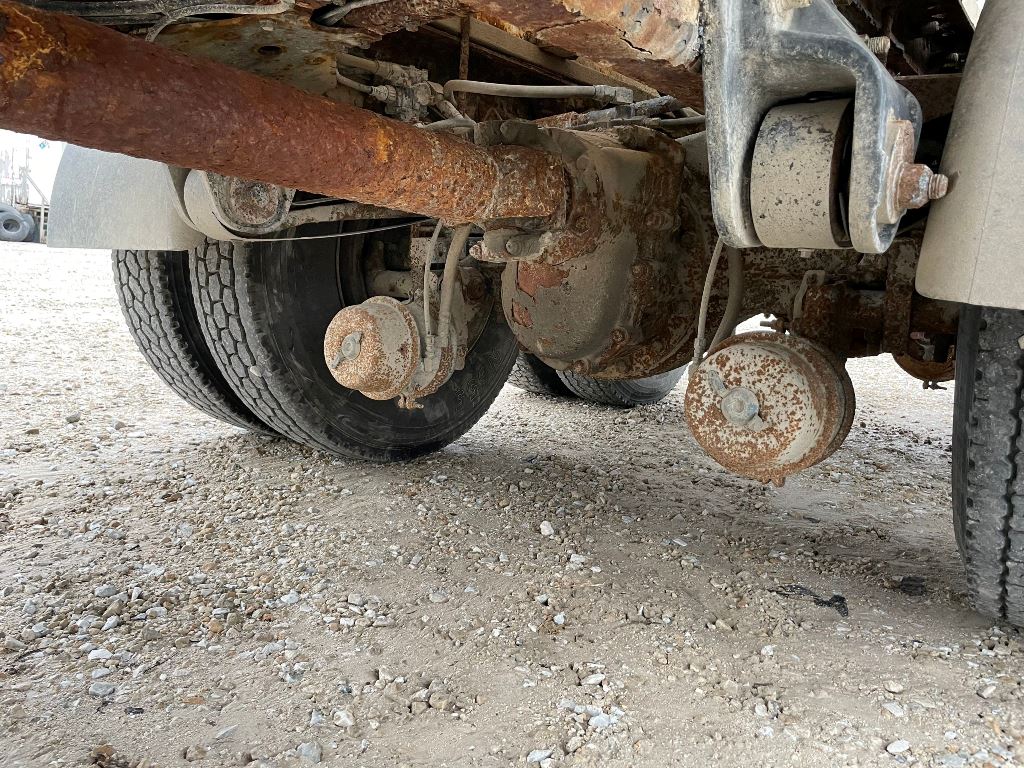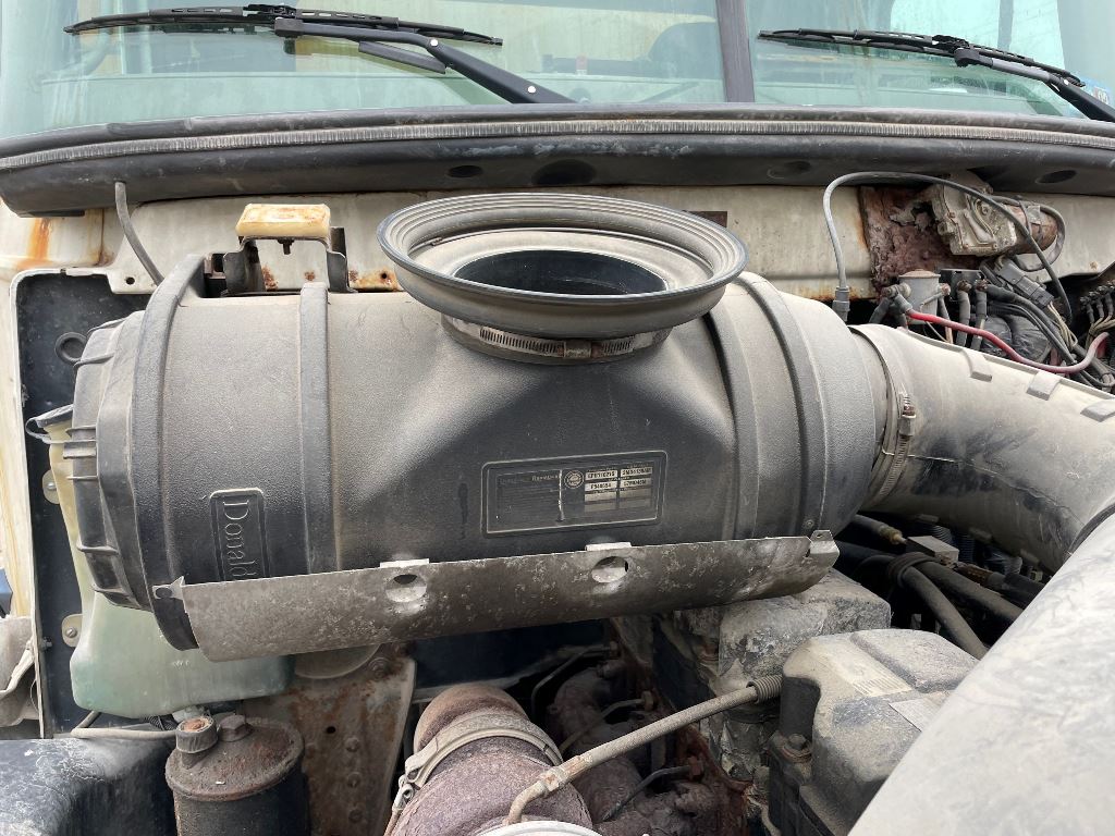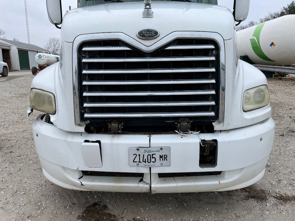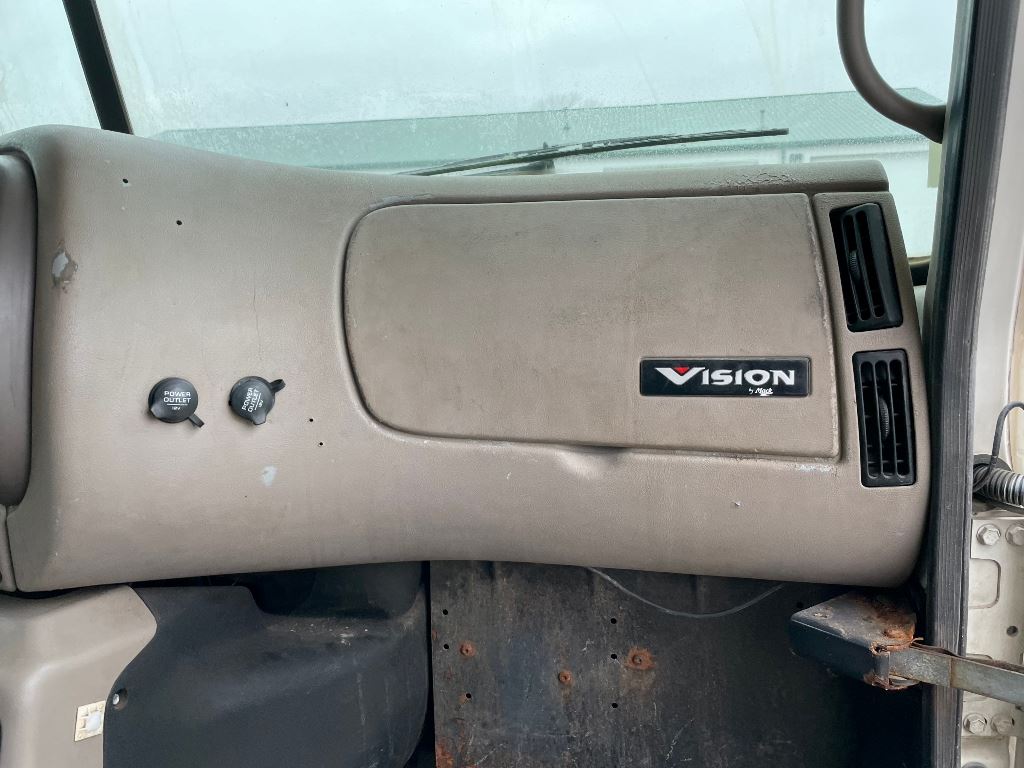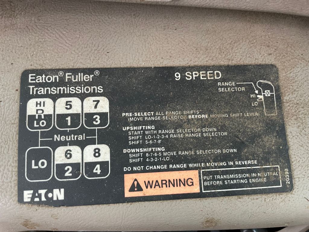 2002 Mack CX613 Dry Tender Truck (GP2431, Unit 17864), Mack E7-330/350 diesel engine, Eaton Fuller 9 speed transmission, air conditioning, heat, Am/Fm cassette radio, cruise control, engine brake, tandem axle, full screw, air ride suspension, Doyle 16 ton dry tender box, side discharge auger, all hydraulic, vibrators, roll over tarp, 295/75R22.5 tires, aluminum rims, shows 774,927 miles.