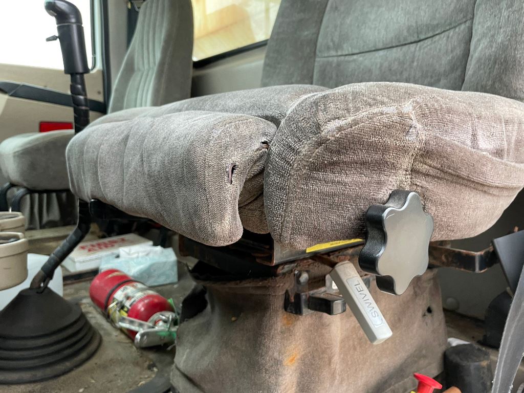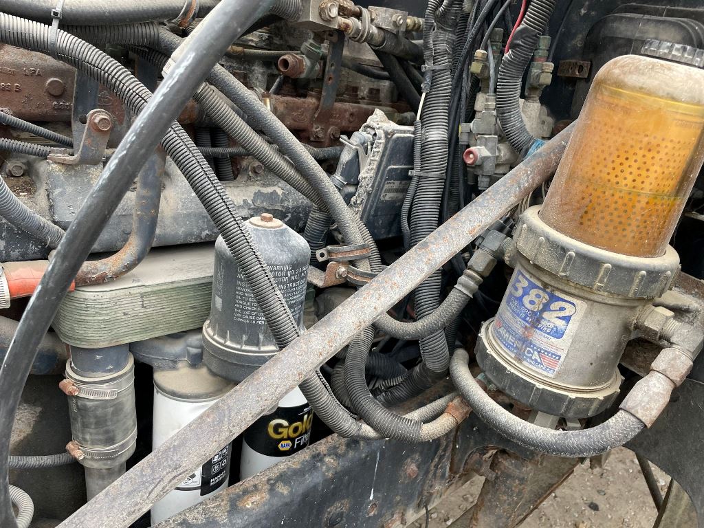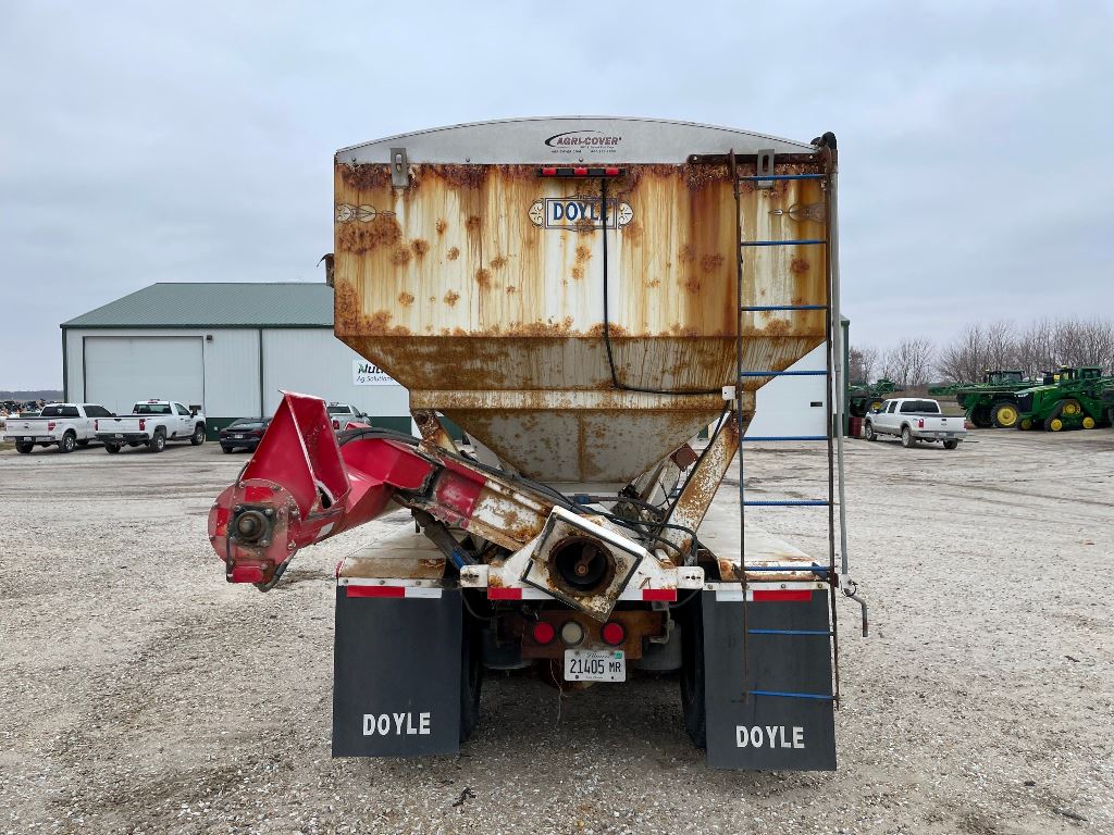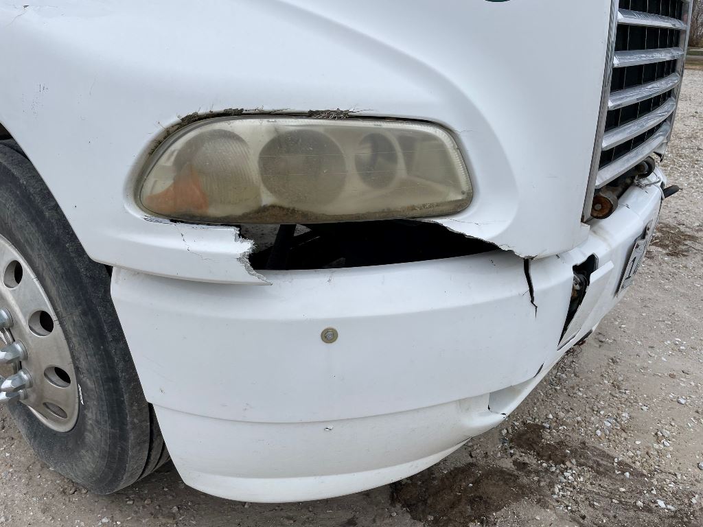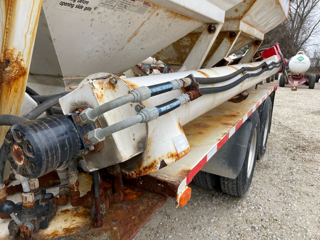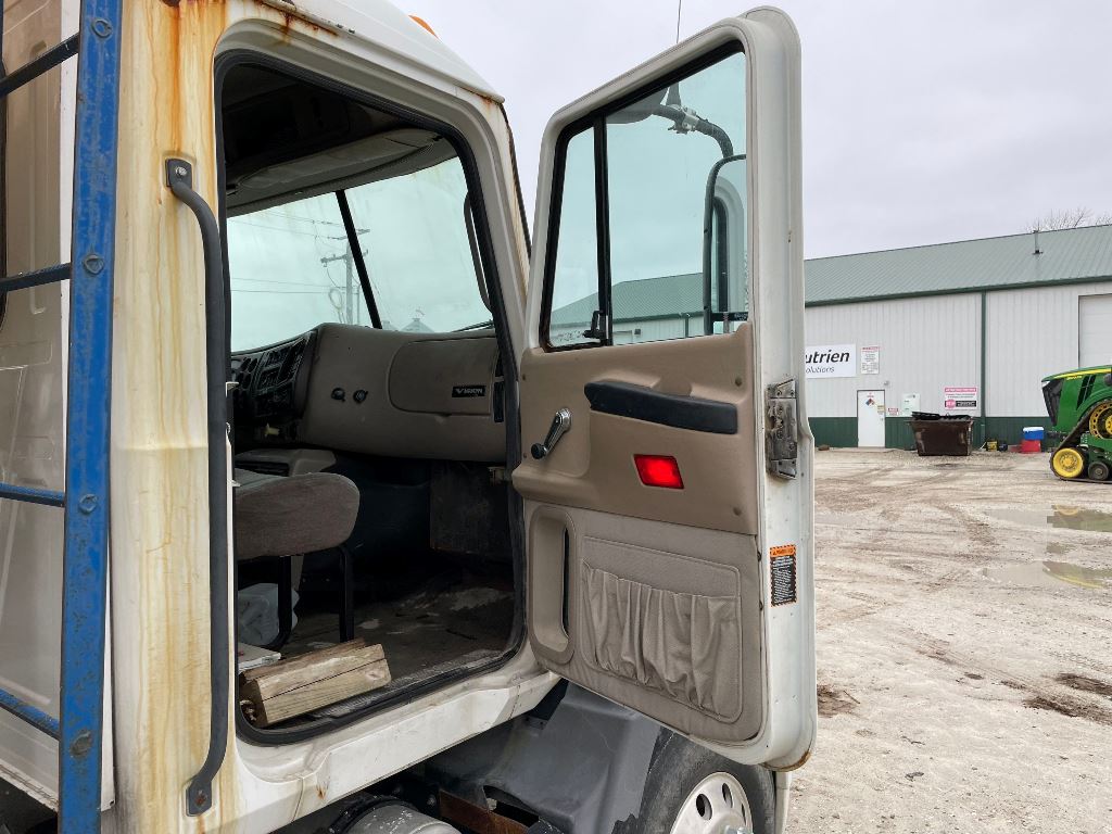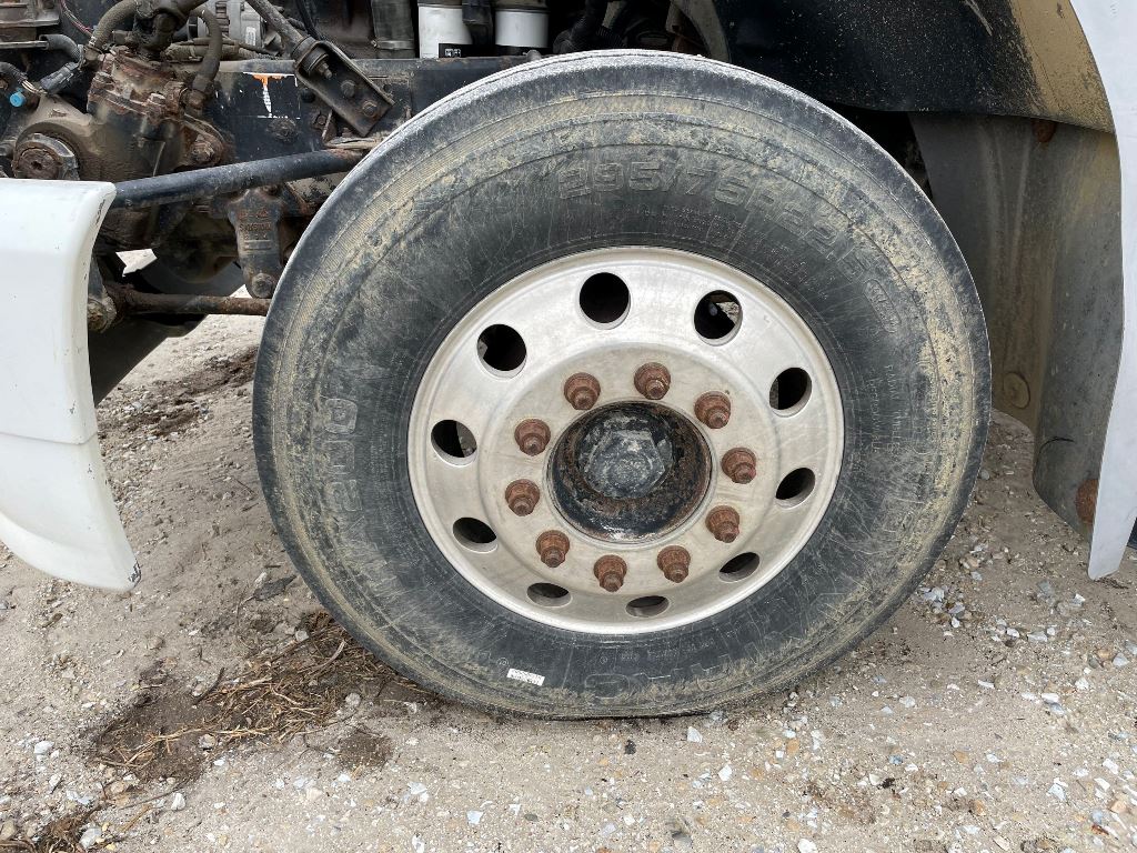 2002 Mack CX613 Dry Tender Truck (GP2431, Unit 17864), Mack E7-330/350 diesel engine, Eaton Fuller 9 speed transmission, air conditioning, heat, Am/Fm cassette radio, cruise control, engine brake, tandem axle, full screw, air ride suspension, Doyle 16 ton dry tender box, side discharge auger, all hydraulic, vibrators, roll over tarp, 295/75R22.5 tires, aluminum rims, shows 774,927 miles.