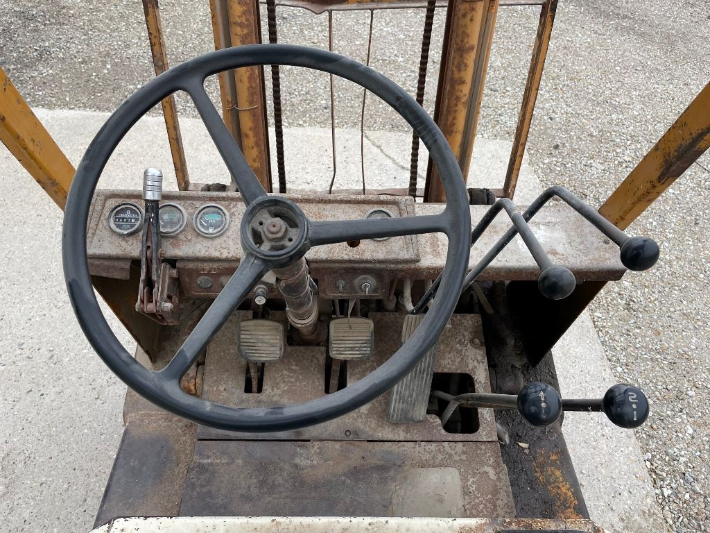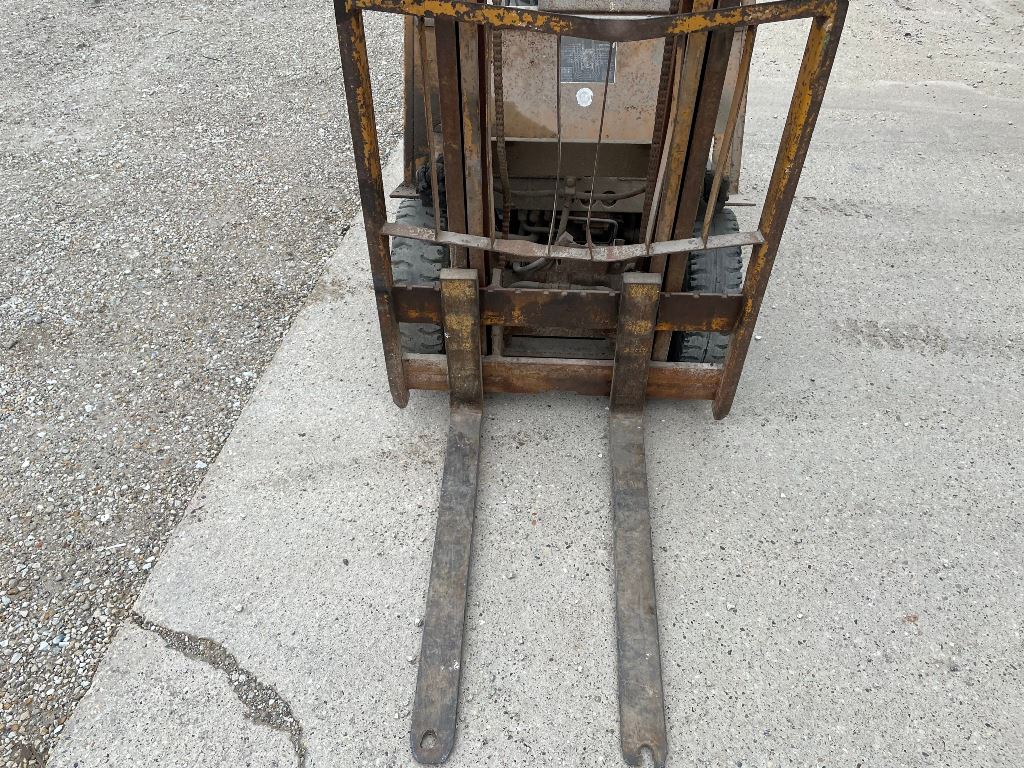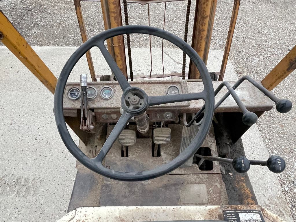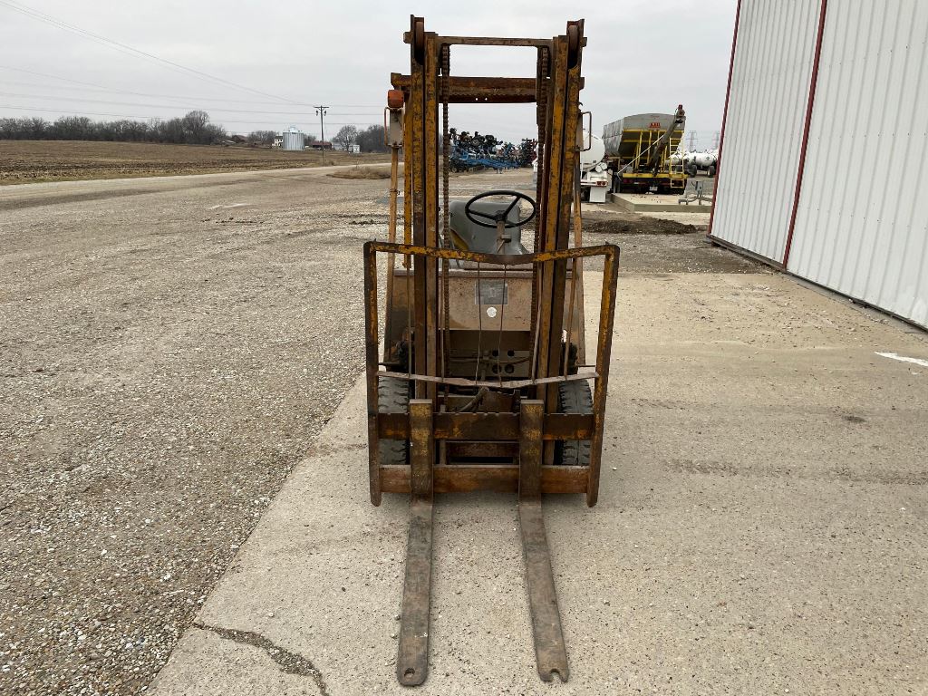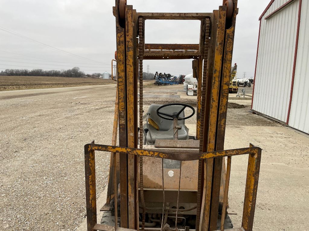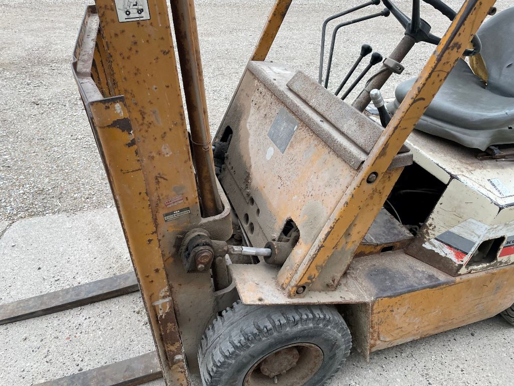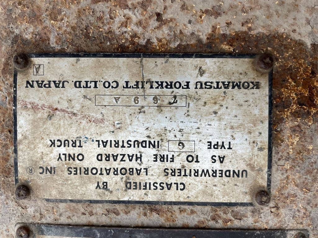 1986 Komatsu FG15 - 14 Forklift (GP2428, Unit 104362), gas engine, shuttle shift transmission, canopy, lights, forks, 6.50-10 front tires, 5.00-8 rear tires, shows 4,683 hours.