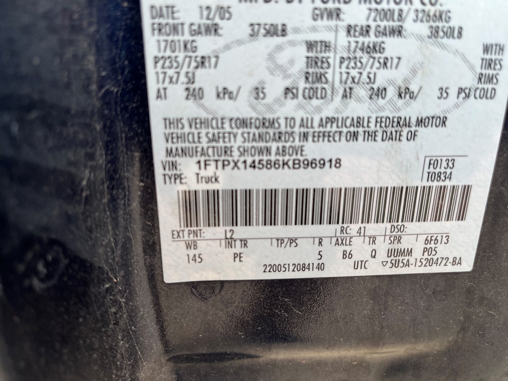 2006 Ford F150 Pickup (DR0465), 5.4 liter gas engine, automatic transmission, quad cab, 4X4, rear receiver hitch, full length running boards, power windows & locks, AM/FM CD radio, cruise control, 235/75R17 tires.