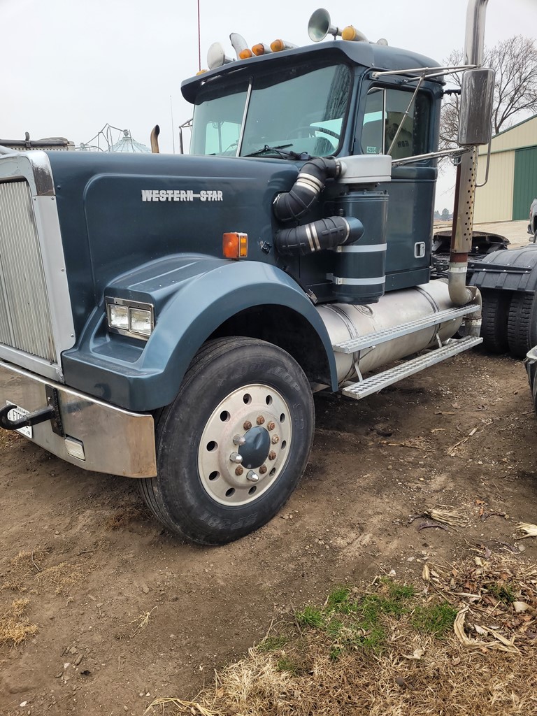 1982 Western Star 4964 Day Cab Truck (NP3405), Cat 3406 diesel engine, 13 speed transmission, tandem axle, full screw, air ride suspension, 5th wheel plate, wet kit, dual fuel tanks, dual exhaust stacks, shows 731,662 miles.