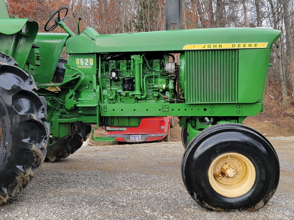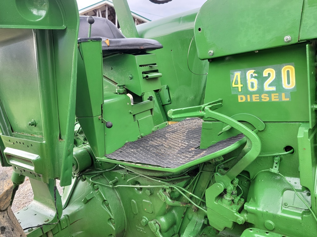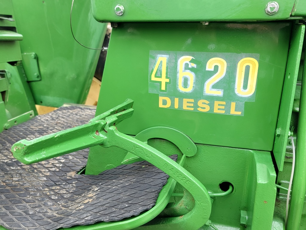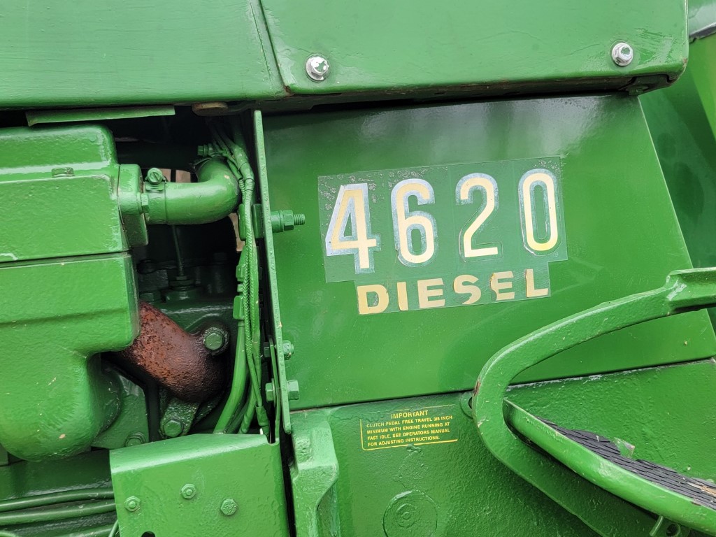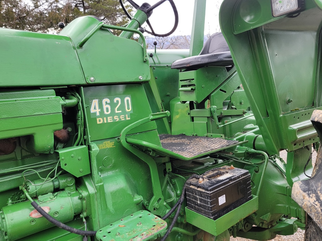 1971 John Deere 4620 Tractor (ED3149), 1971 John Deere 4620 tractor, John Deere diesel engine, sycro transmission, 1000 PTO, 3 point, fronts 11.00-16, rears 18.4-33, shows 665 hours.