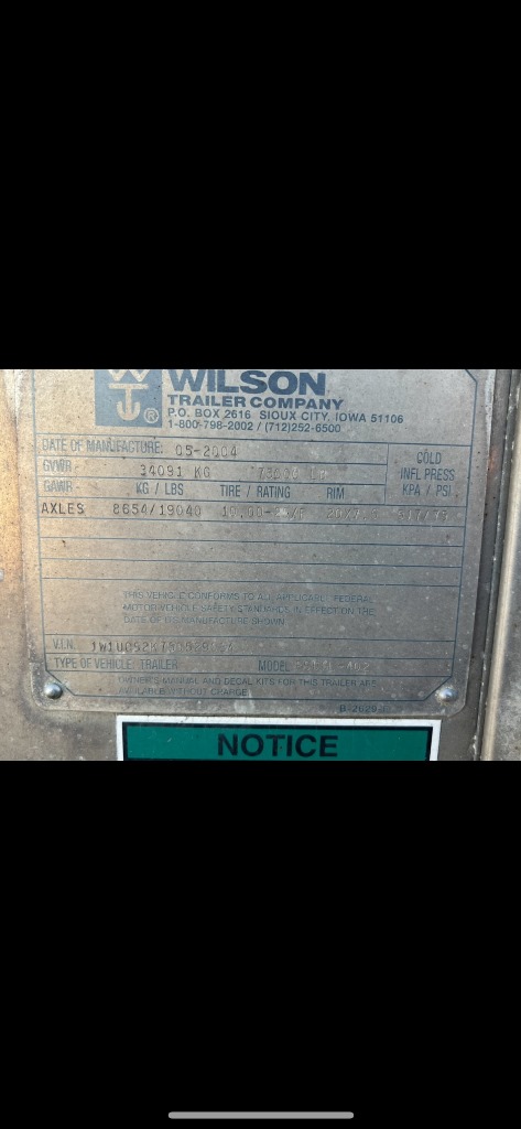2005 Wilson Livestock Cattle Pot (PD3403), 53 foot, spread axle, air ride suspension, missing an axle.