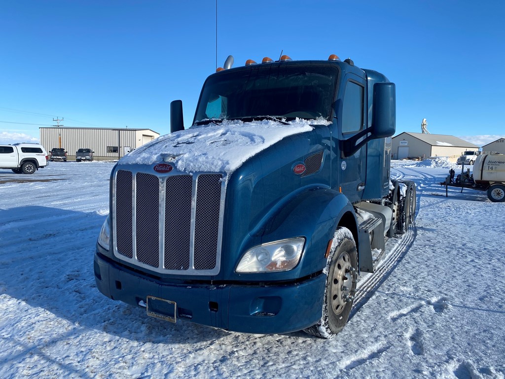2014 Peterbilt 579 Truck (PZ10121, Unit 109162) Paccar MX-13 12.9L diesel engine, Eaton 13 speed transmission, air conditioning, heat, Am/Fm CD radio, cruise control, engine brake, tandem axle, full screw, air ride suspension, 3rd steerable axle, sleeper, 5th wheel, shows 617,374 miles.