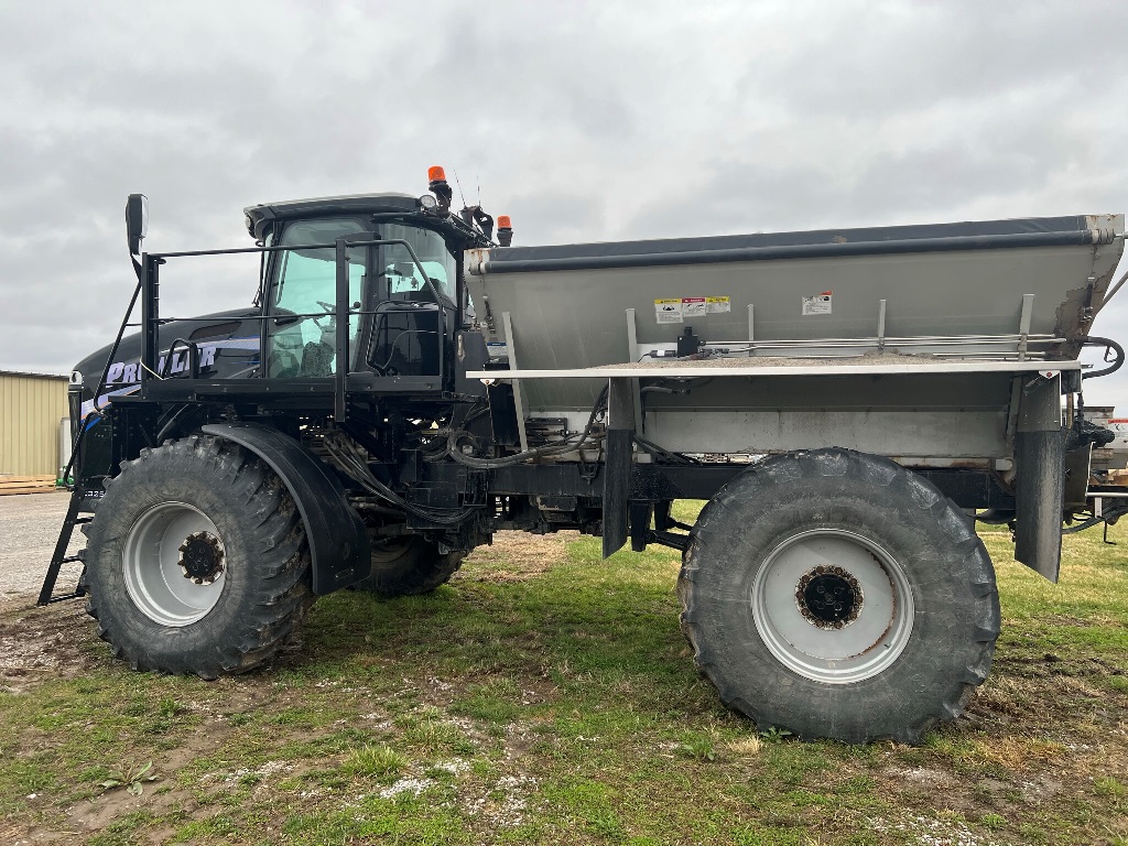 2015 GVM Prowler E325 (LLD293), Cummins Tier 4 - 9.0L diesel engine, Allison automatic transmission, GPS with auto steer, belt over chain dry spinner, multiplier bin, heat, air conditioning, Am/Fm radio, skinny tires, floater tires, buddy seat, air brakes, LED lighting, hook-ups for business band radio, new tarp, Raven Viper 4 monitor, cab camera in bed and behind the bed, shows 3,823 hours.