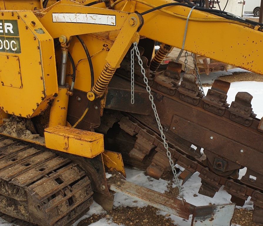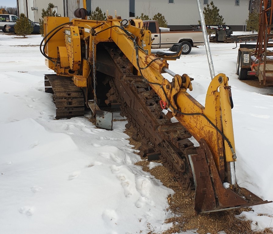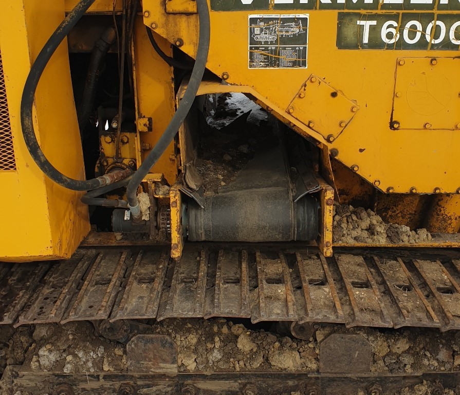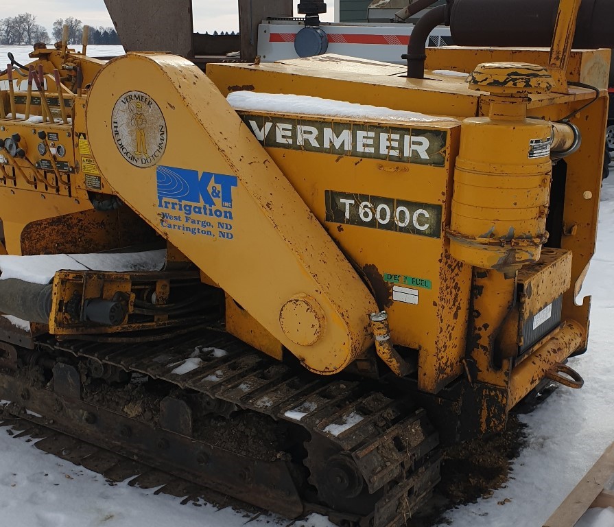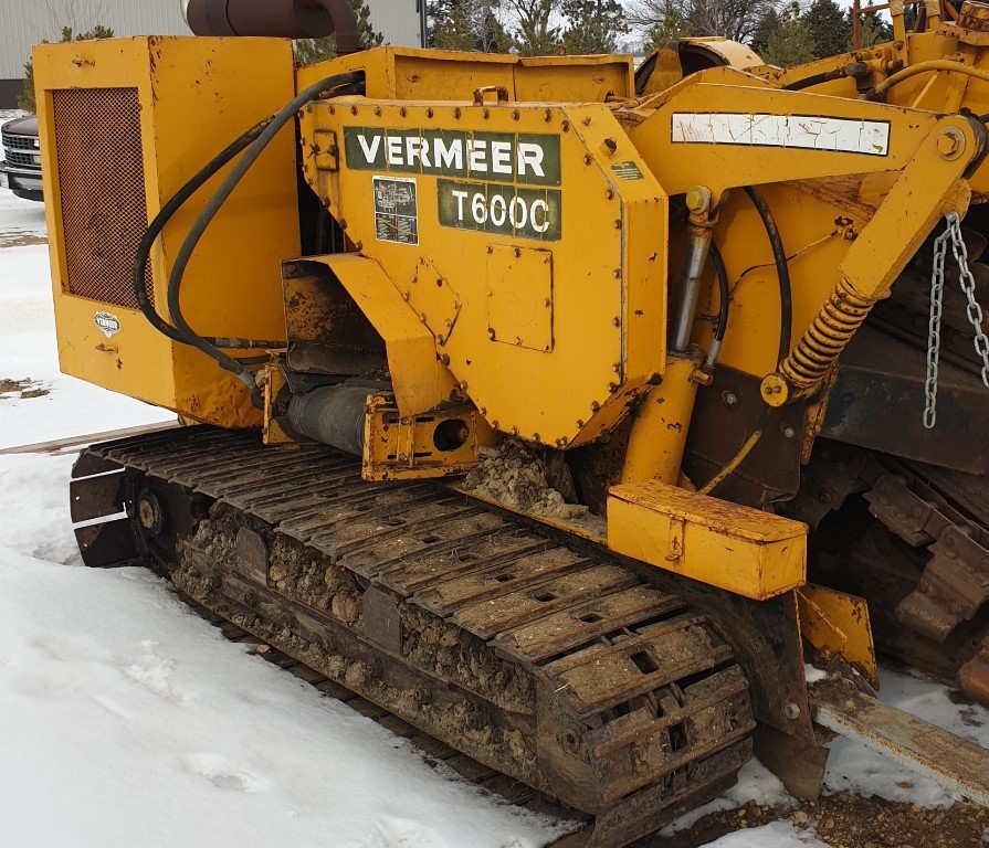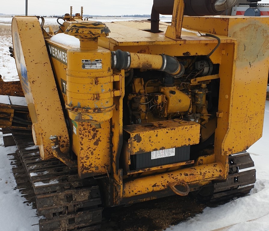 Vermeer T600C Trencher (PD3400), Detroit 4 cylinder diesel engine, 4 speed transmission, hydrostatic operational trencher, runs and moves and works as it should, 20 inch tracks, tile boot included, dirt chain, hour meter broke.