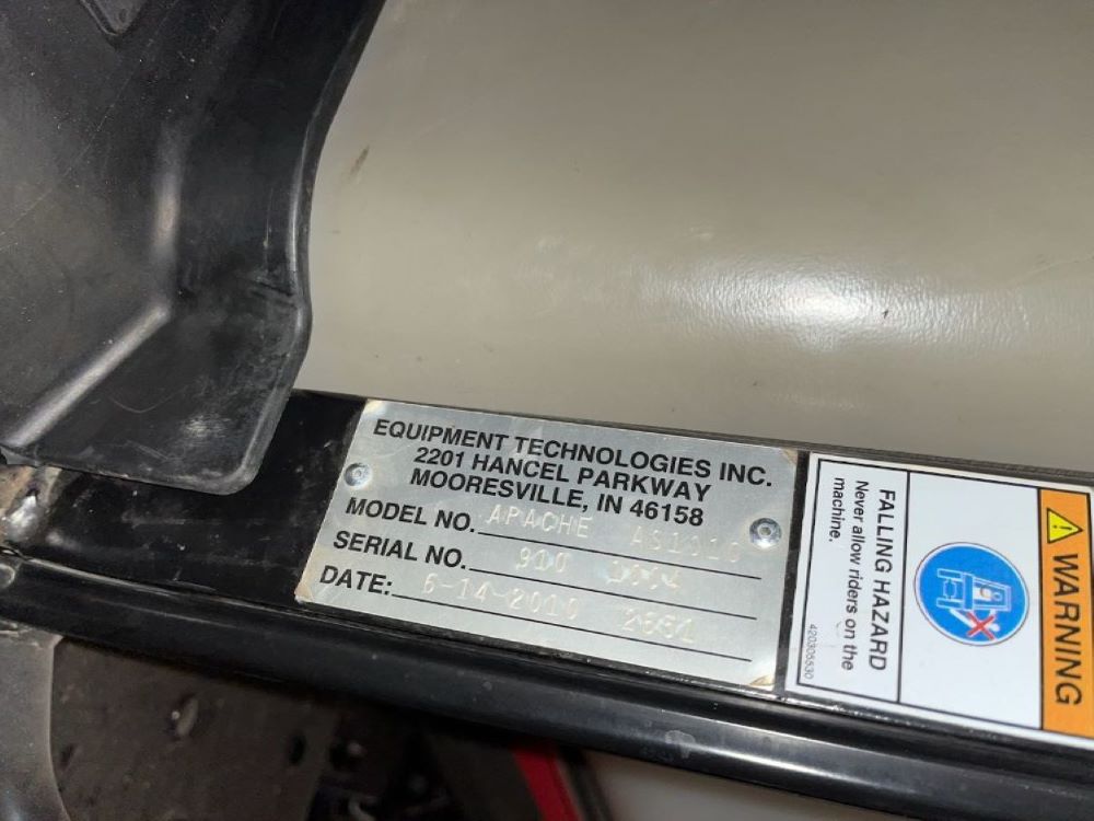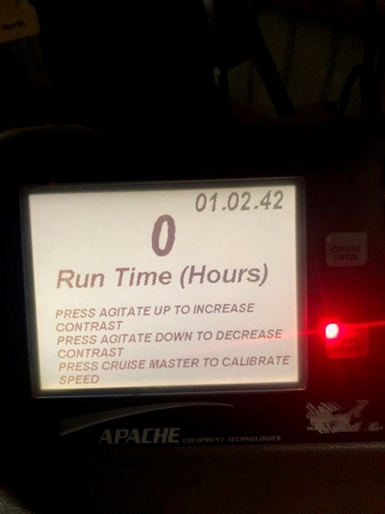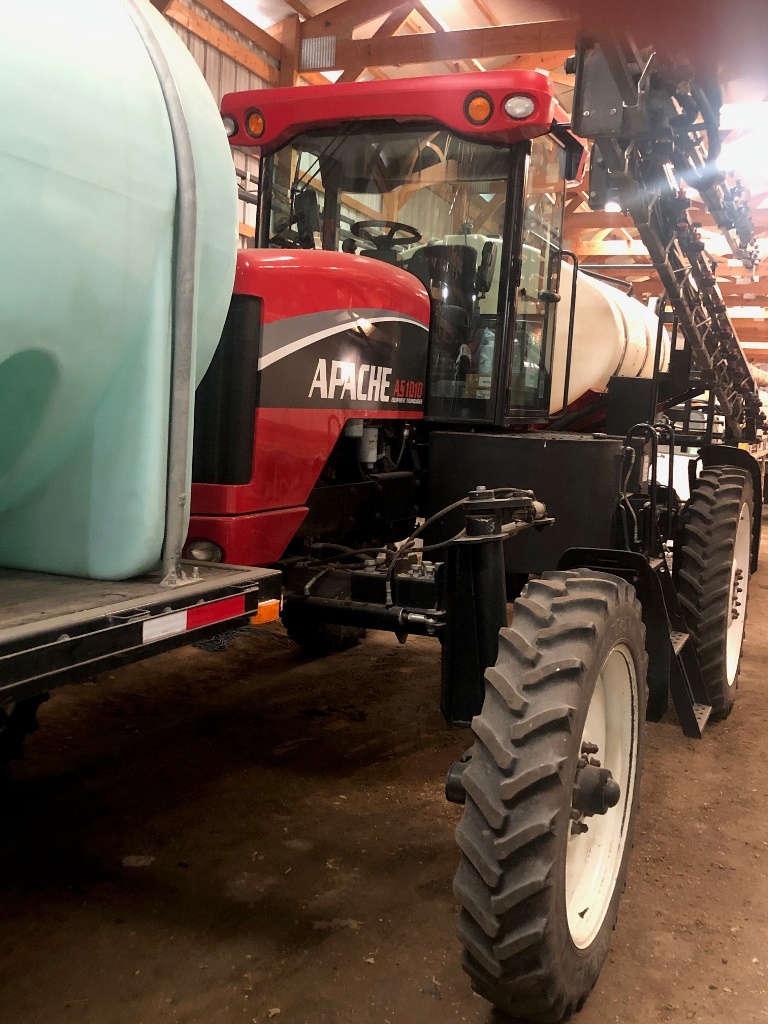 2010 Apache 1010 Sprayer (LD1246), Cummins diesel engine, 215HP, 6 speed powershift transmission, 66/90 foot booms, 3 nozzle body, 1,000 gallon poly tank, Raven Viper Pro controller, 6 section shutoff, 6 section shutoff, auto boom height control, foam markers, sliding axle 120-144 inch, shows 0 hours, but has 1,140 hours (see notes).